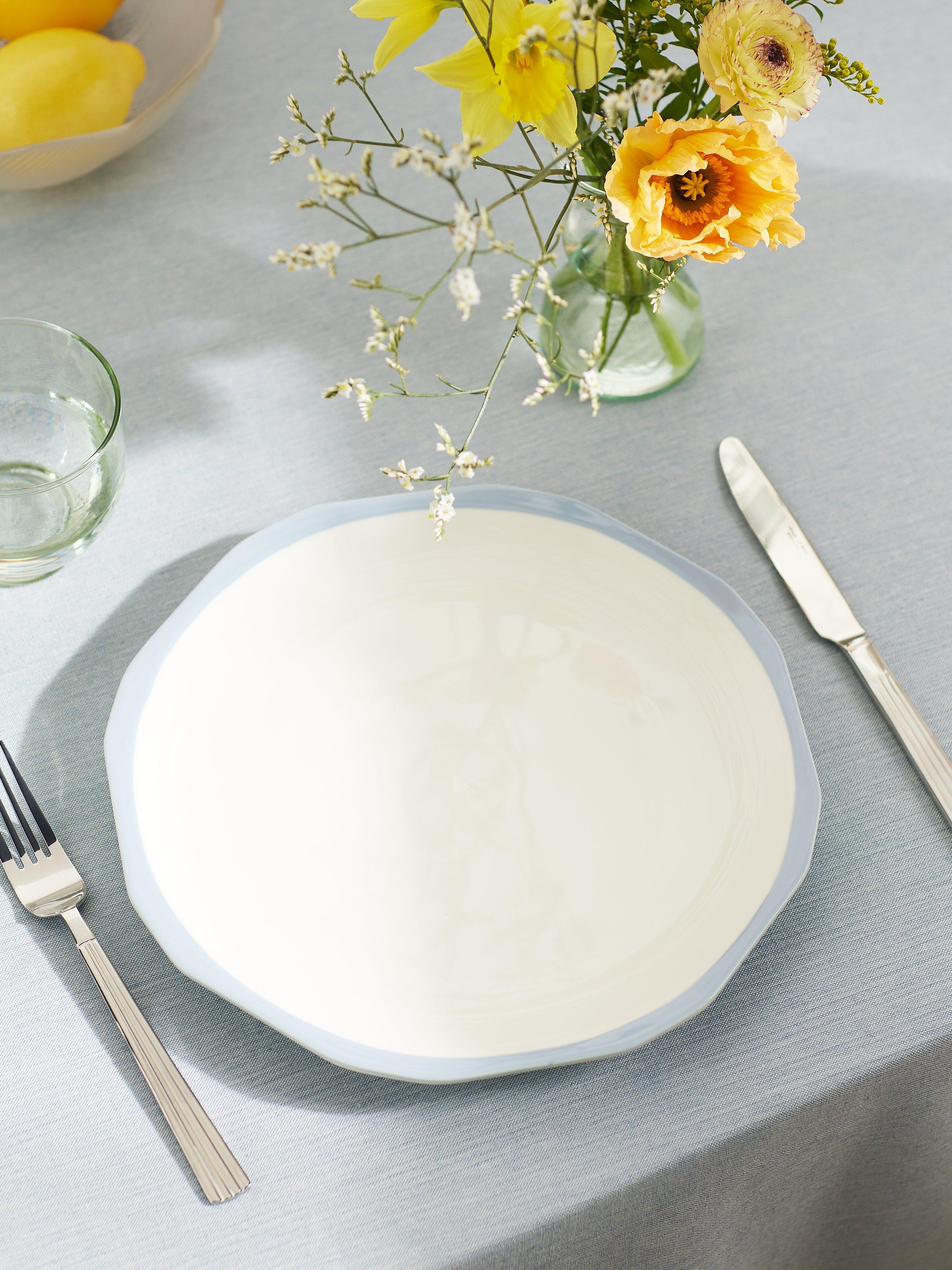 Shaped dinner plate with a contrasting rim, from our Aster range named after the Greek for 'star'. Dishwasher and microwave safe for everyday use.