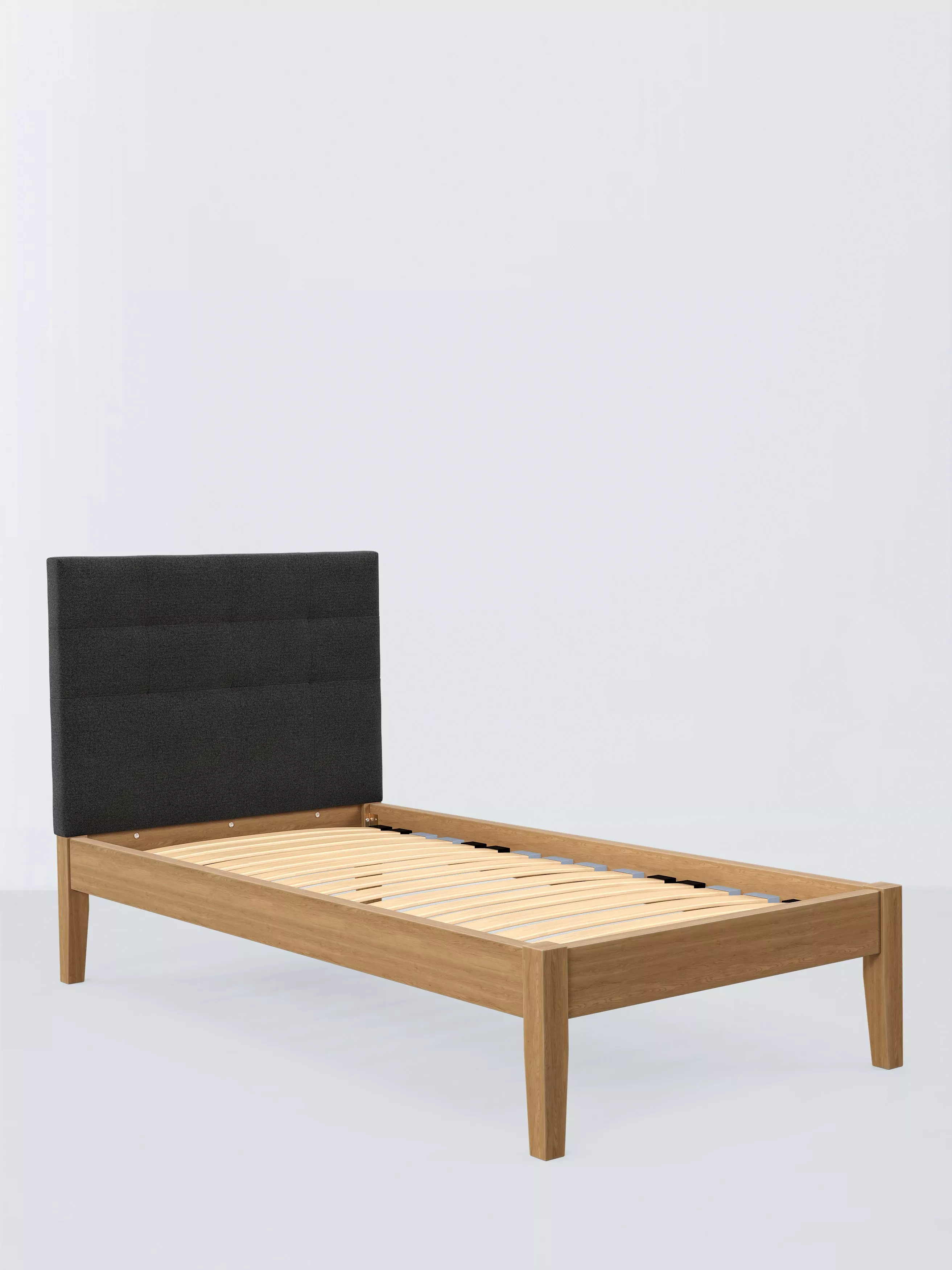 Meet our Astrid Kitami bed frame, featuring a well-padded, grid-design headboard and a sturdy solid oak base for a classic, clean-lined style with a modern edge. It can be upholstered in a fabric of your choice. We've added sprung Smart Slats to the base which provide enhanced support where you need it most.
