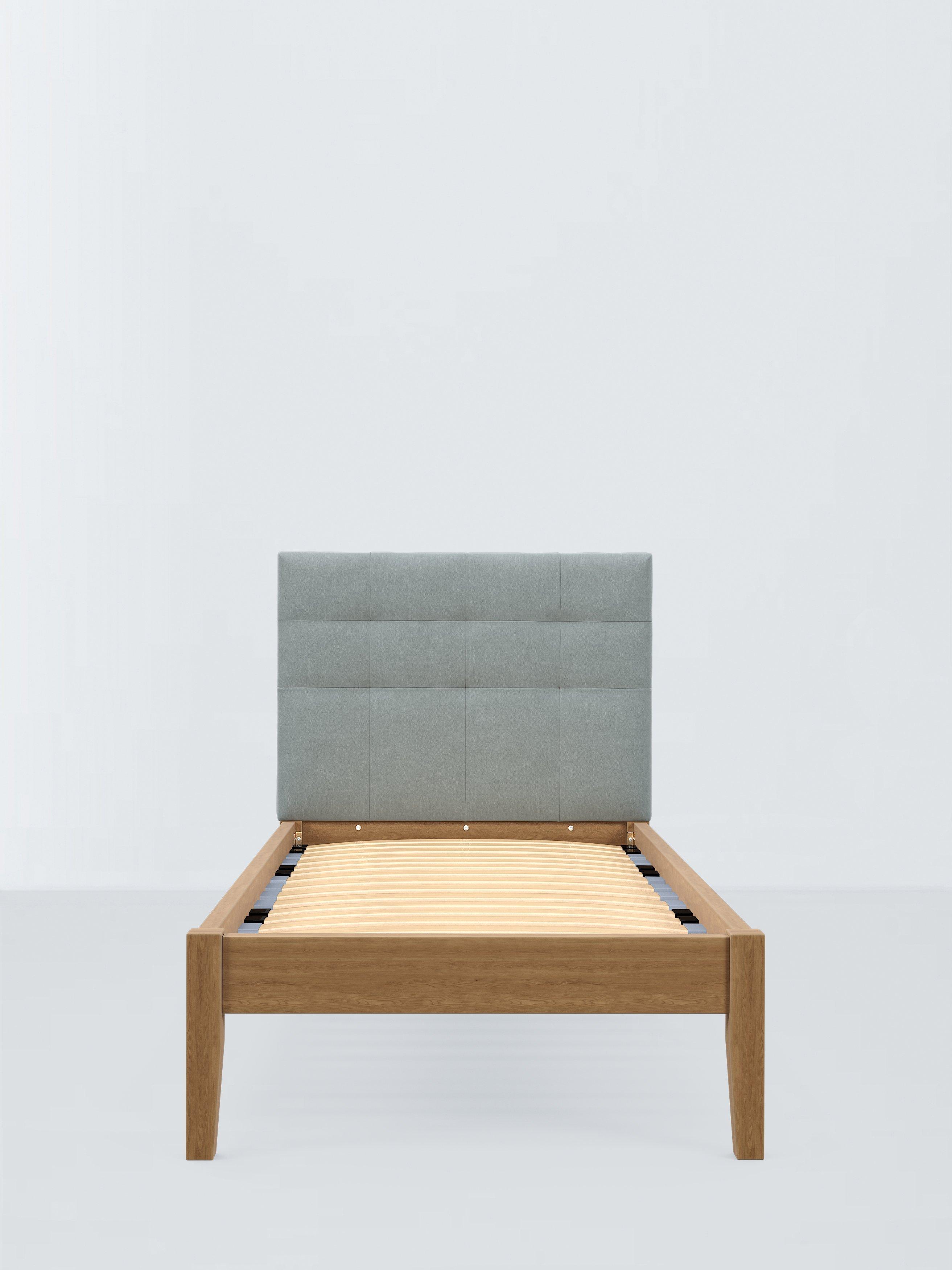 Meet our Astrid Kitami bed frame, featuring a well-padded, grid-design headboard and a sturdy solid oak base for a classic, clean-lined style with a modern edge. It can be upholstered in a fabric of your choice. We've added sprung Smart Slats to the base which provide enhanced support where you need it most.