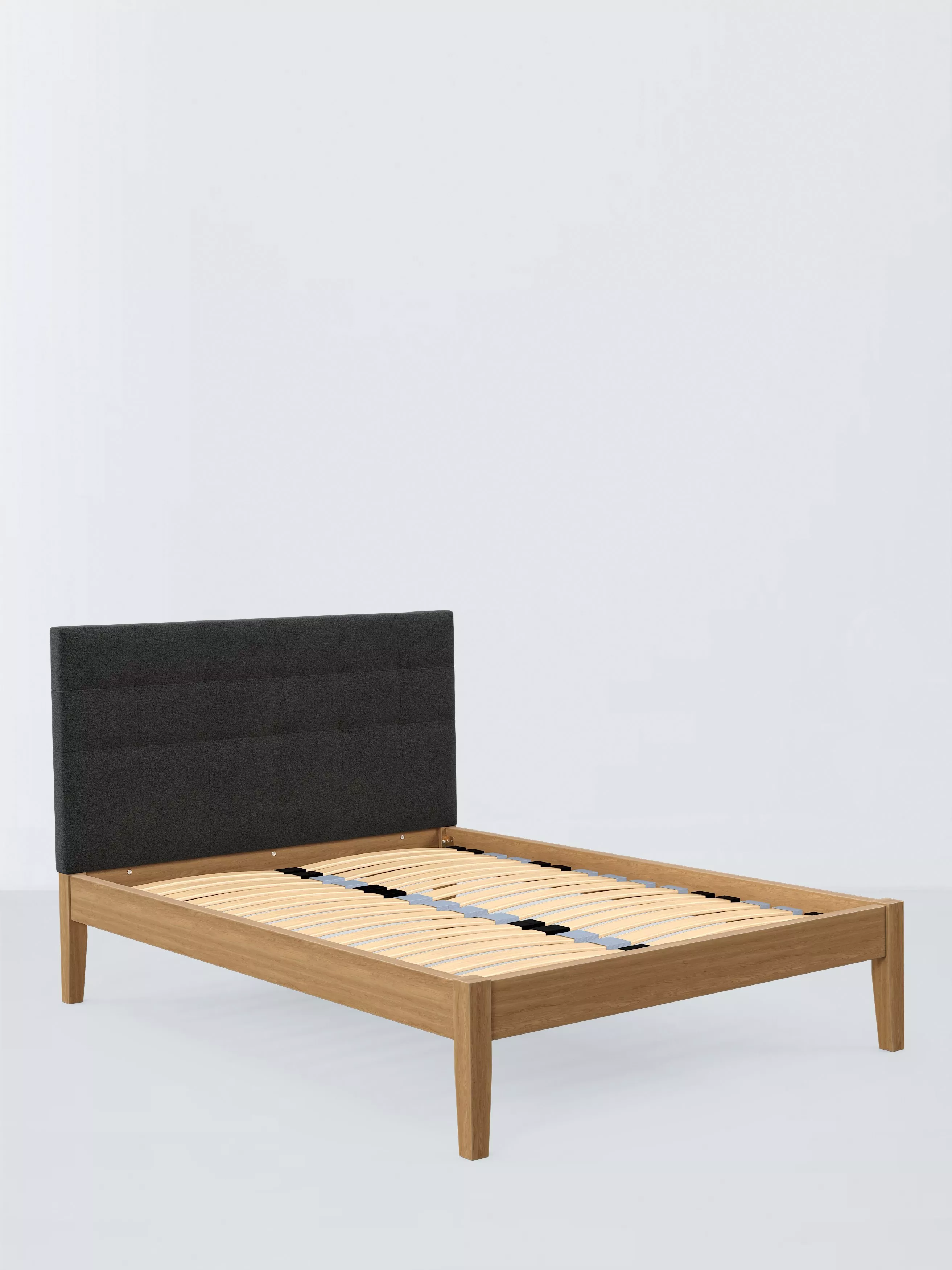 Meet our Astrid Kitami bed frame, featuring a well-padded, grid-design headboard and a sturdy solid oak base for a classic, clean-lined style with a modern edge. It can be upholstered in a fabric of your choice. We've added sprung Smart Slats to the base which provide enhanced support where you need it most.