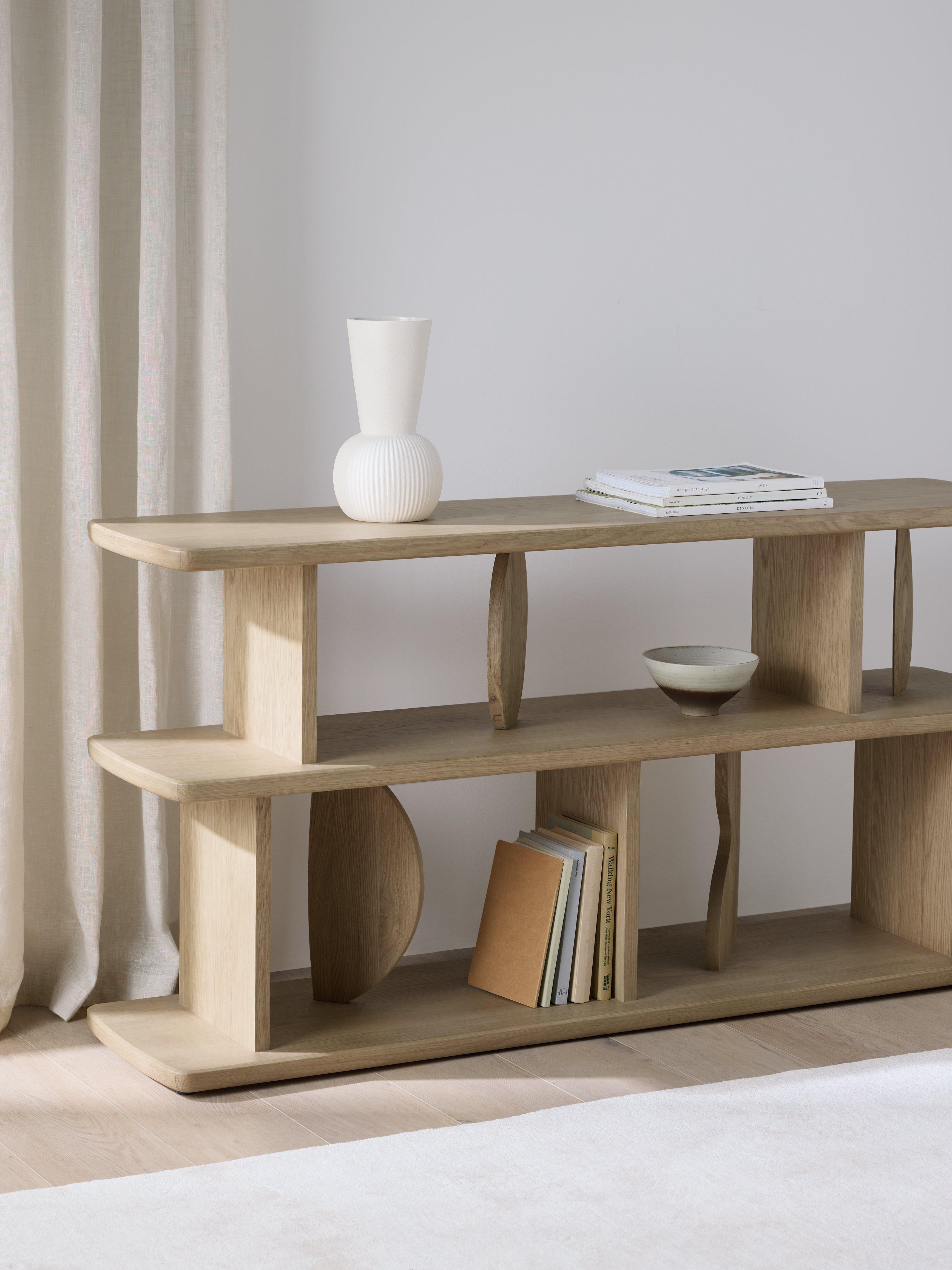 Clean lines meet sculptural form, with abstract geometric shapes designed to frame and elevate your books, art and cherished objects. Its playful composition adds a contemporary edge and brings instant character to any space.