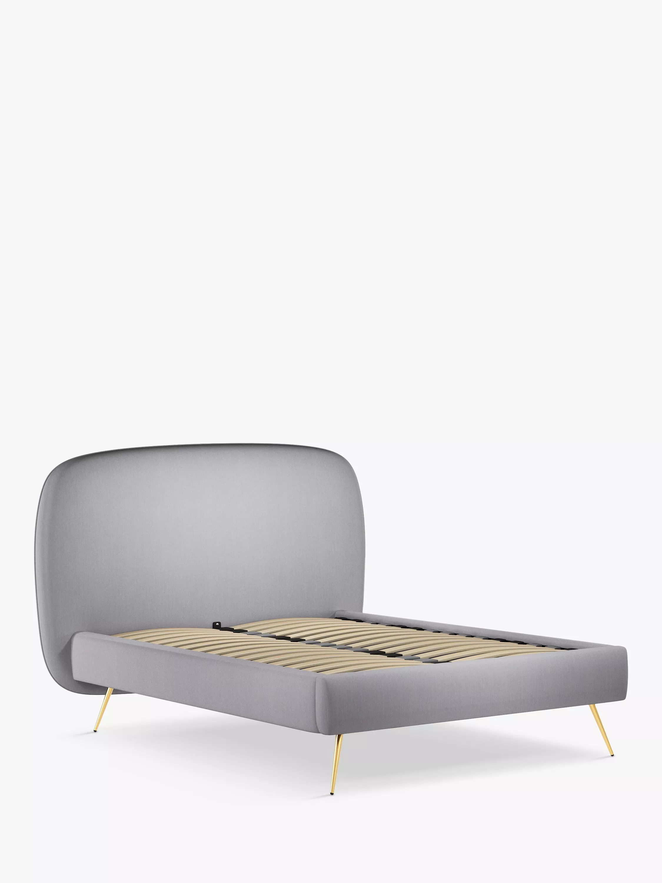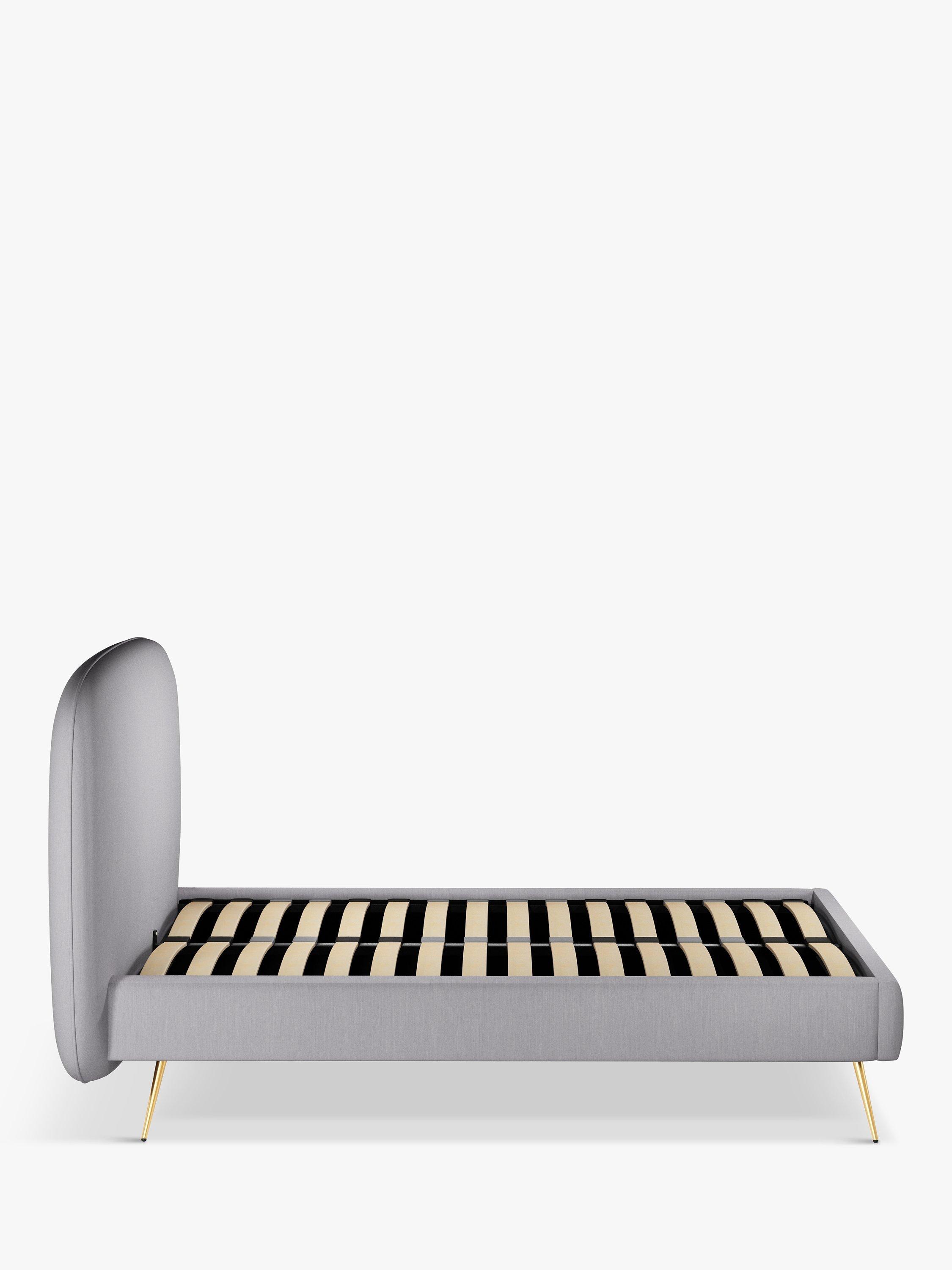 We’ve made the headboard a defining design element of the Austin bed frame, showcasing a statement curved shape and piped edging. Finished with brass tapered legs and made from high-quality timbers. Its sprung slats provide a more supportive foundation for your mattress.