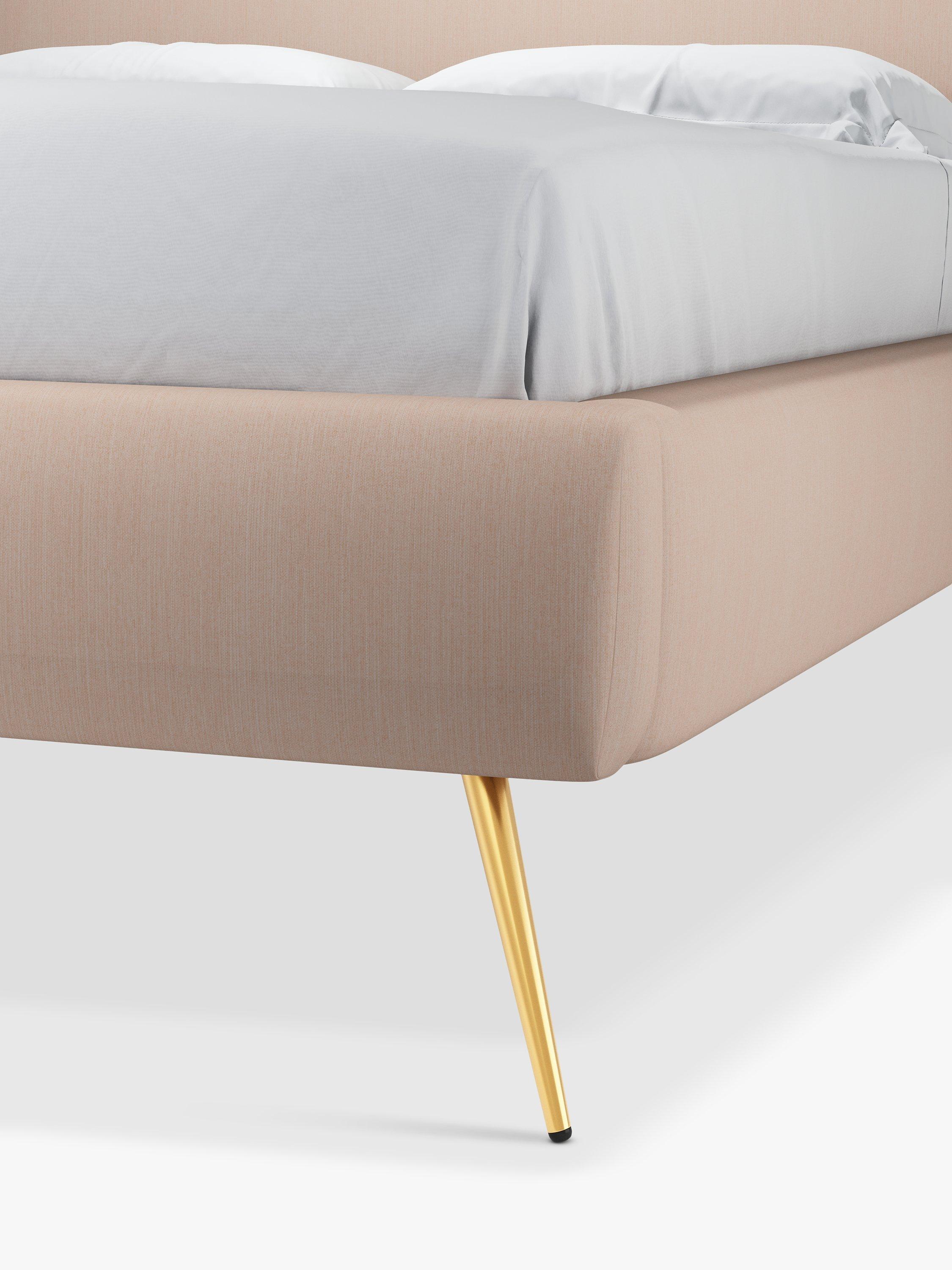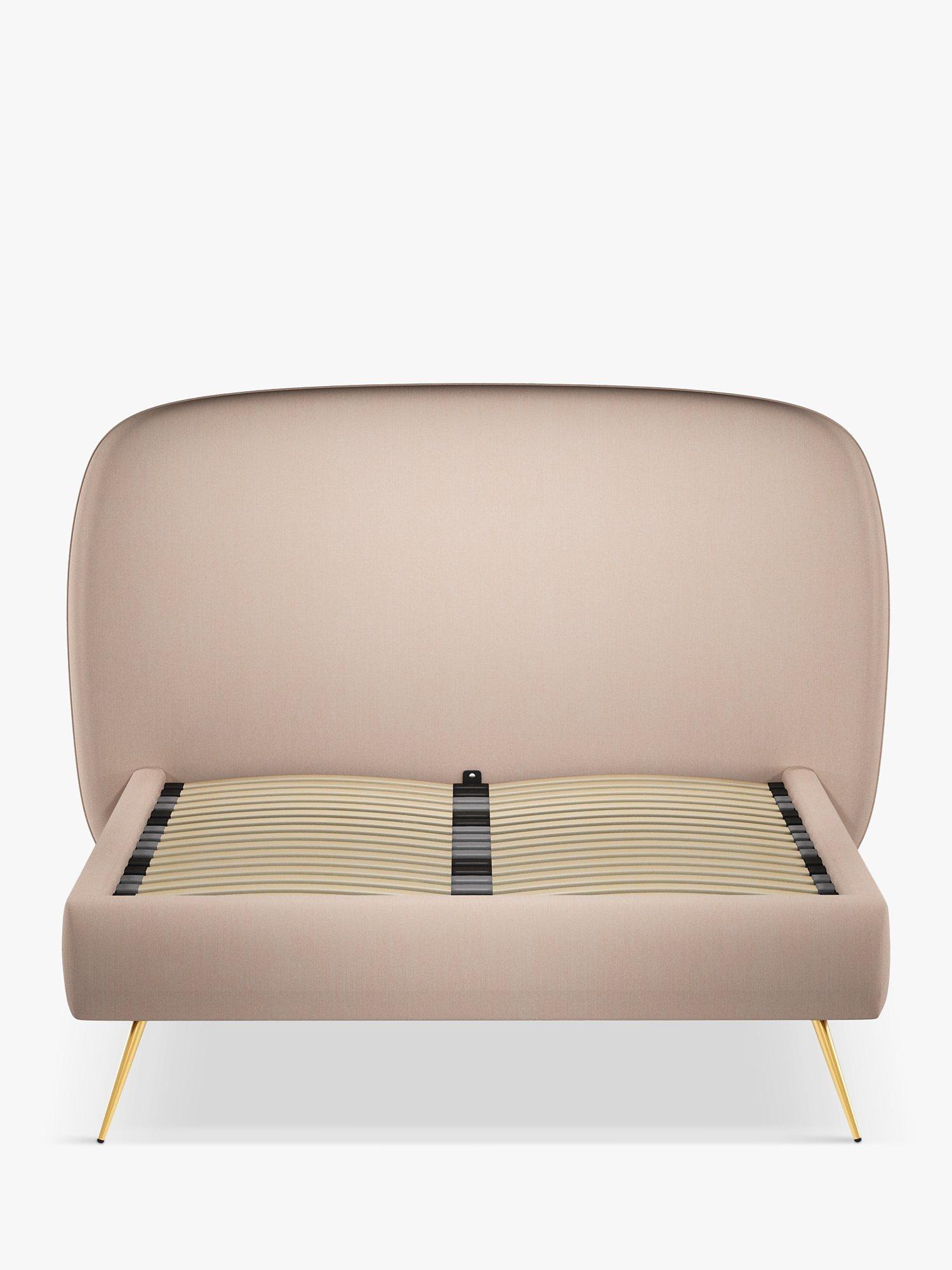 We’ve made the headboard a defining design element of the Austin bed frame, showcasing a statement curved shape and piped edging. Finished with brass tapered legs and made from high-quality timbers. Its sprung slats provide a more supportive foundation for your mattress.
