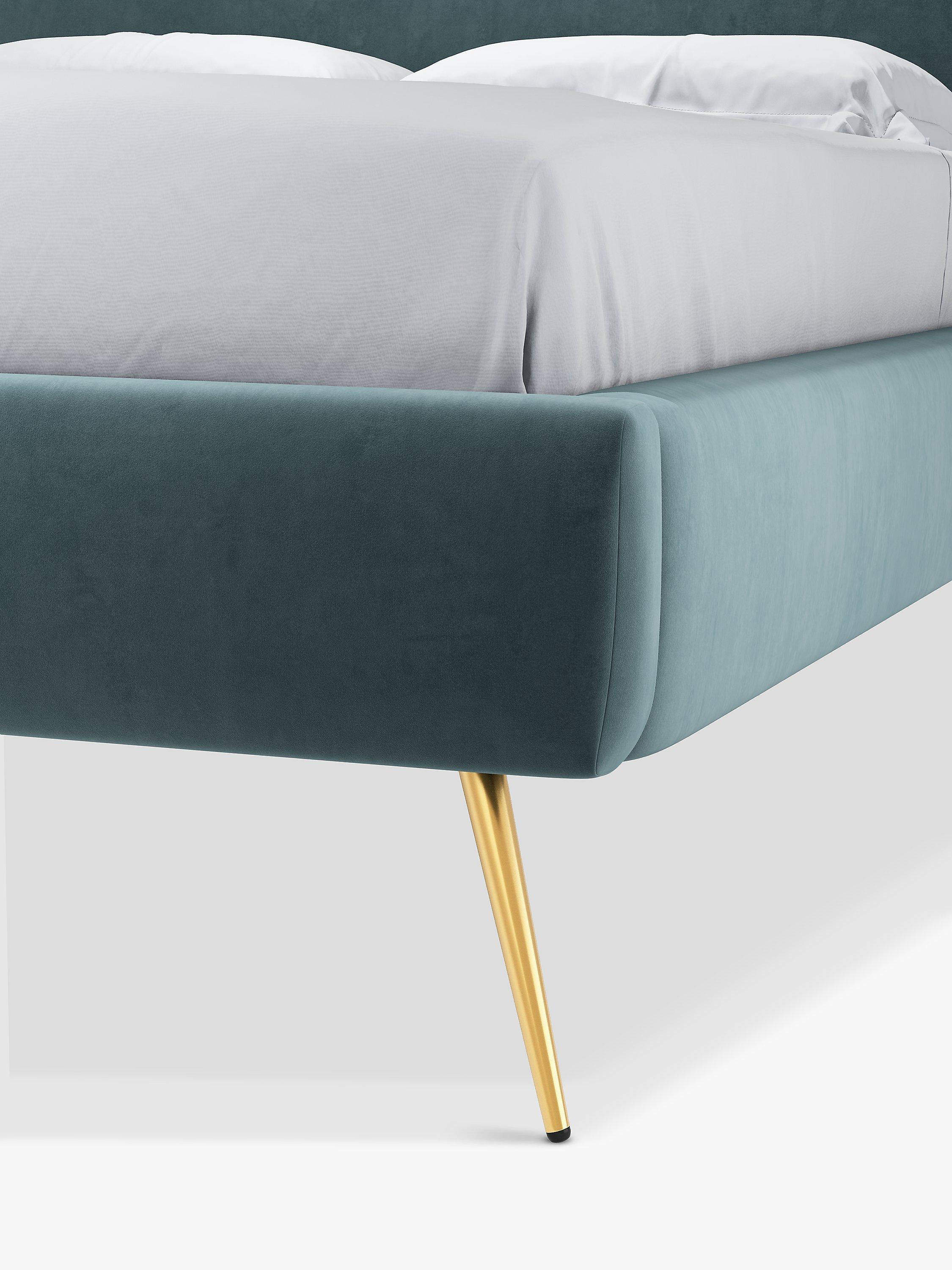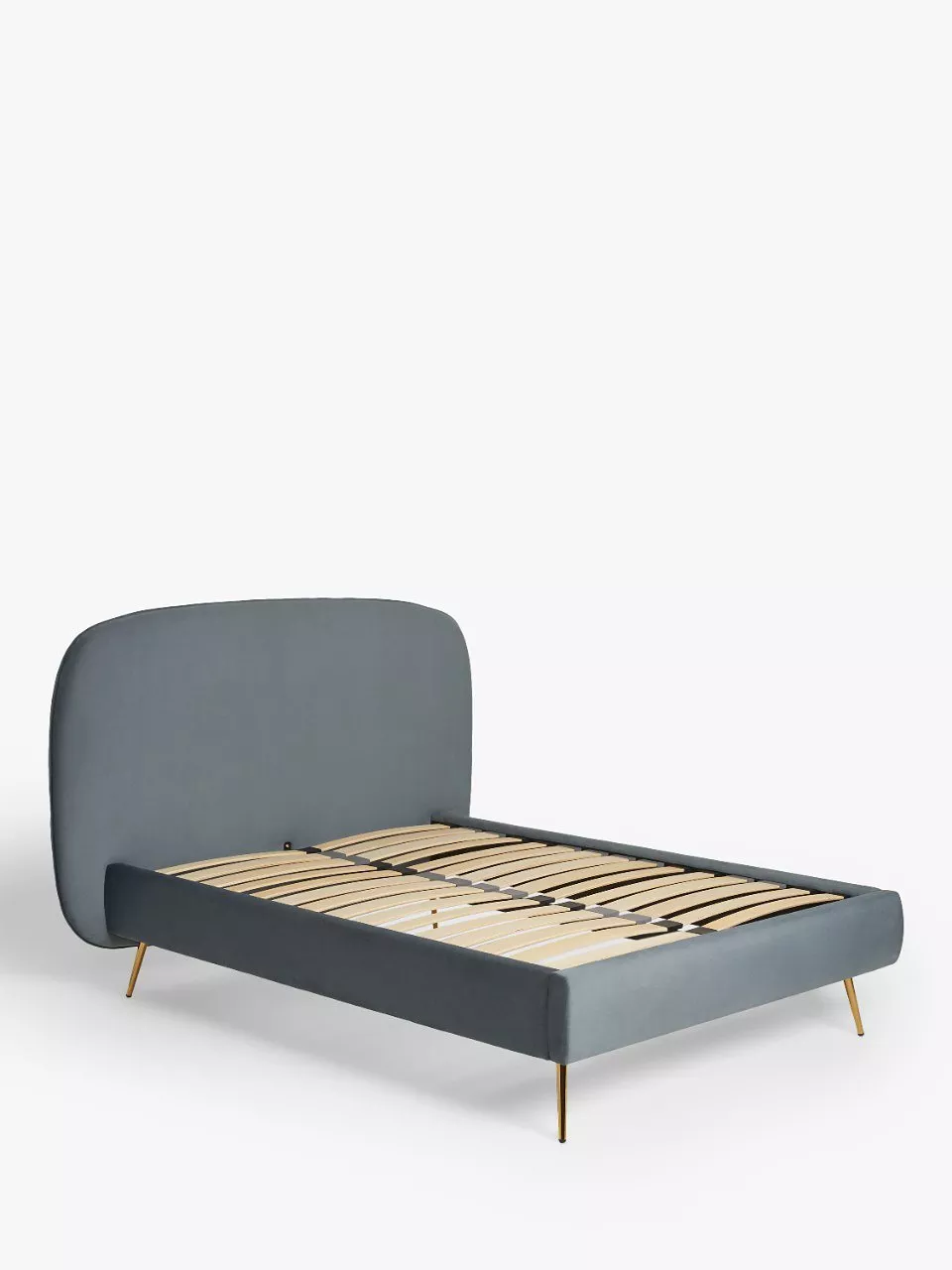 We’ve made the headboard a defining design element of the Austin bed frame, showcasing a statement curved shape and piped edging. Finished with brass tapered legs and made from high-quality timbers. Its sprung slats provide a more supportive foundation for your mattress.