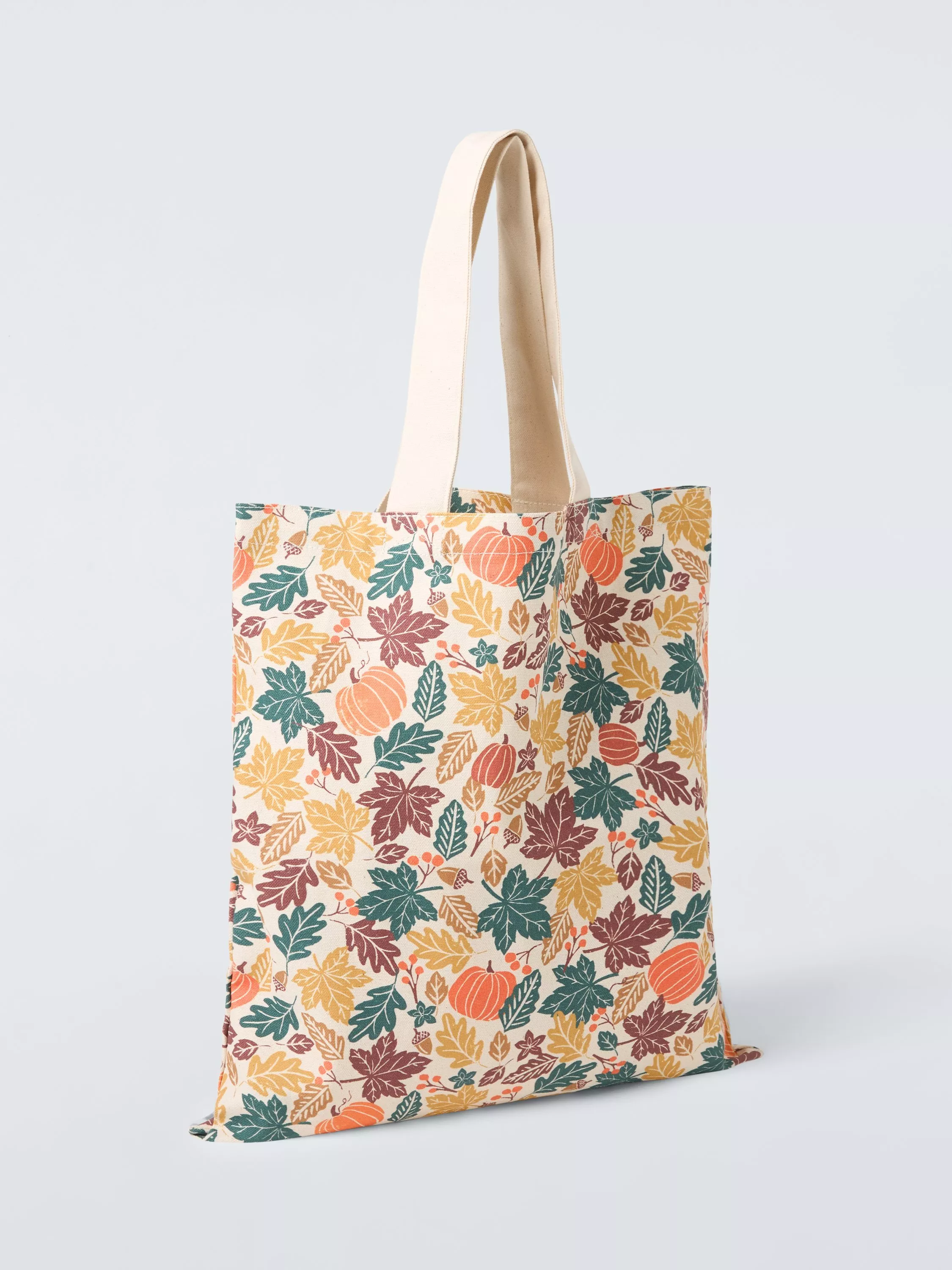 A strong reusable cotton bag made with long handles to sit comfortably on the shoulder.