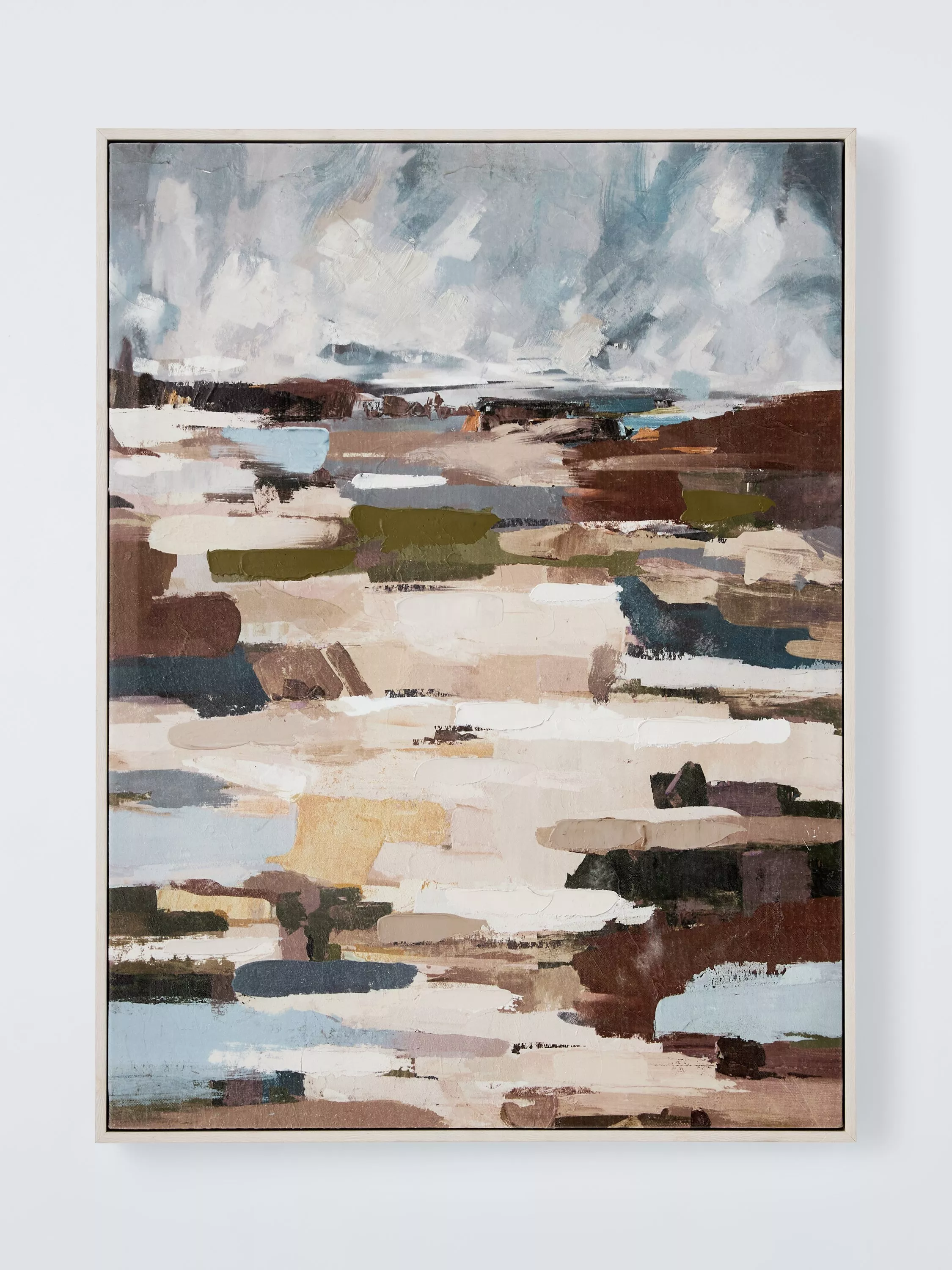 Abstract print in autumnal hues with a slim profile frame, ready to hang on your wall.