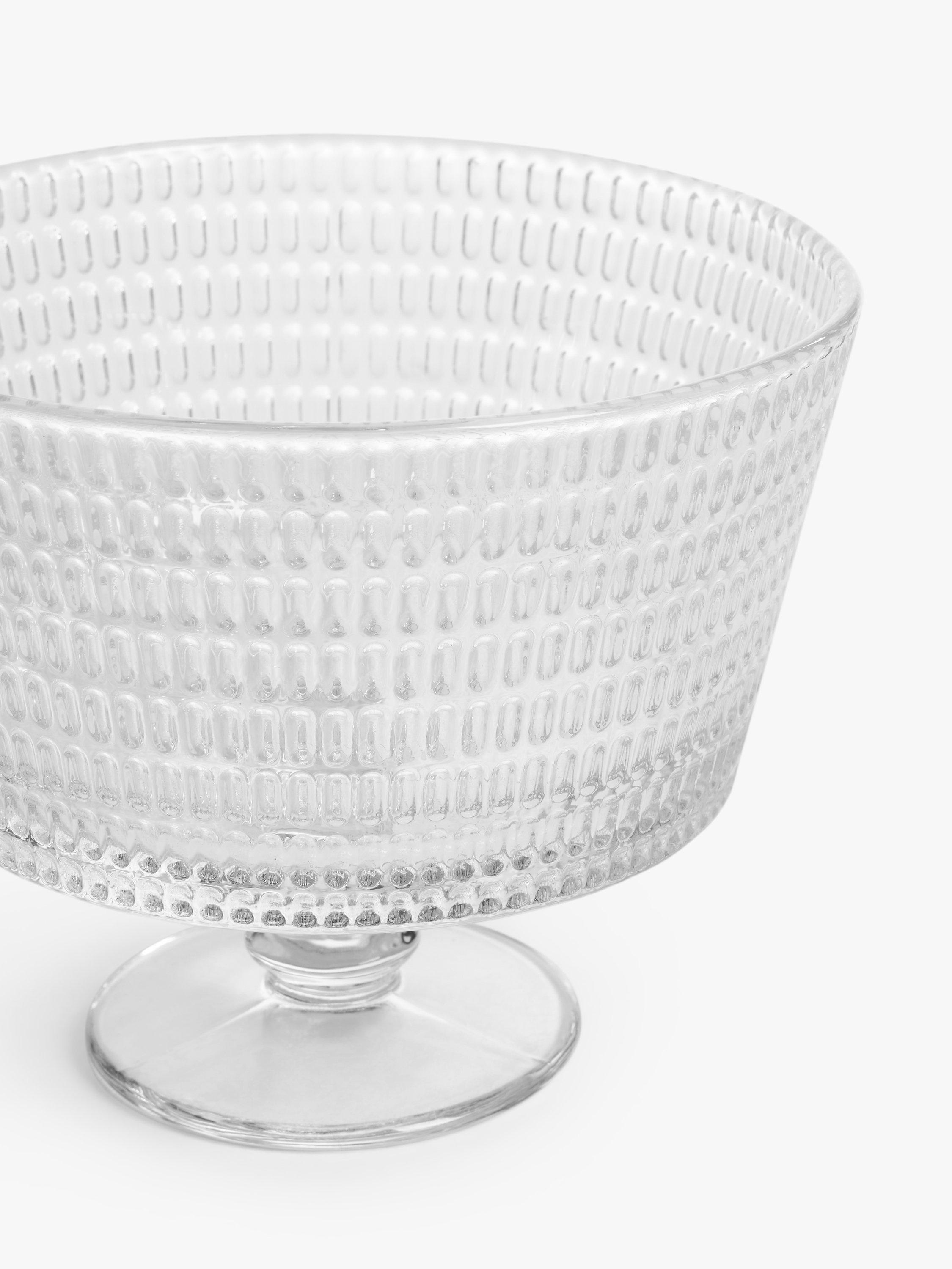 Textured with a geometric pattern, this footed pressed glass bowl is ideal for serving trifle at the table. Dishwasher safe for easy cleaning.