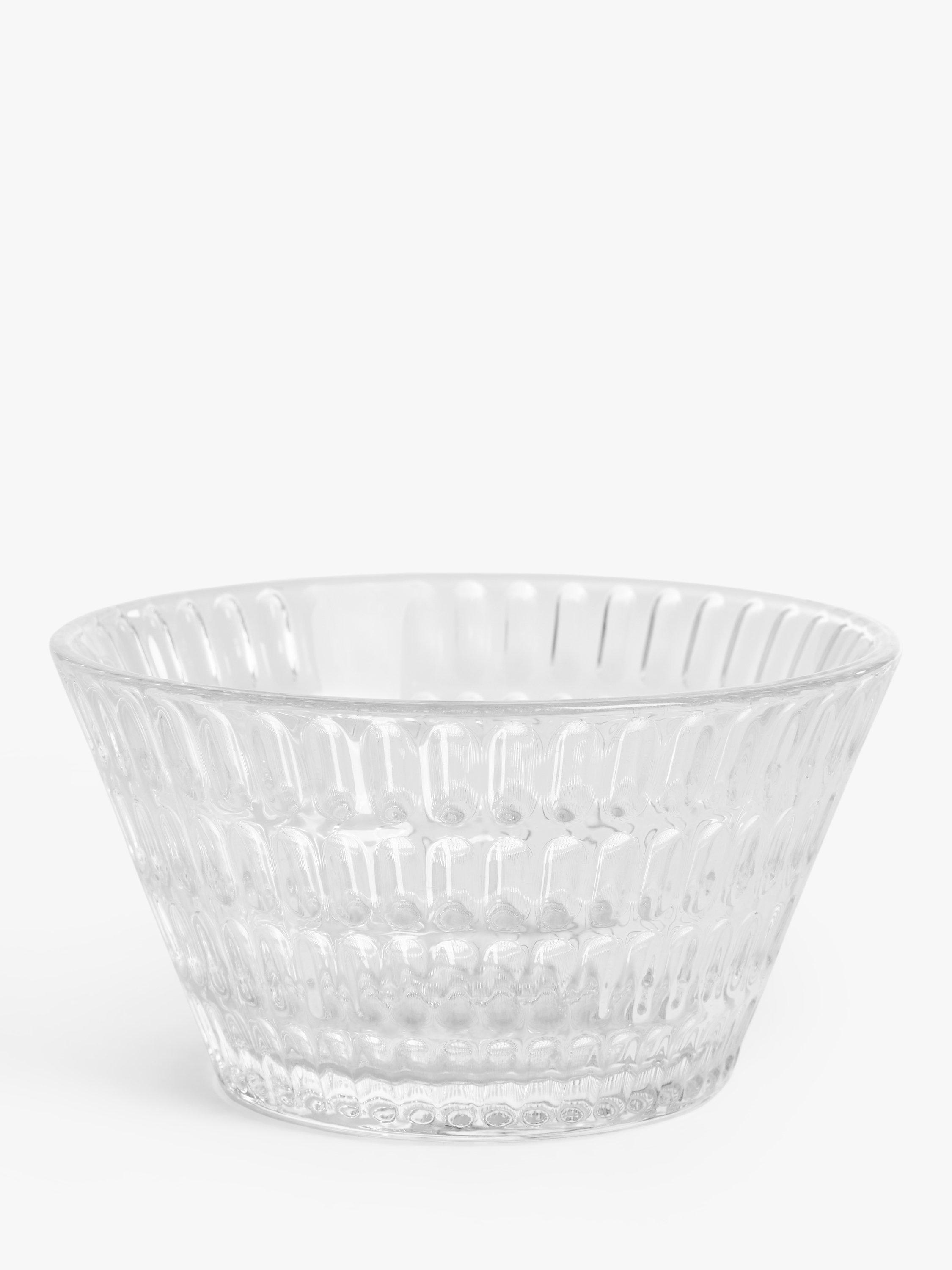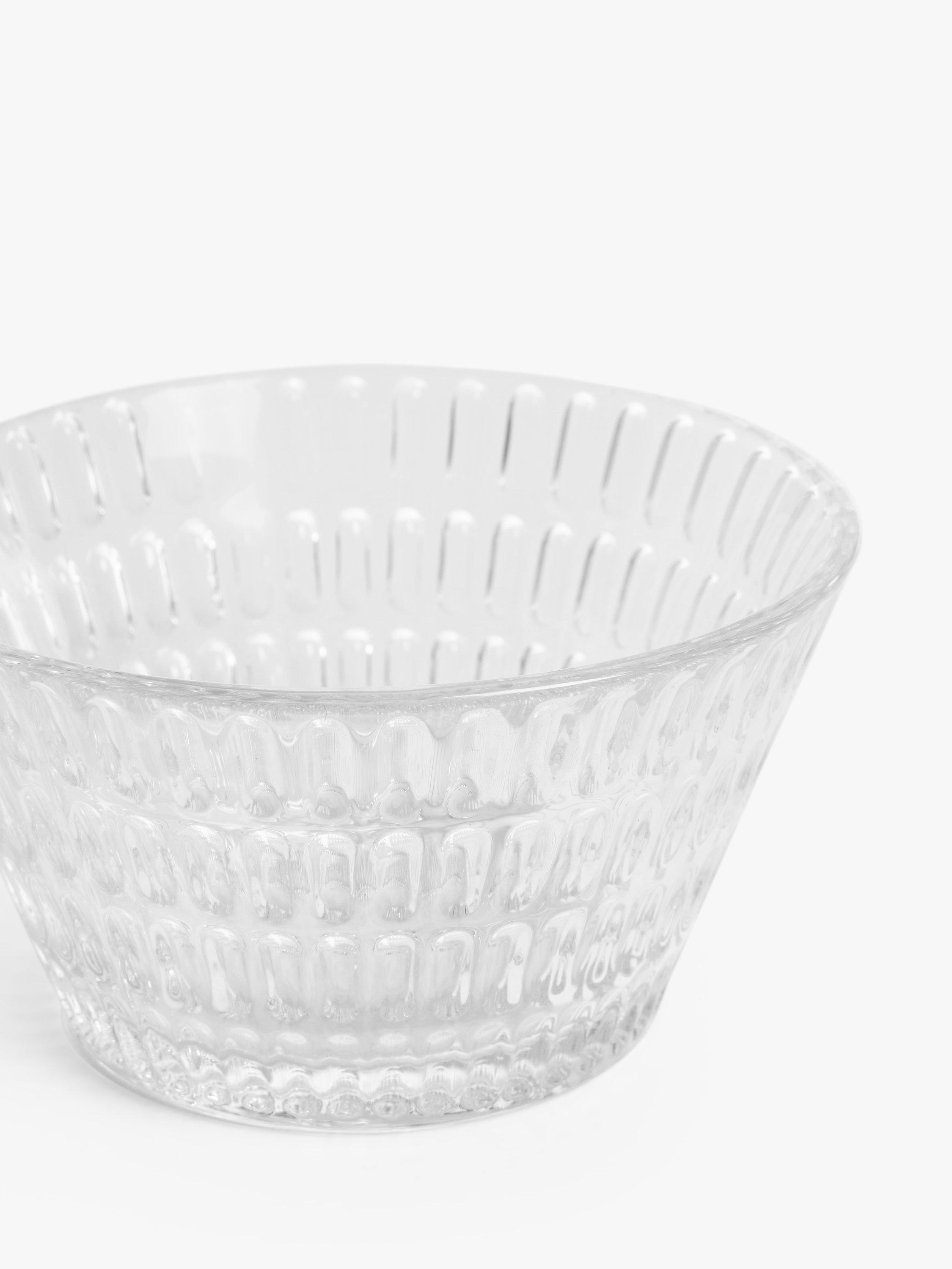 Textured with a geometric pattern, this pressed glass bowl is ideal for serving ice cream, fruit salads and desserts. Dishwasher safe for easy cleaning.