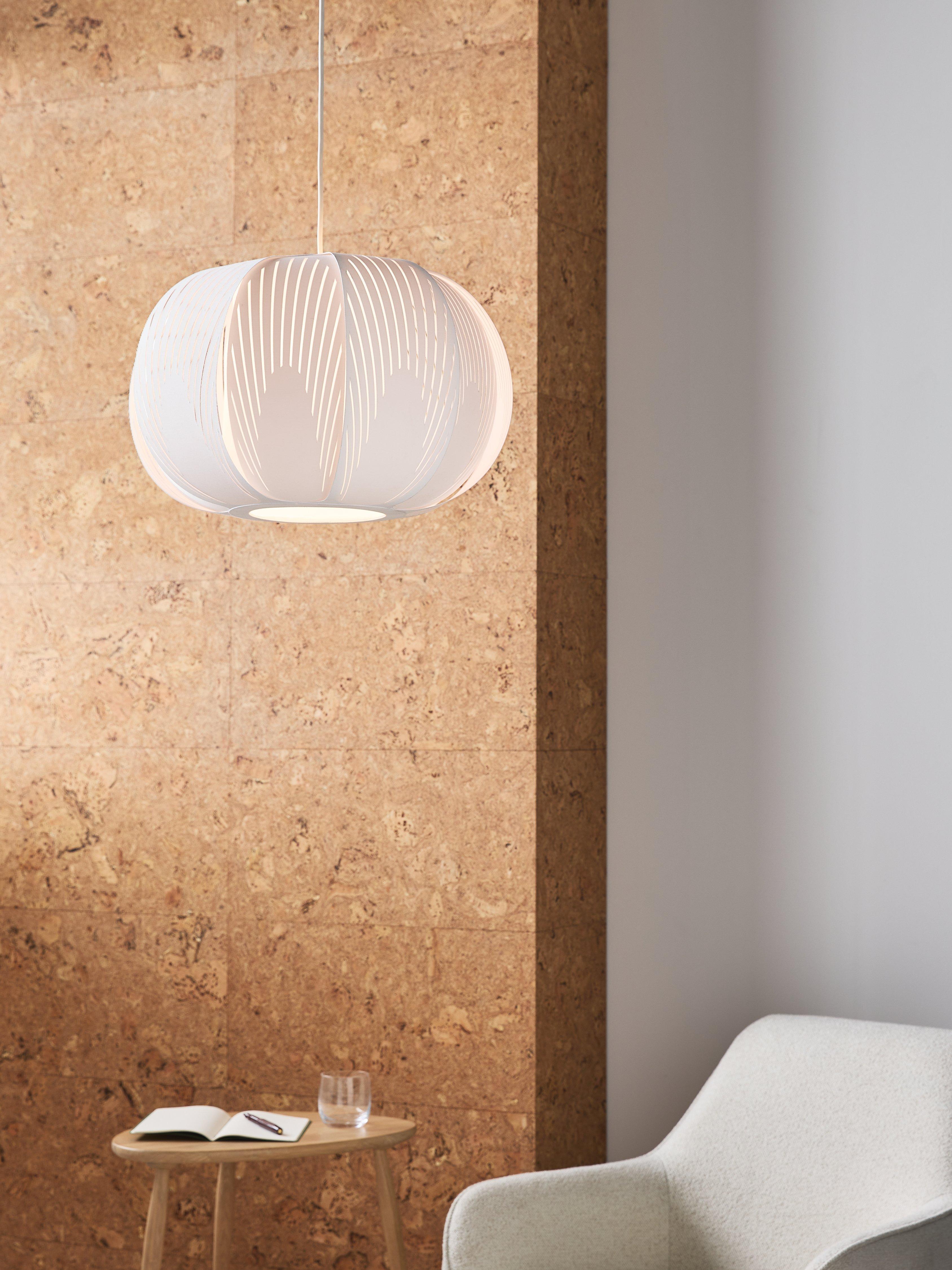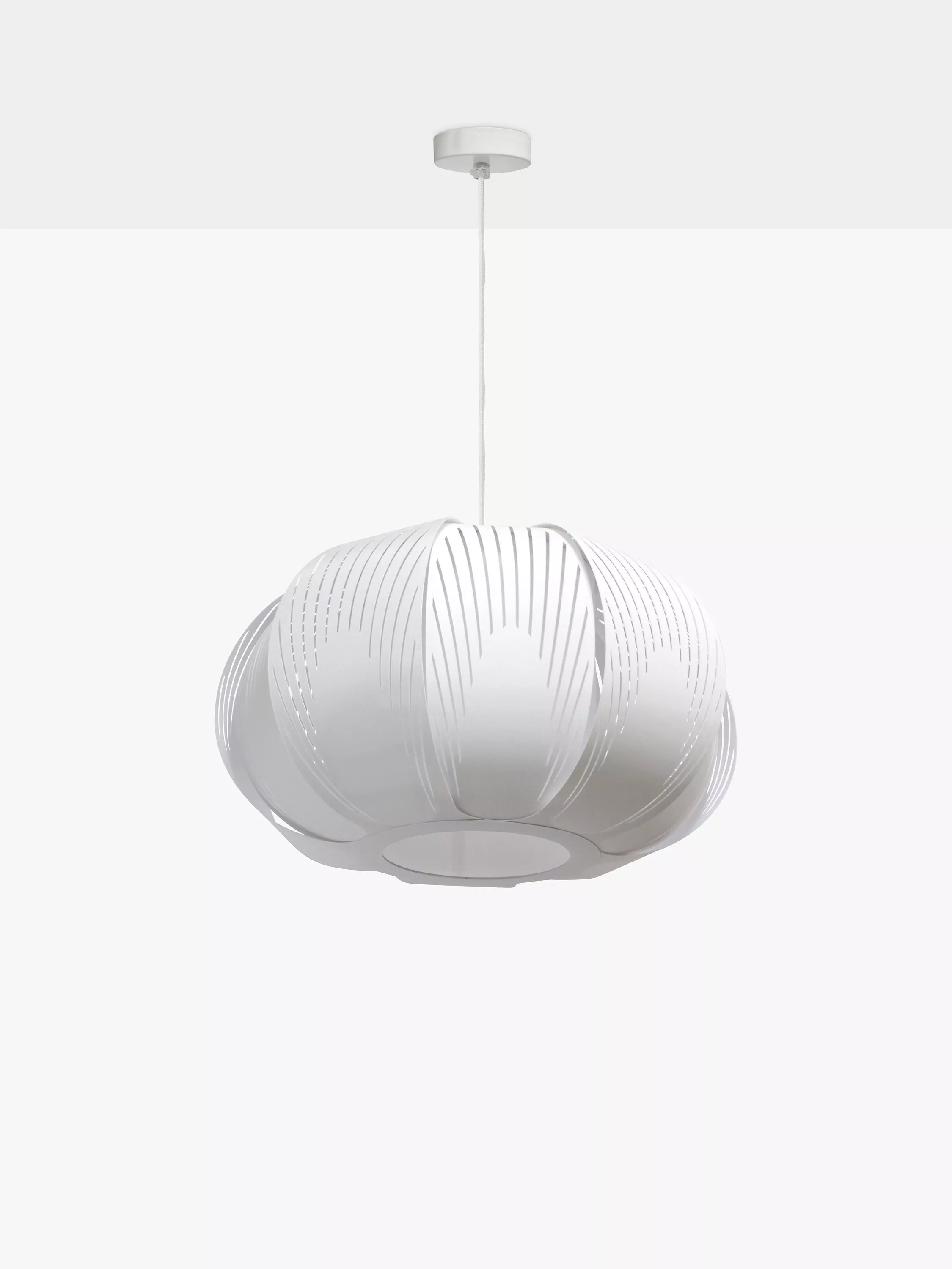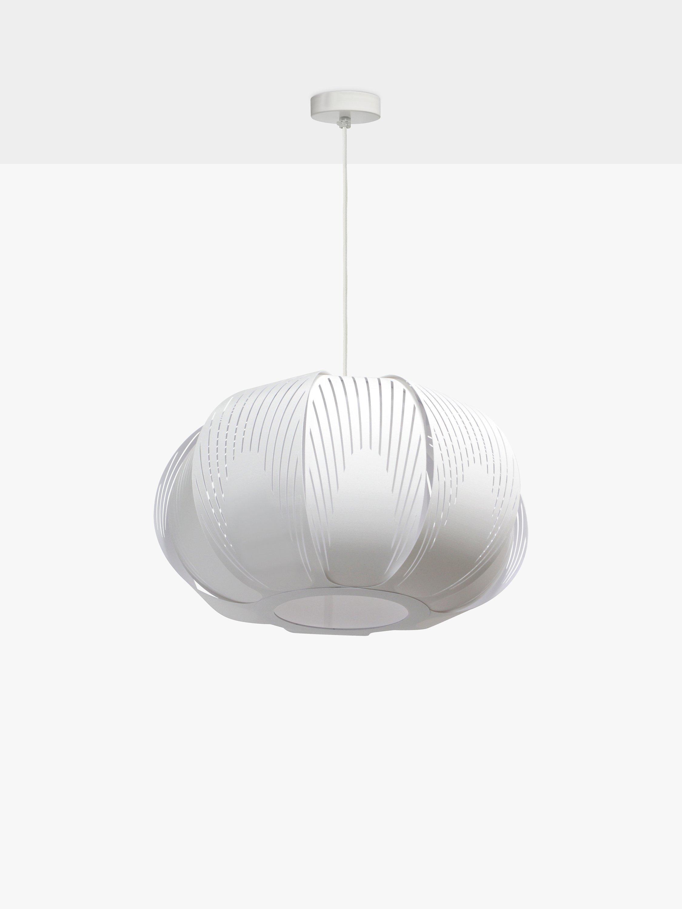 Japanese-style hanging ceiling light. Inspired by timeless elegance, its die-cut design allows light to delicately dance through each cut-out, creating a charming and serene ambiance in any space.