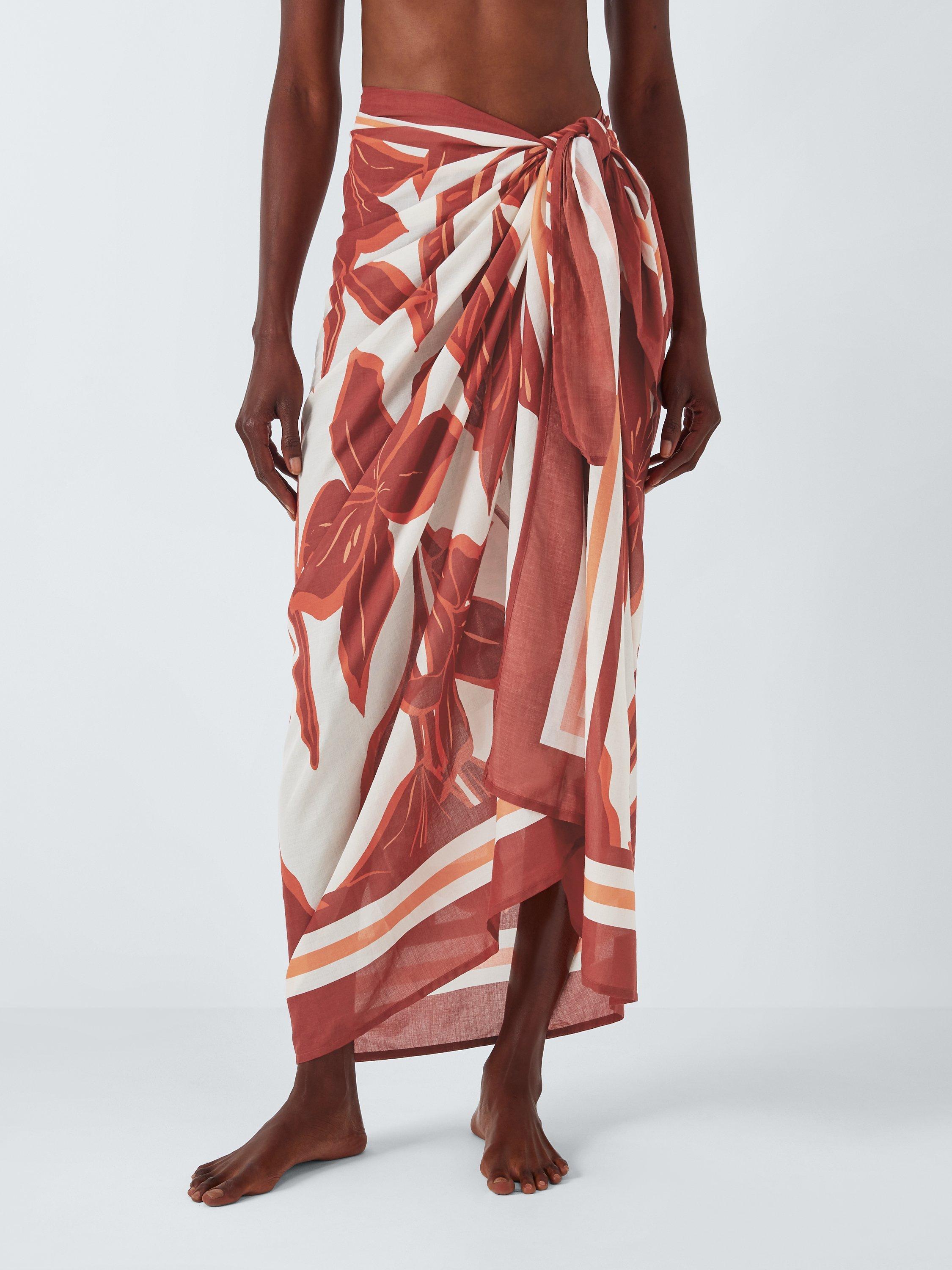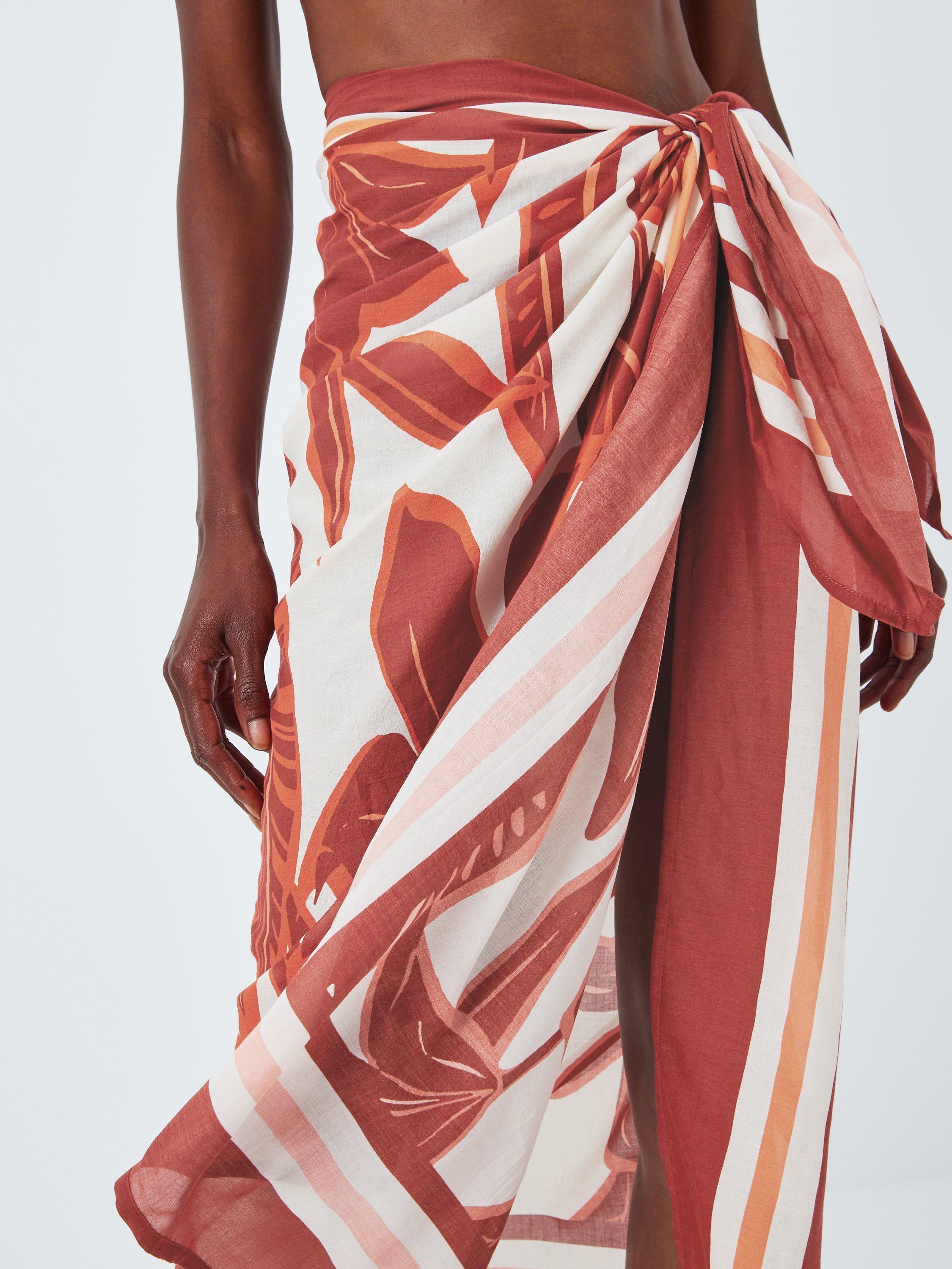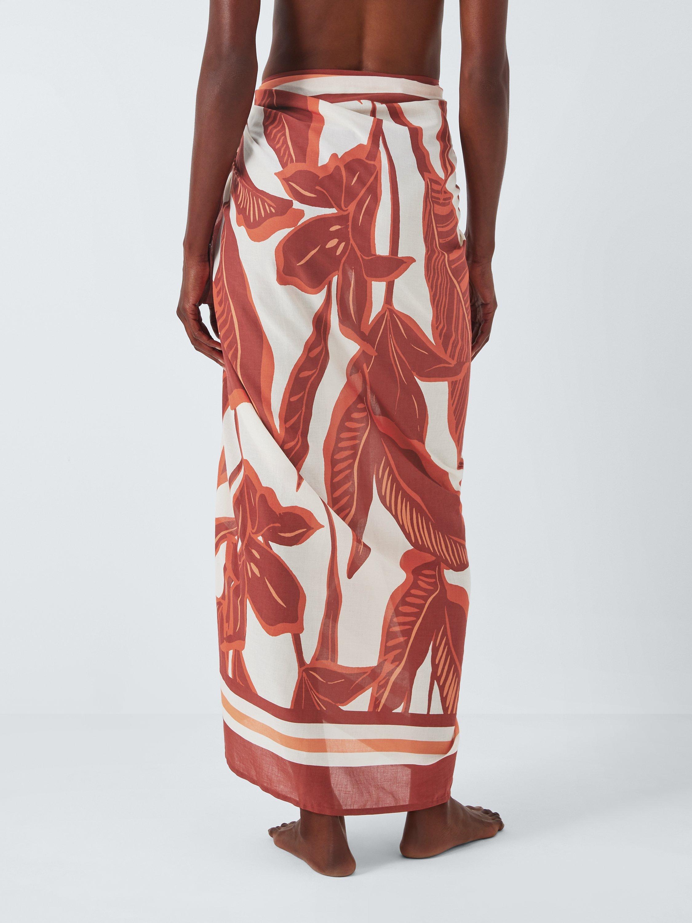 John LewisAyanna Leaf Print Sarong, Rust