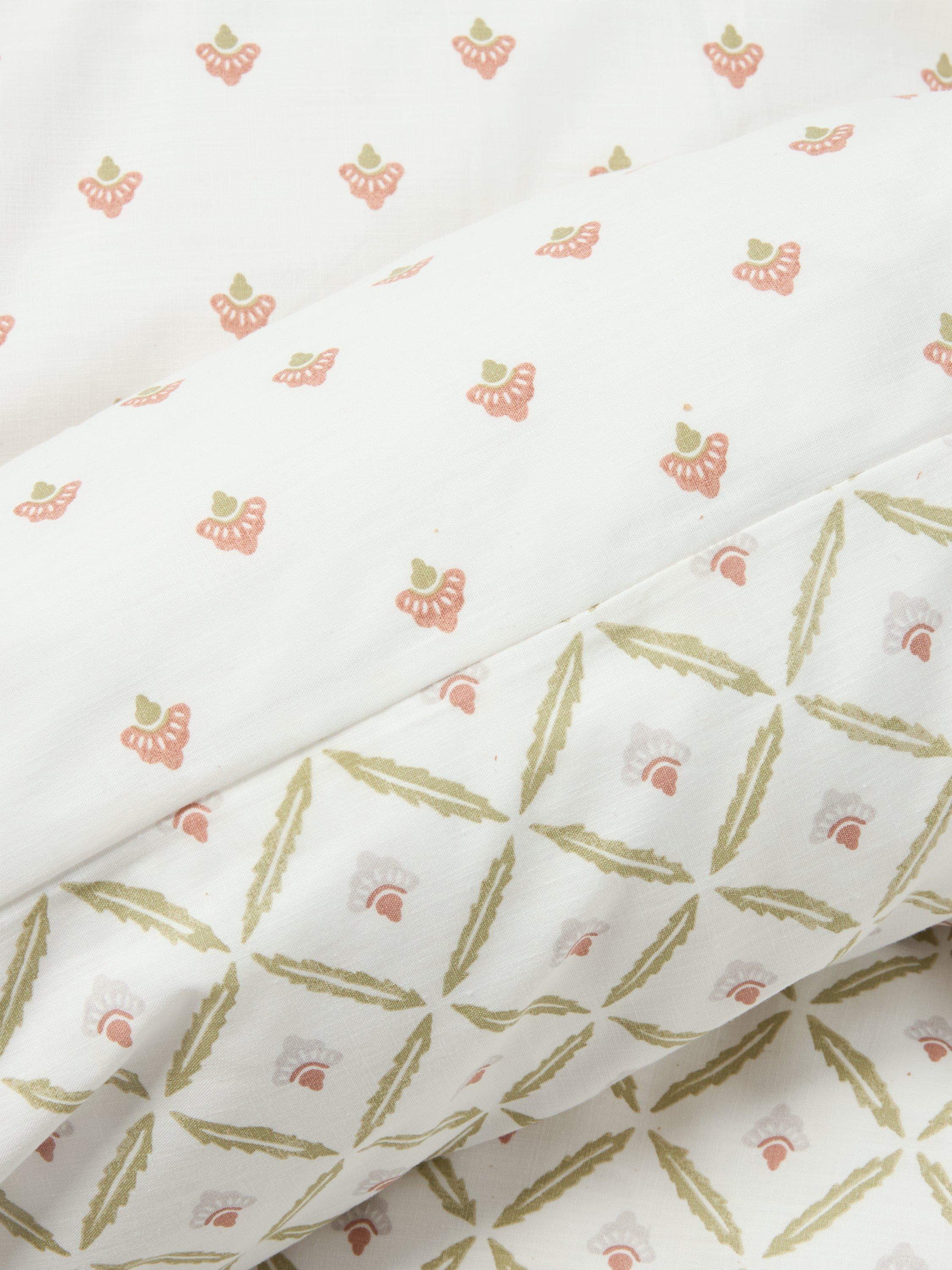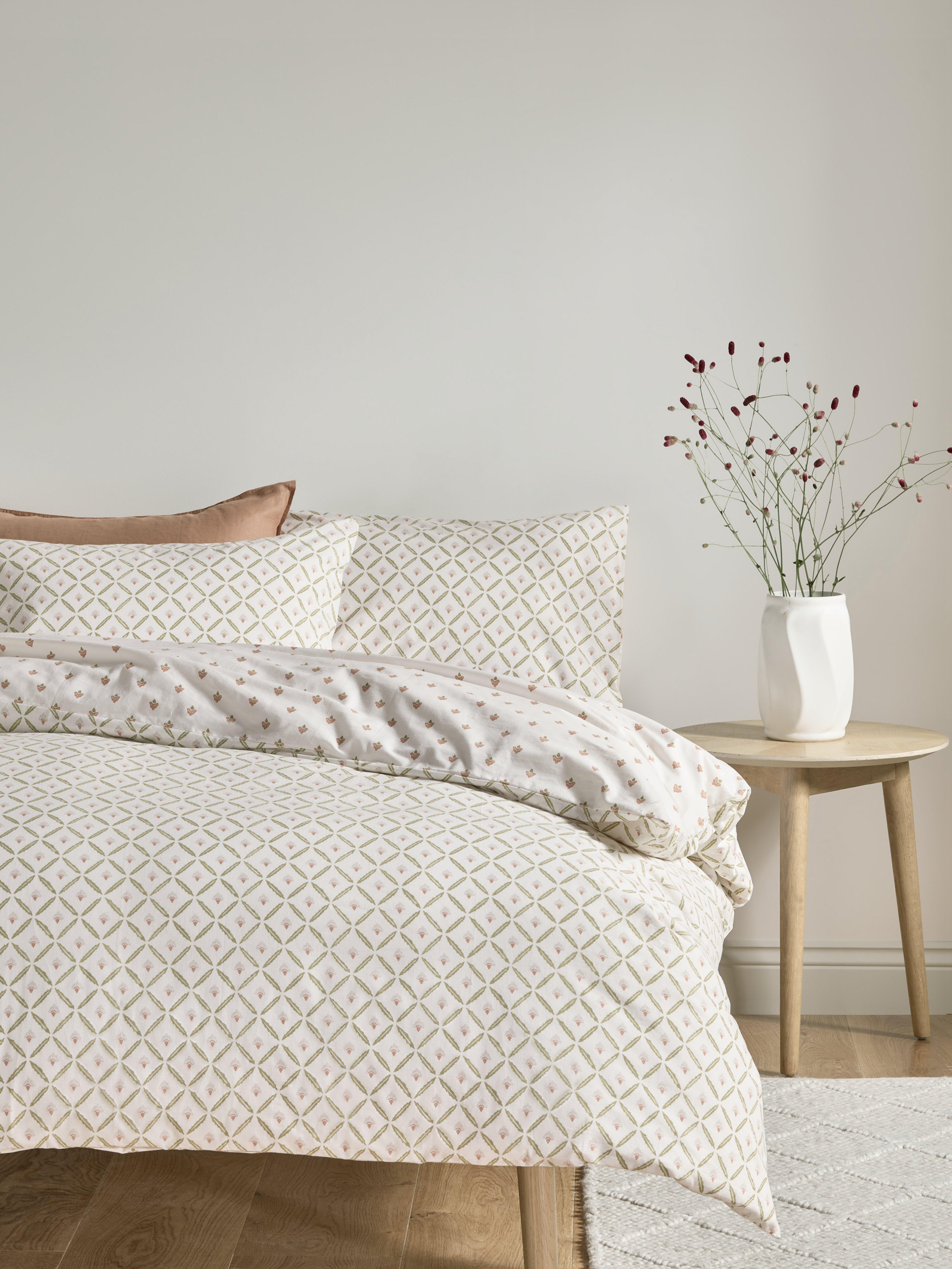 A fresh and pretty stylised floral trellis with a complementary print on the reverse, made in 100% cotton fabric to help keep you cool and comfortable throughout the night.