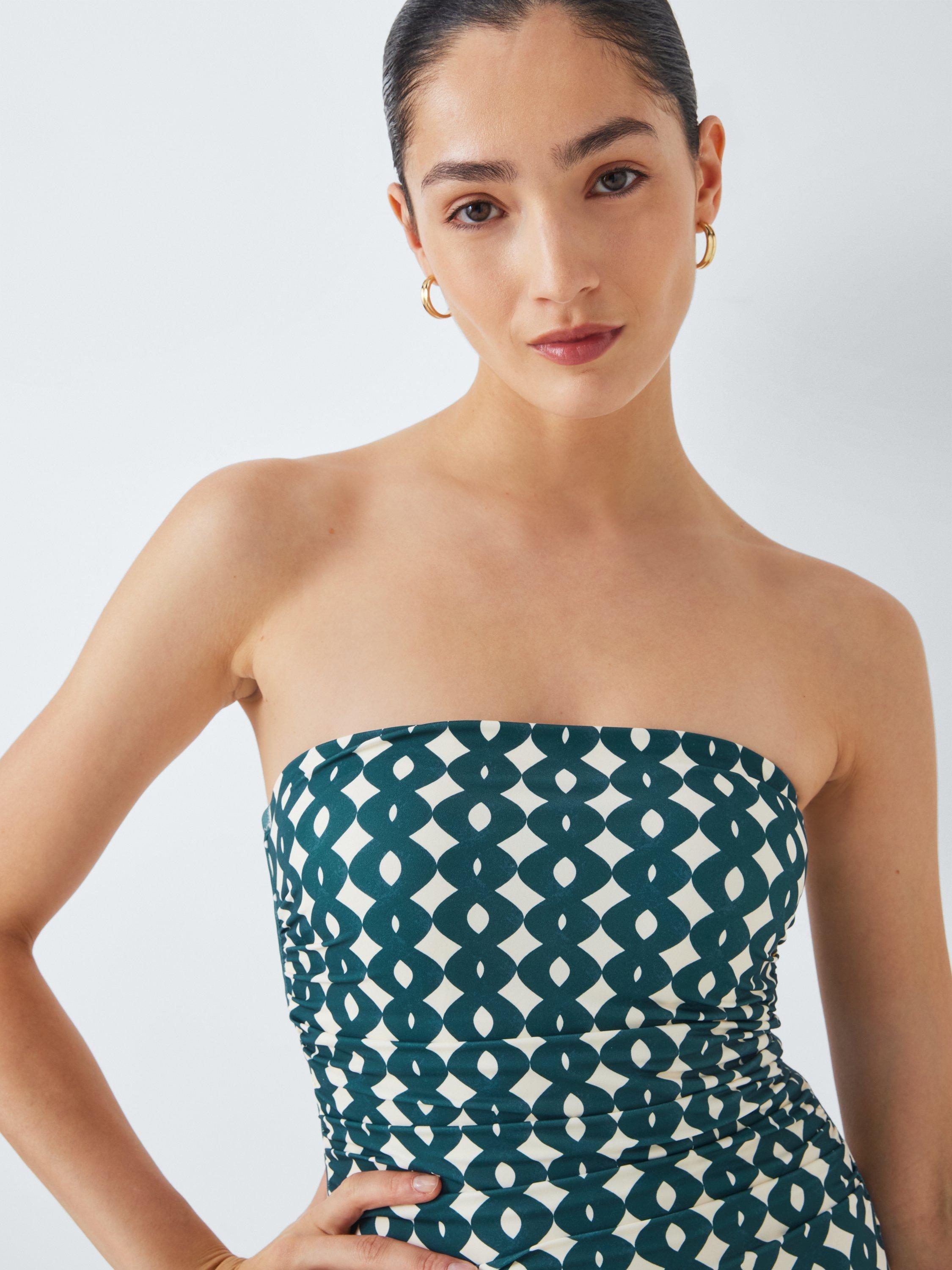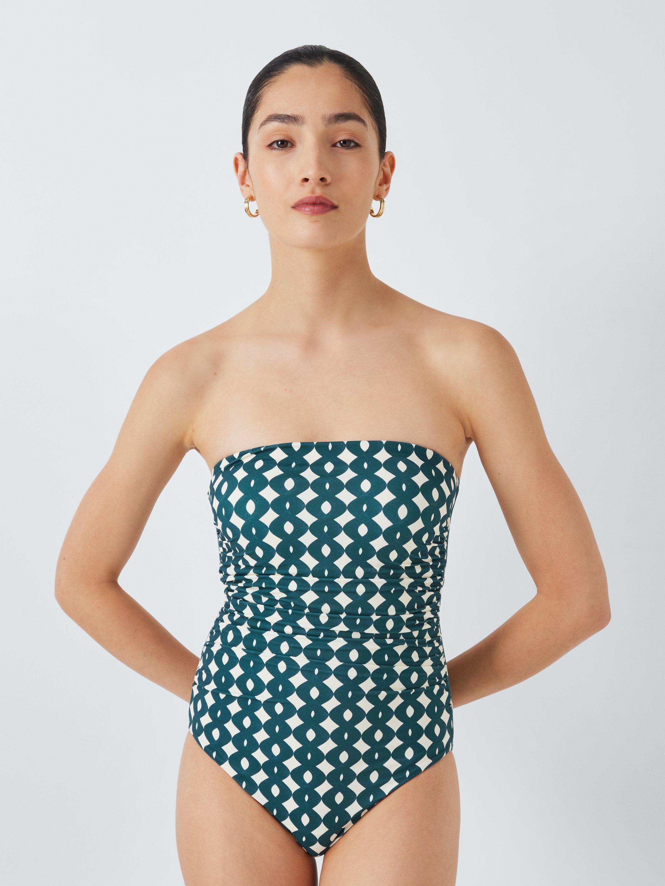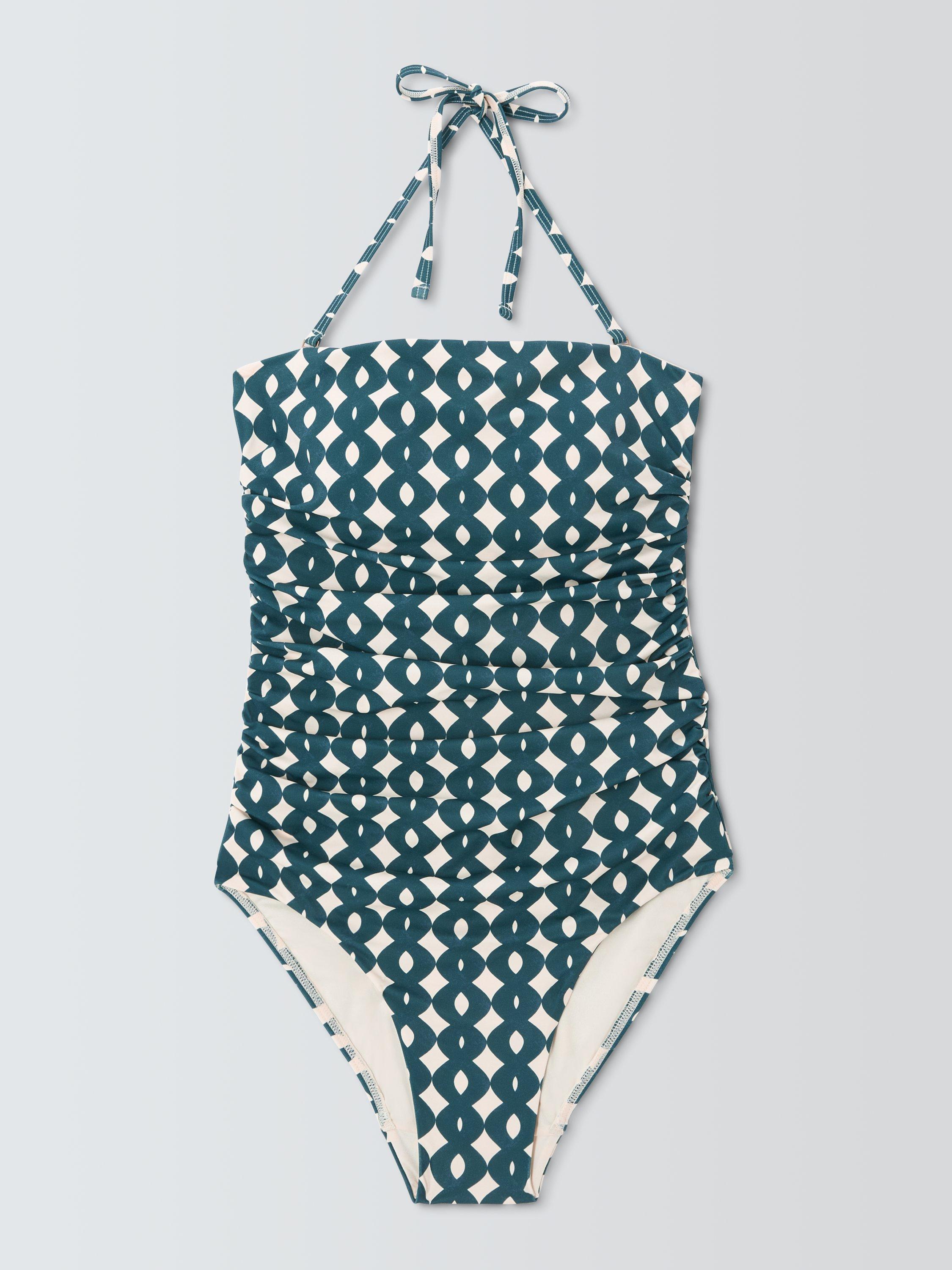 A fully lined swimsuit with detachable straps to switch up the style from halterneck to strapless, and ruching across the tummy for a refined silhouette.