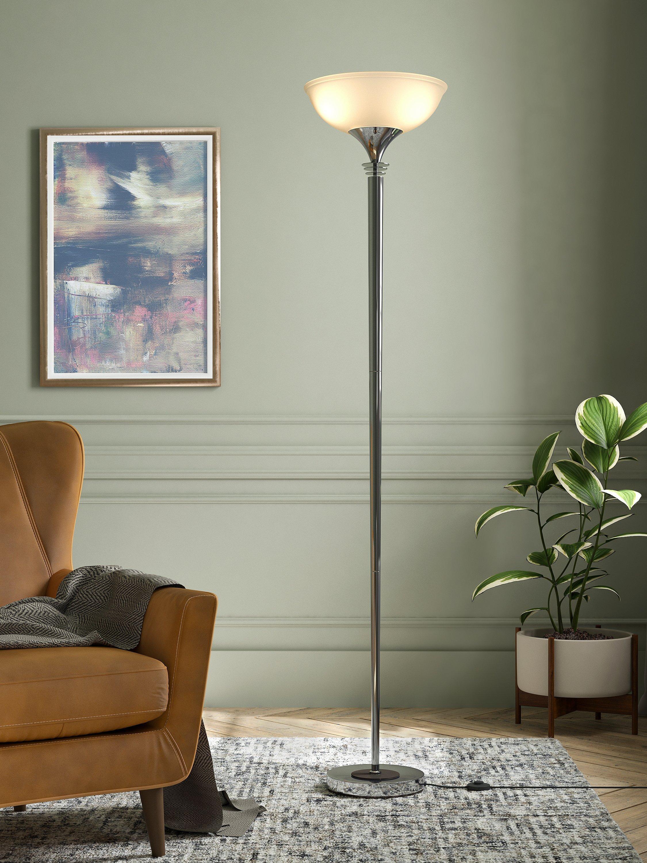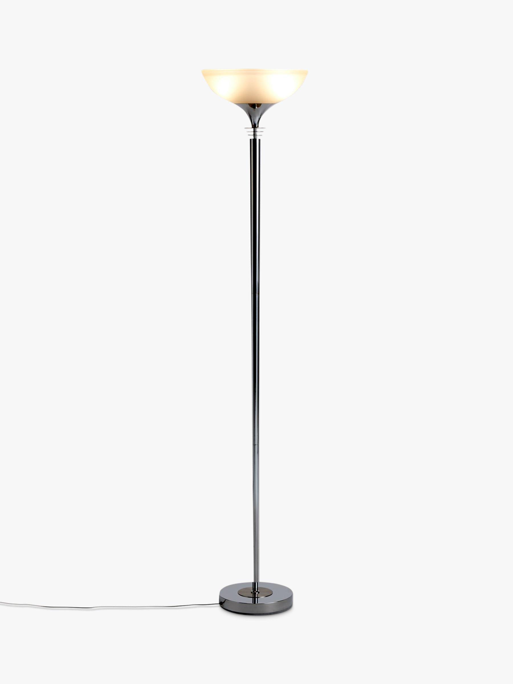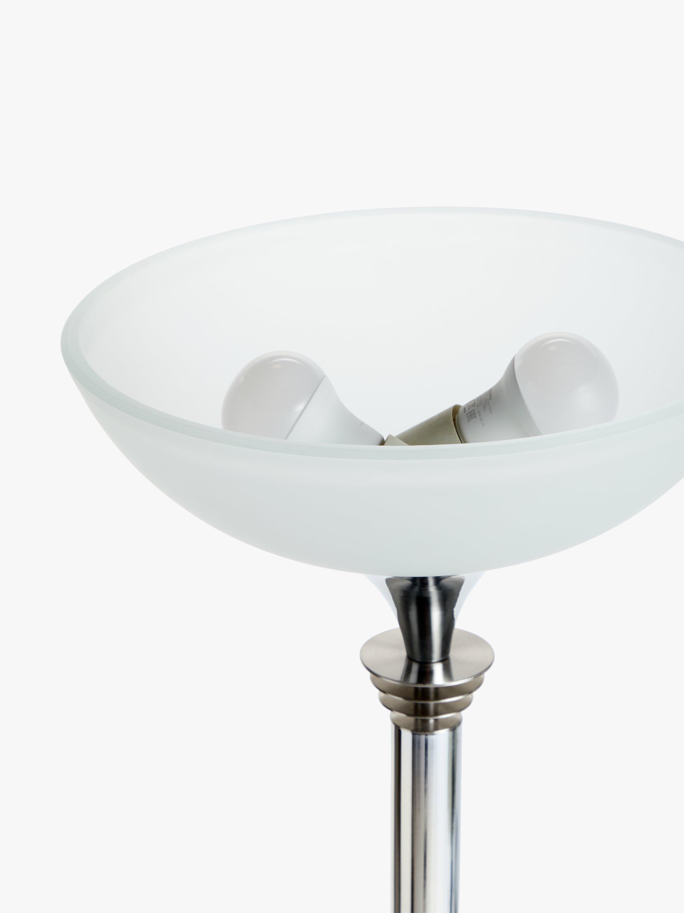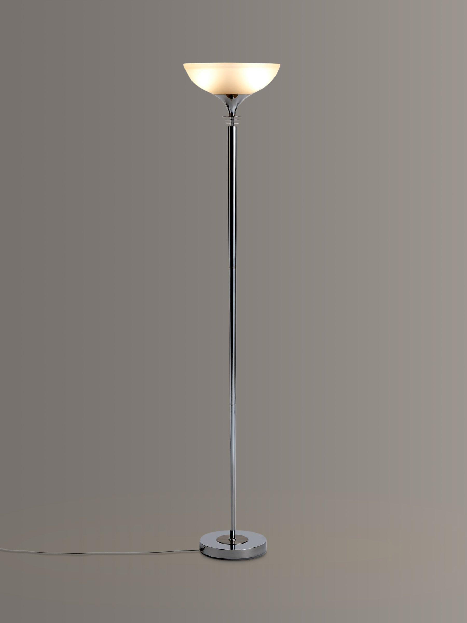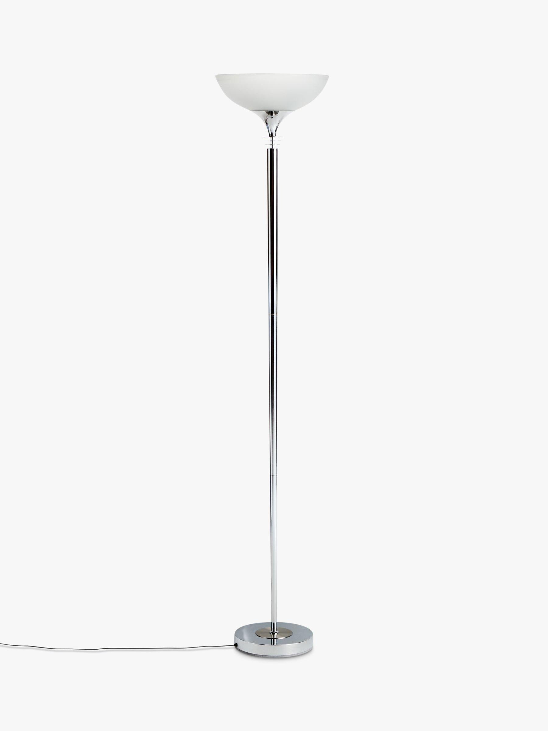Bringing a more modern feel to the traditional uplighter, our Azure floor lamp is designed with a slimline, yet sturdy metal frame. The frosted glass shade enhances a warm wash of light that can be dimmed using the dimmer switch in the floor cable. Thanks to its minimalist design, this functional floor lamp is ideal for your cosy reading corner, as well as smaller spaces at home.