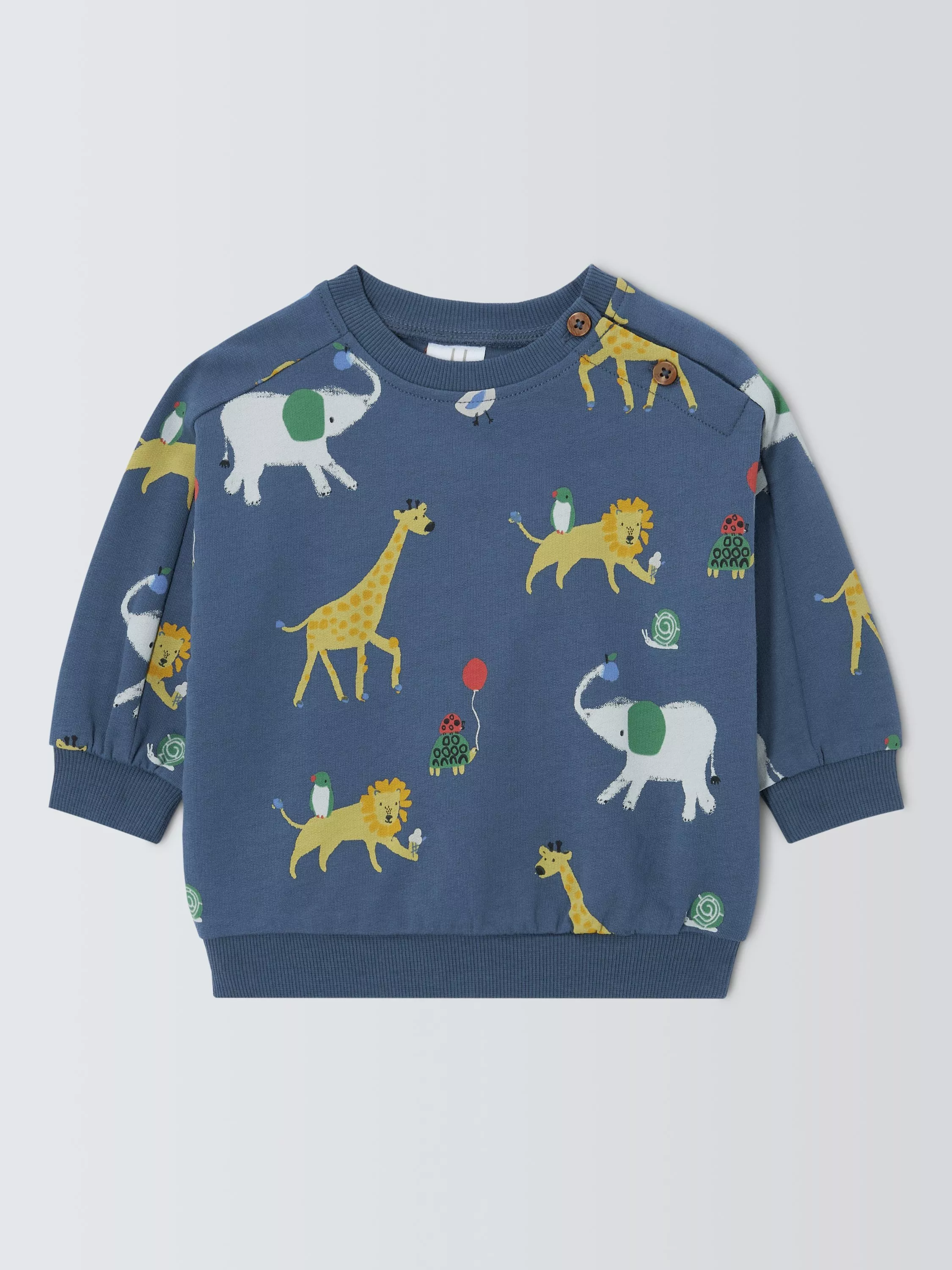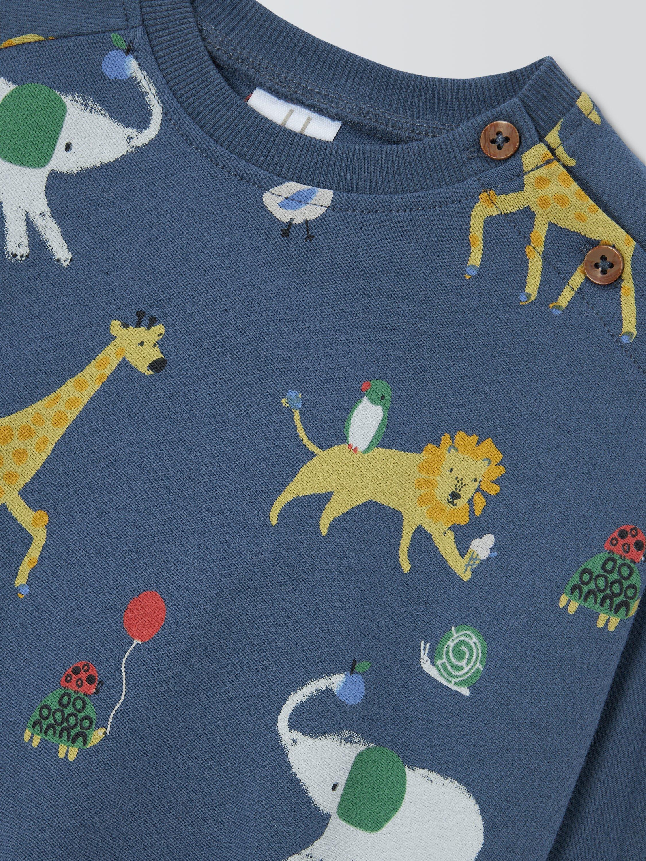 With an all-over motif of animals, this sweater is made from 100% cotton for softness. Complete with shoulder buttons for easy dressing, plus ribbed cuffs and neckline for a fantastic fit.