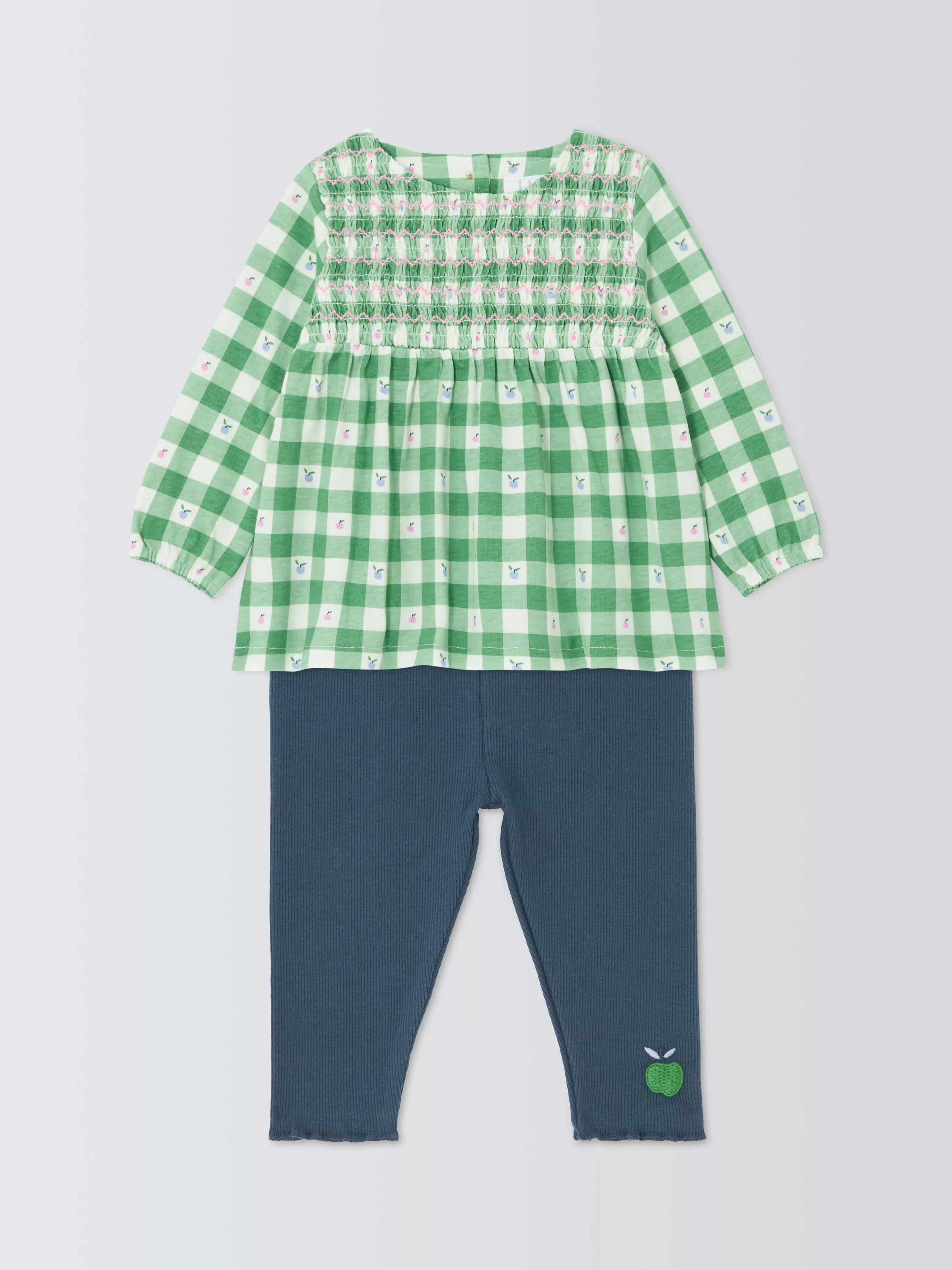 John LewisBaby Apple Gingham Smock Top & Leggings Set, Multi