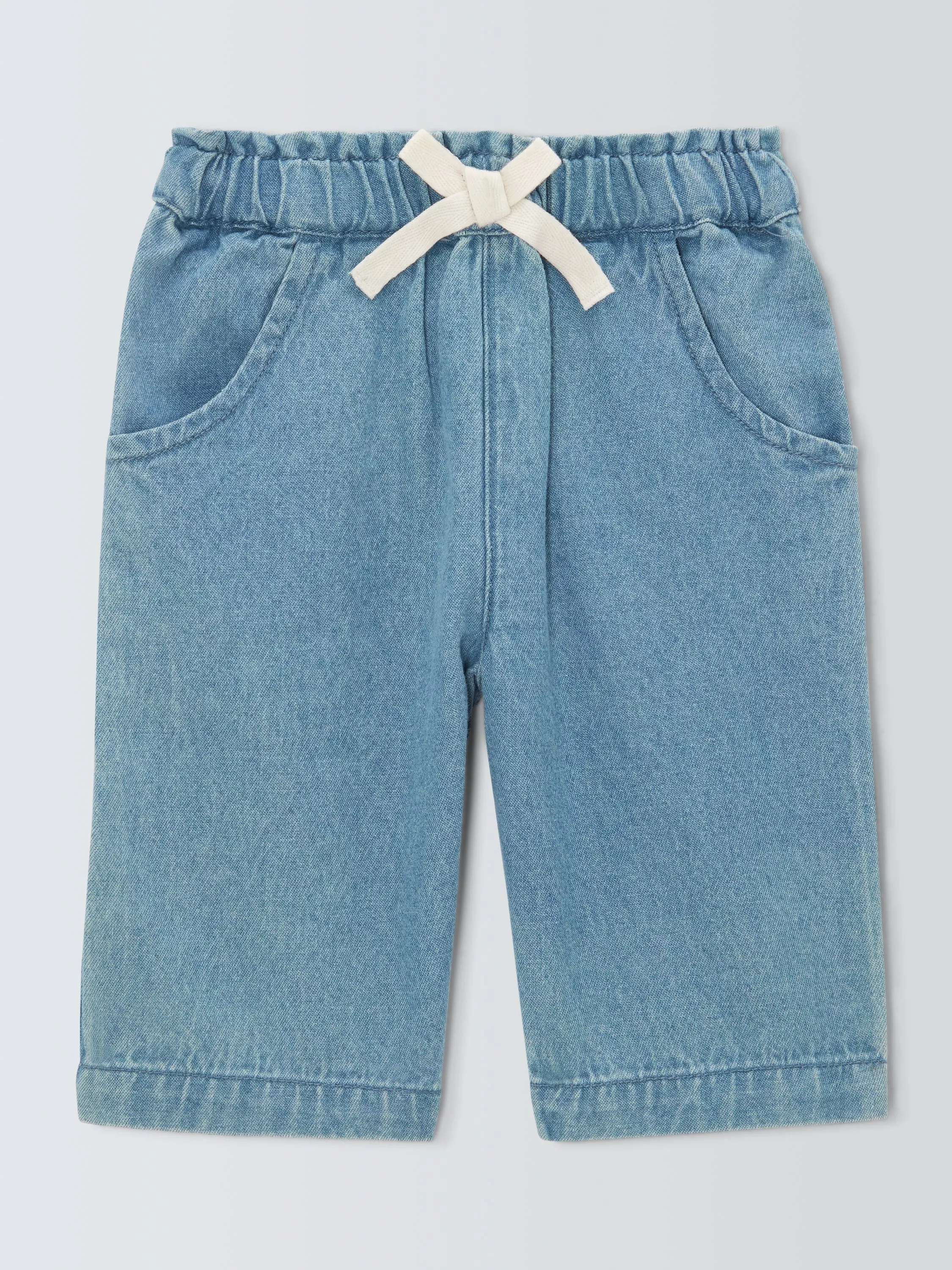 Cotton denim trousers with an elasticated waist for a secure fit, plus a bow decoration.