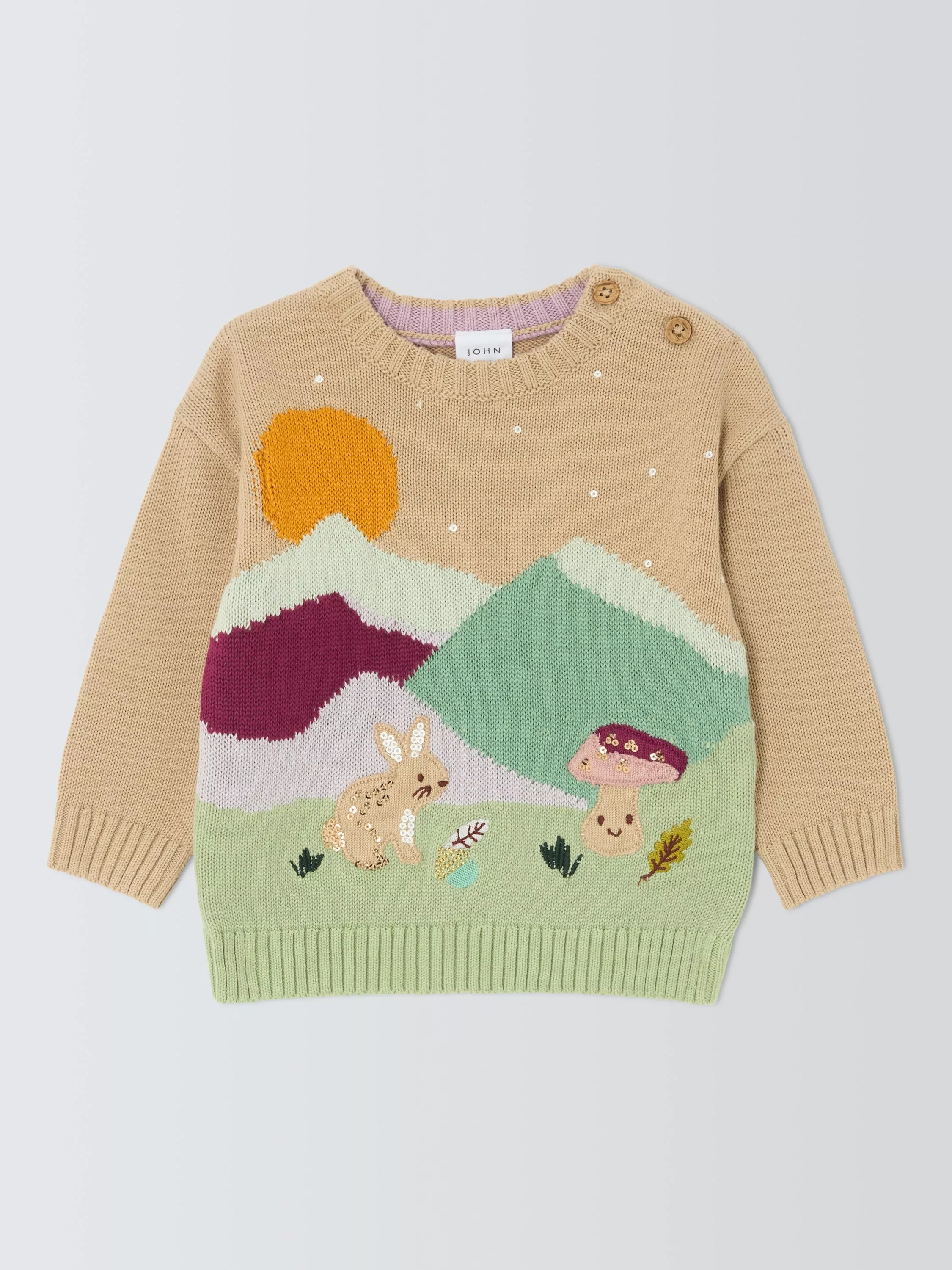 John LewisBaby Bunny Scene Knitted Jumper, Multi