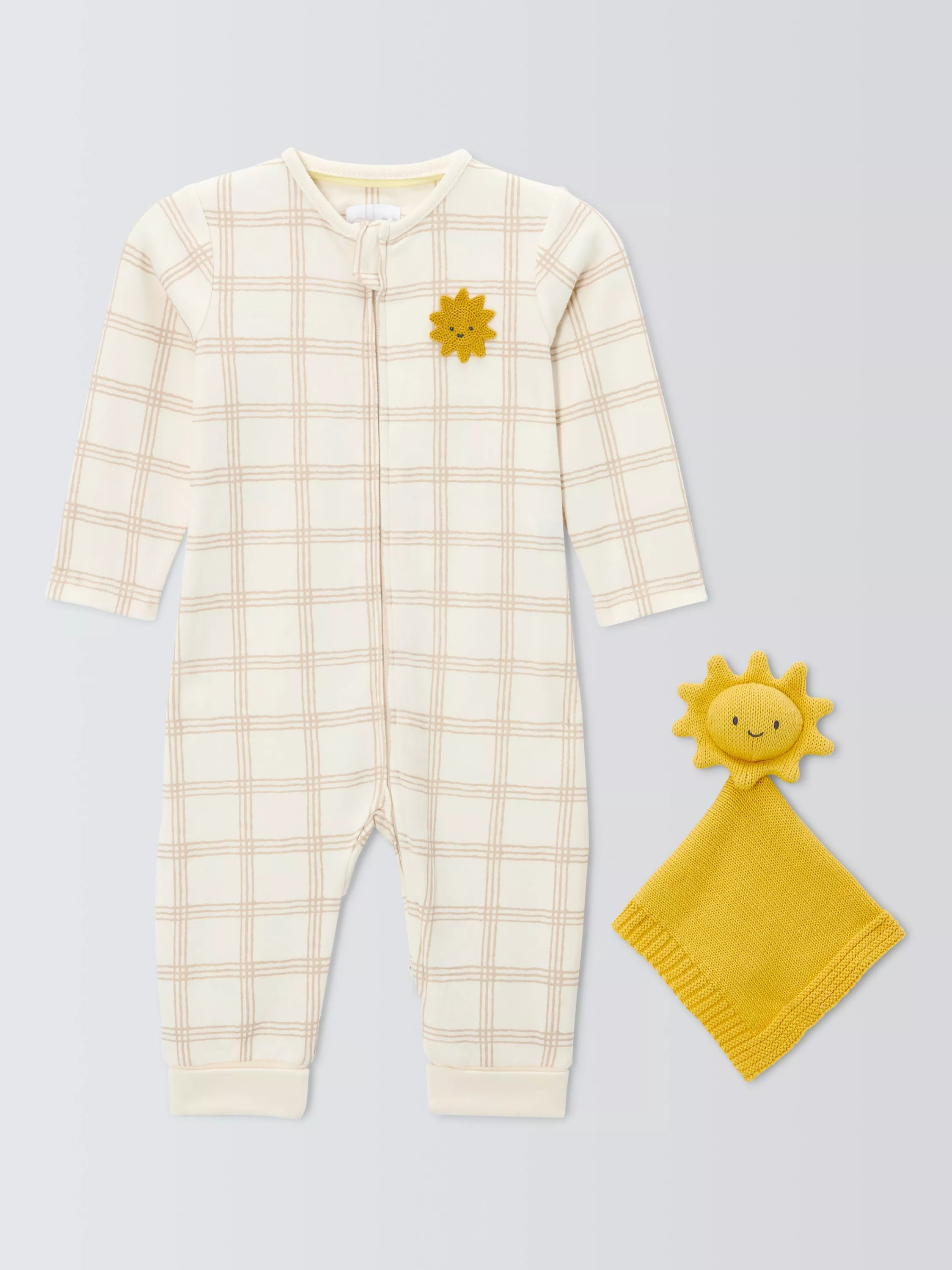 John LewisBaby Check Romper & Comforter, Natural