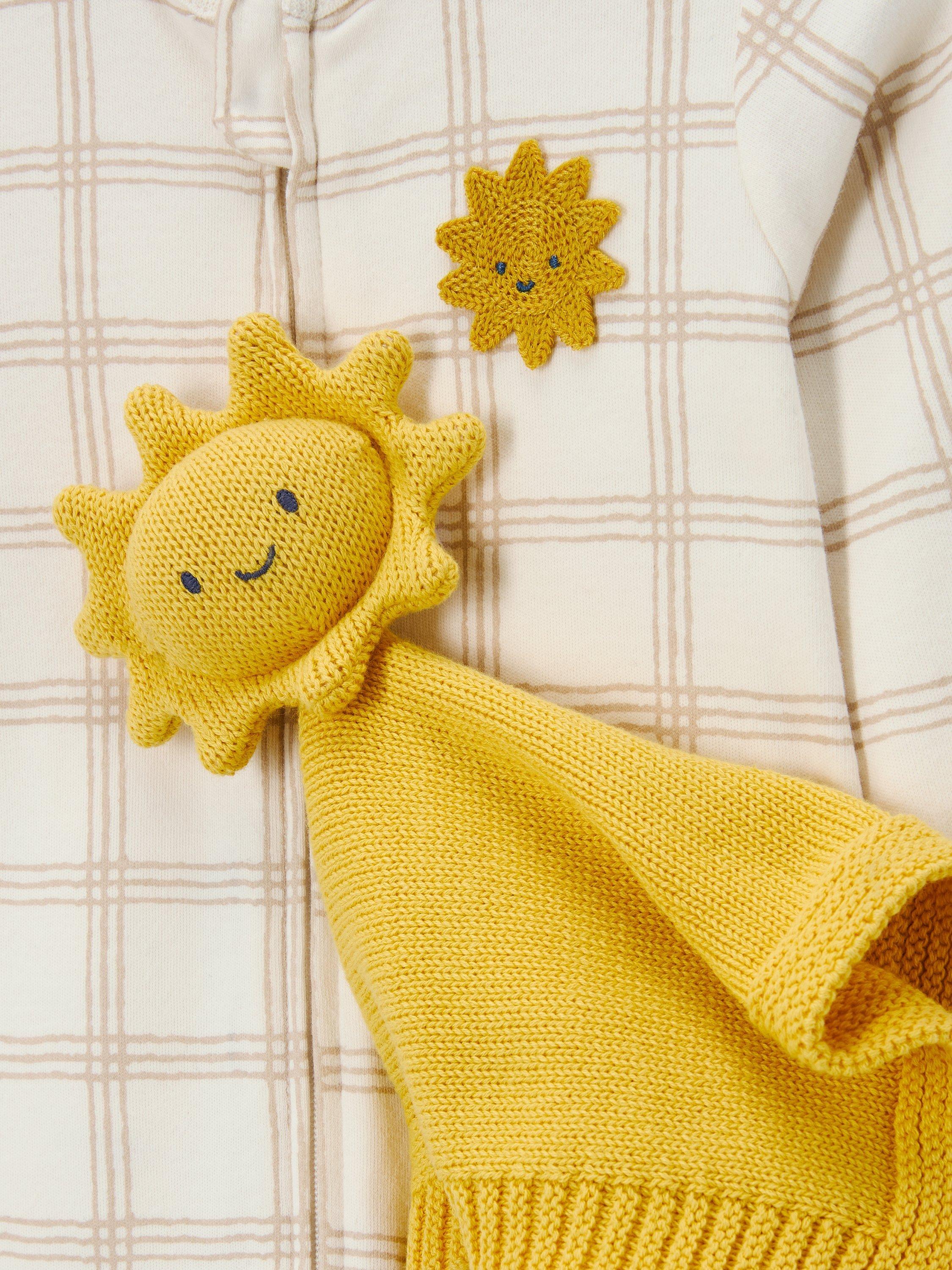 Made from pure cotton for a gentle touch, this romper has a zip-up front for easy dressing. It comes with a sunshine comforter that matches the chest embroidery.