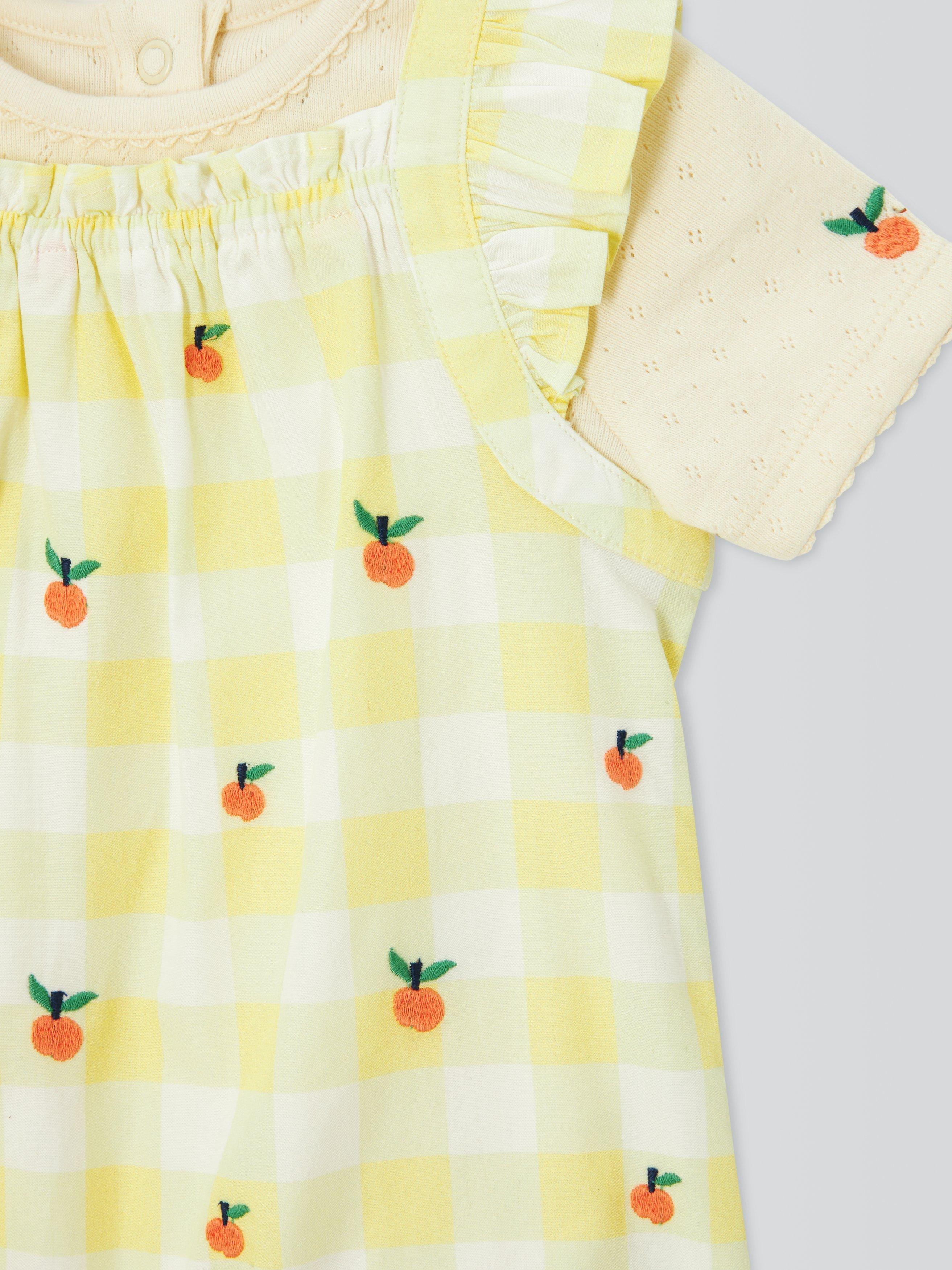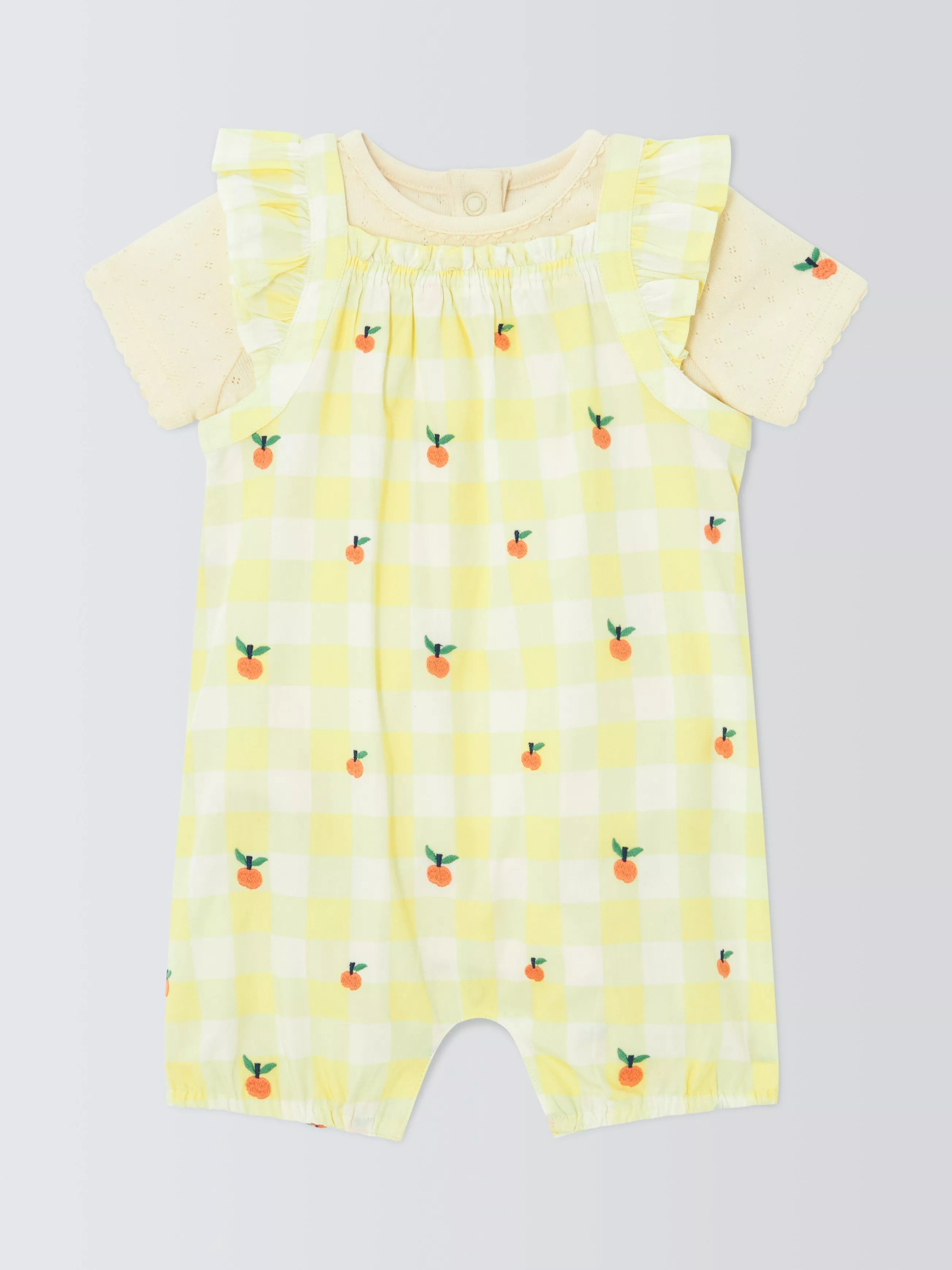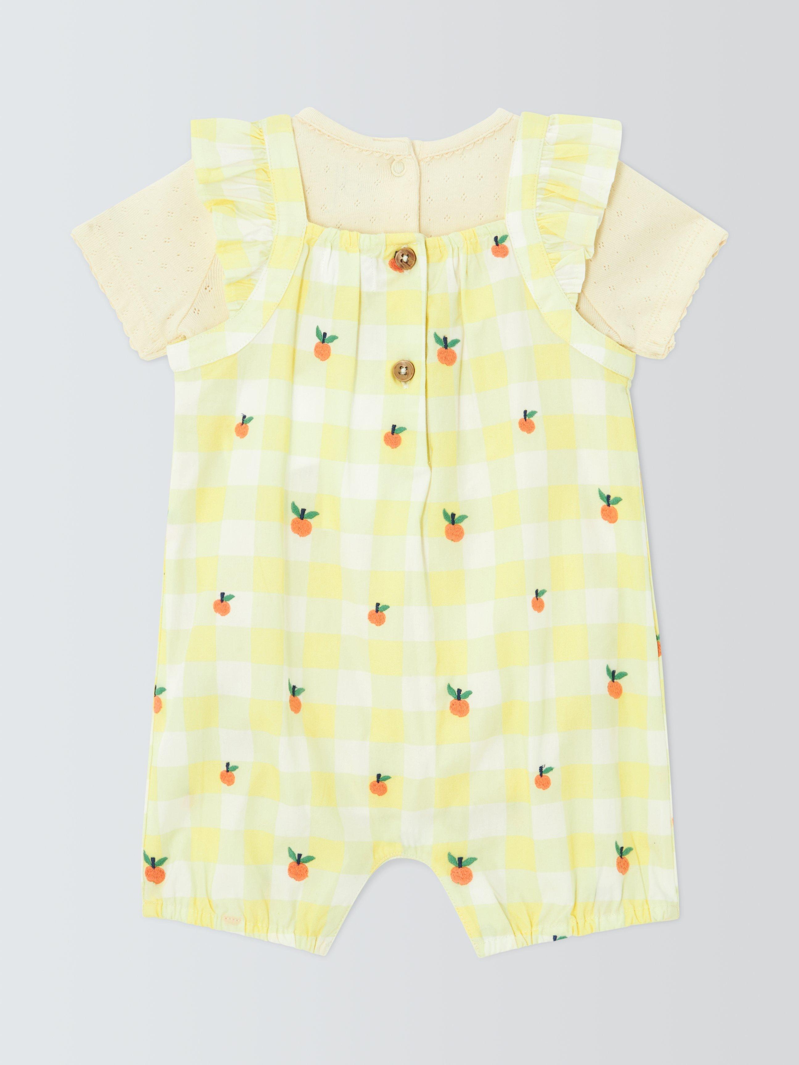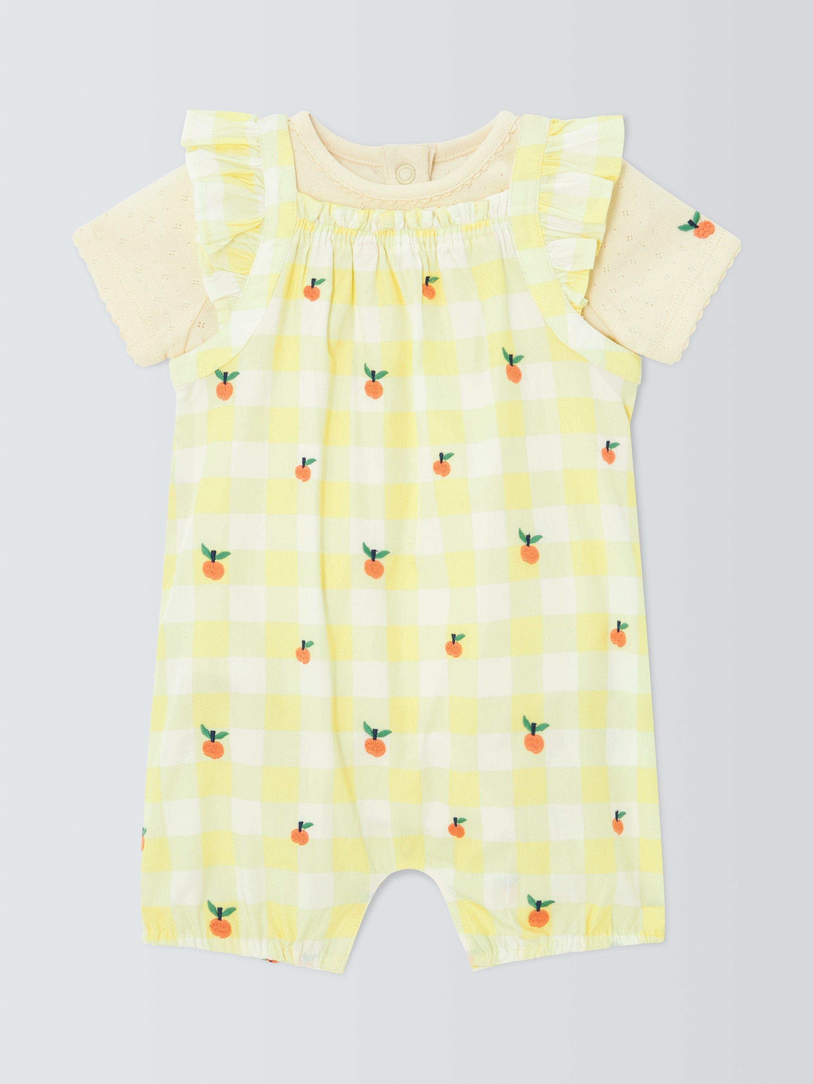 John LewisBaby Check Romper & T-Shirt Set, Yellow