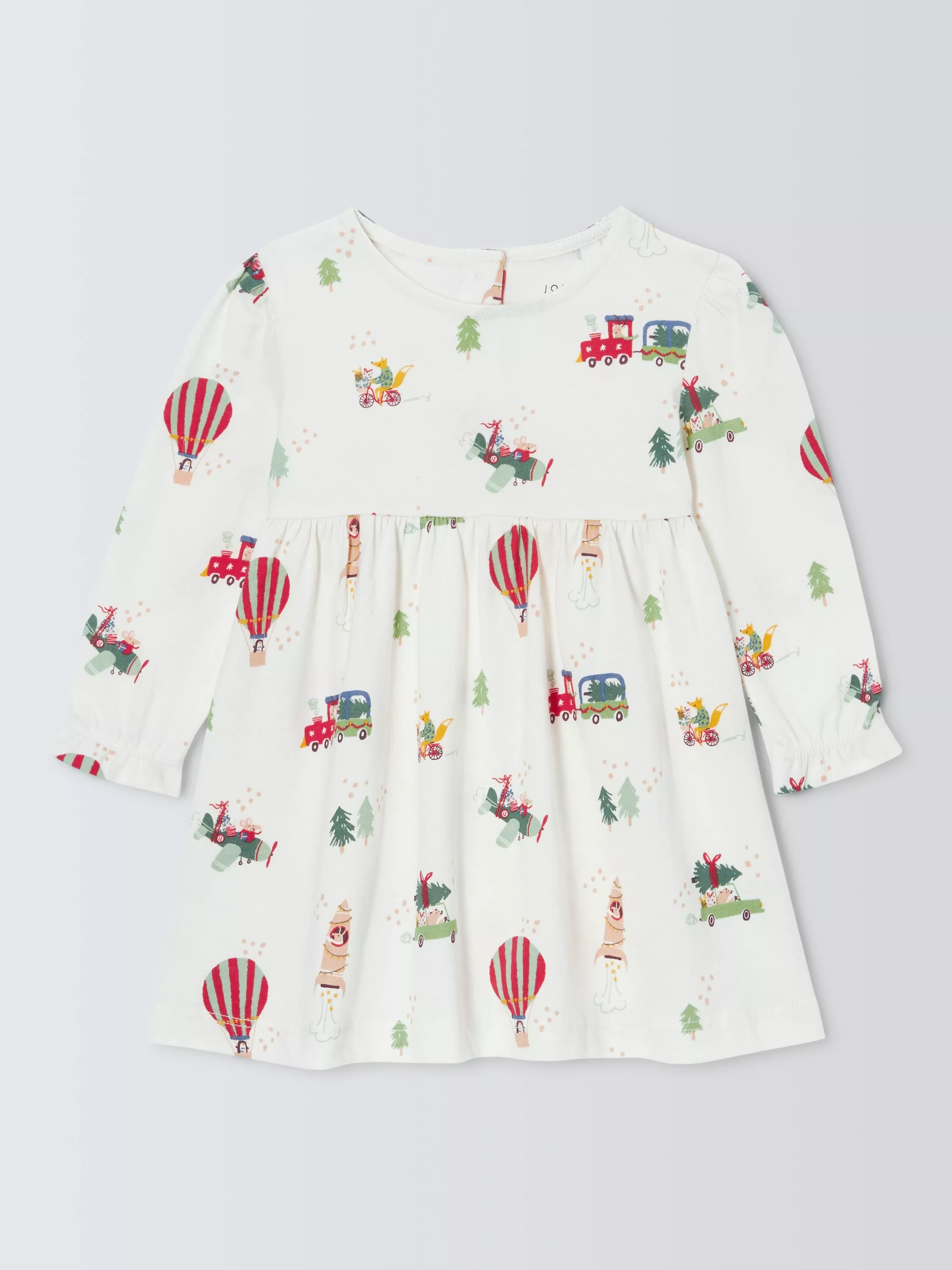 Featuring an all-over Christmas print, this long-sleeved dress is made from pure cotton. With buttons down the centre back for easy dressing.