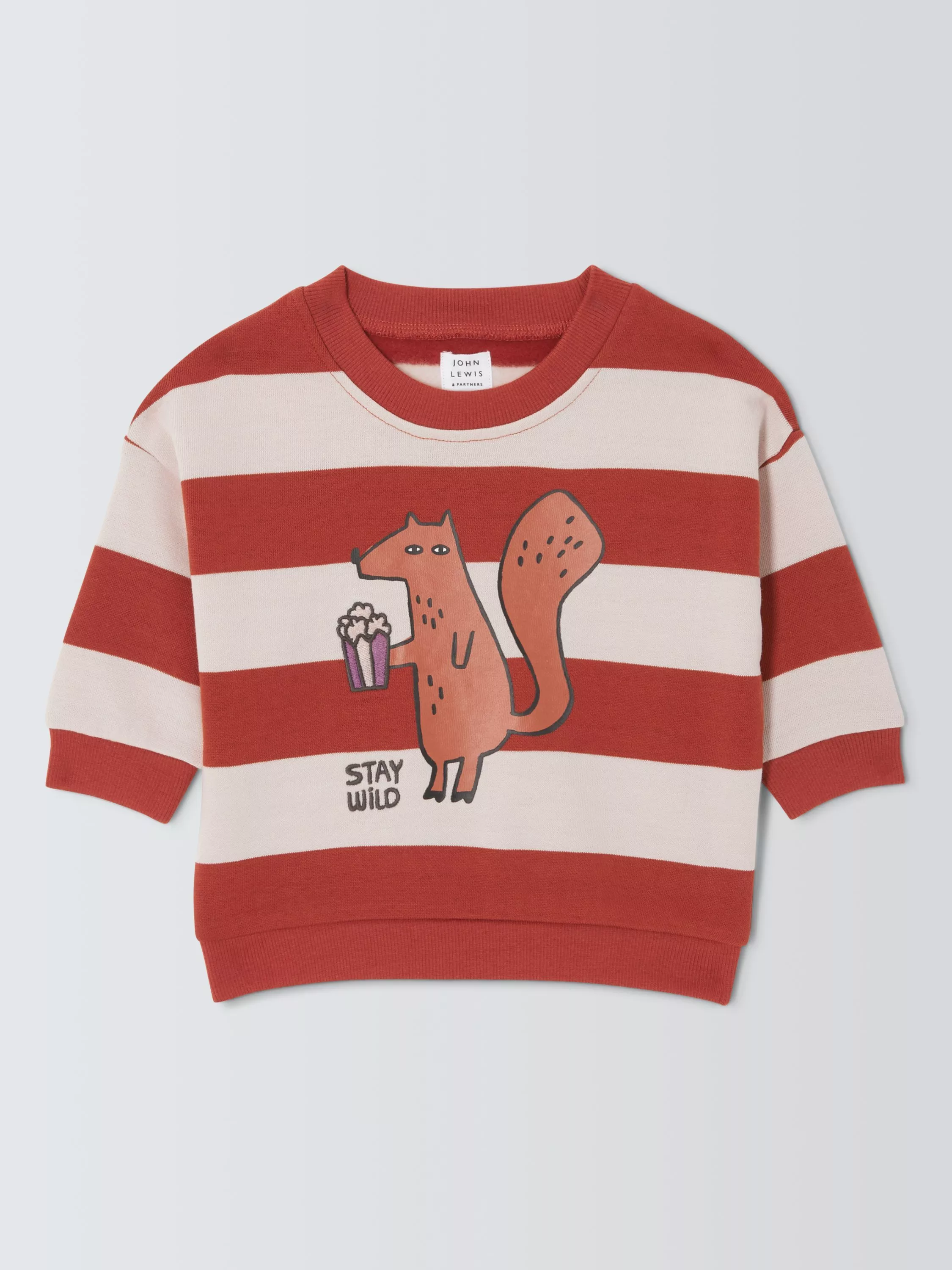 This cotton sweatshirt's classic stripe is elevated with a playful print, making it a fun and comfy choice.