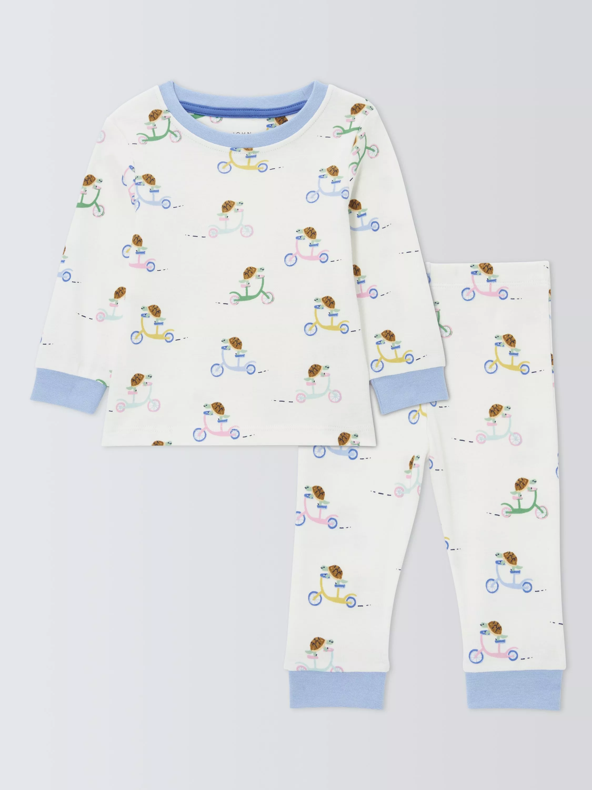 John LewisBaby Cotton Tortoise Print Pyjama Set, White Multi