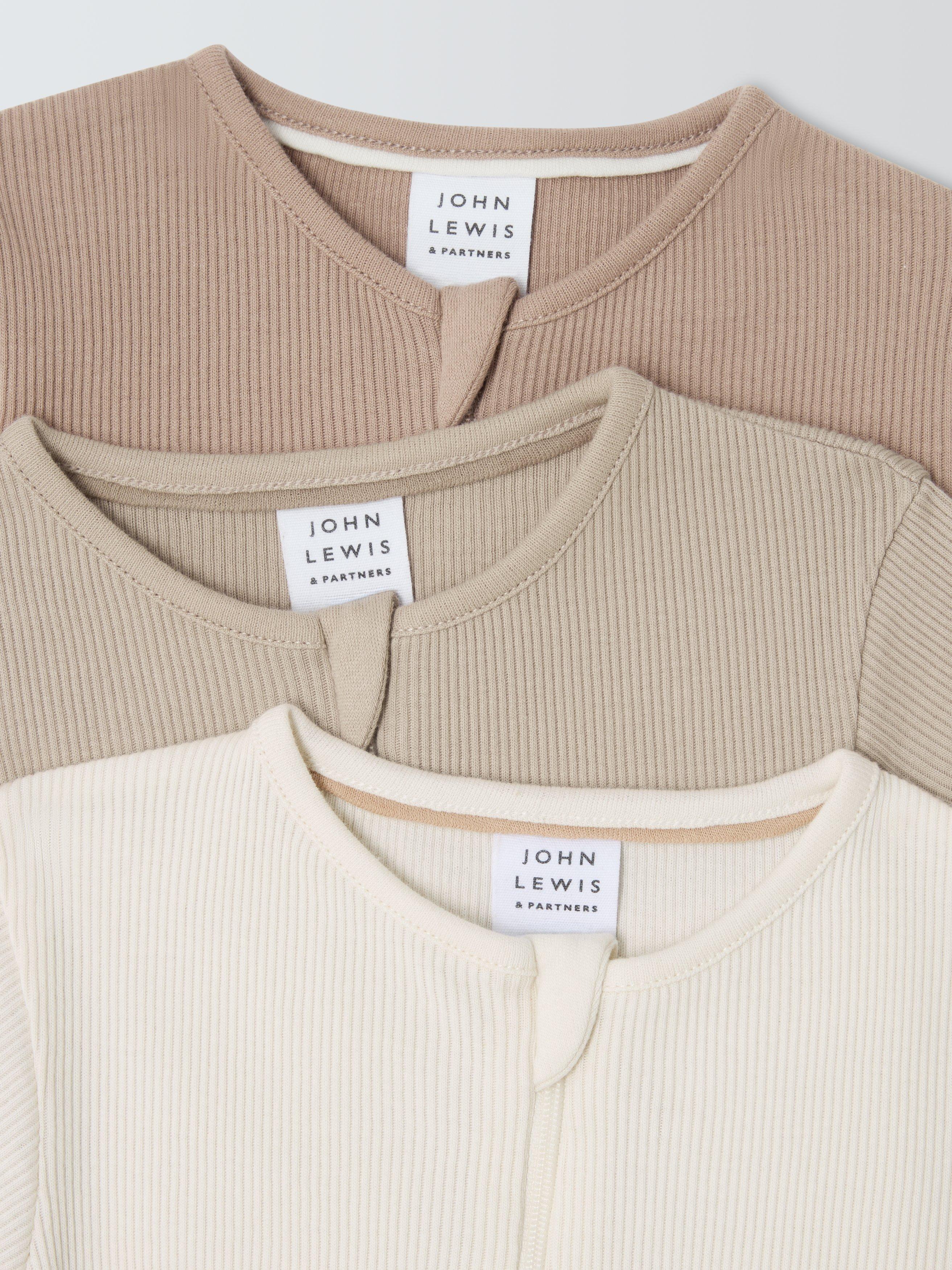John LewisBaby Cotton Two Way Zip Ribbed Cotton Sleepsuit, Pack of 3, Multi