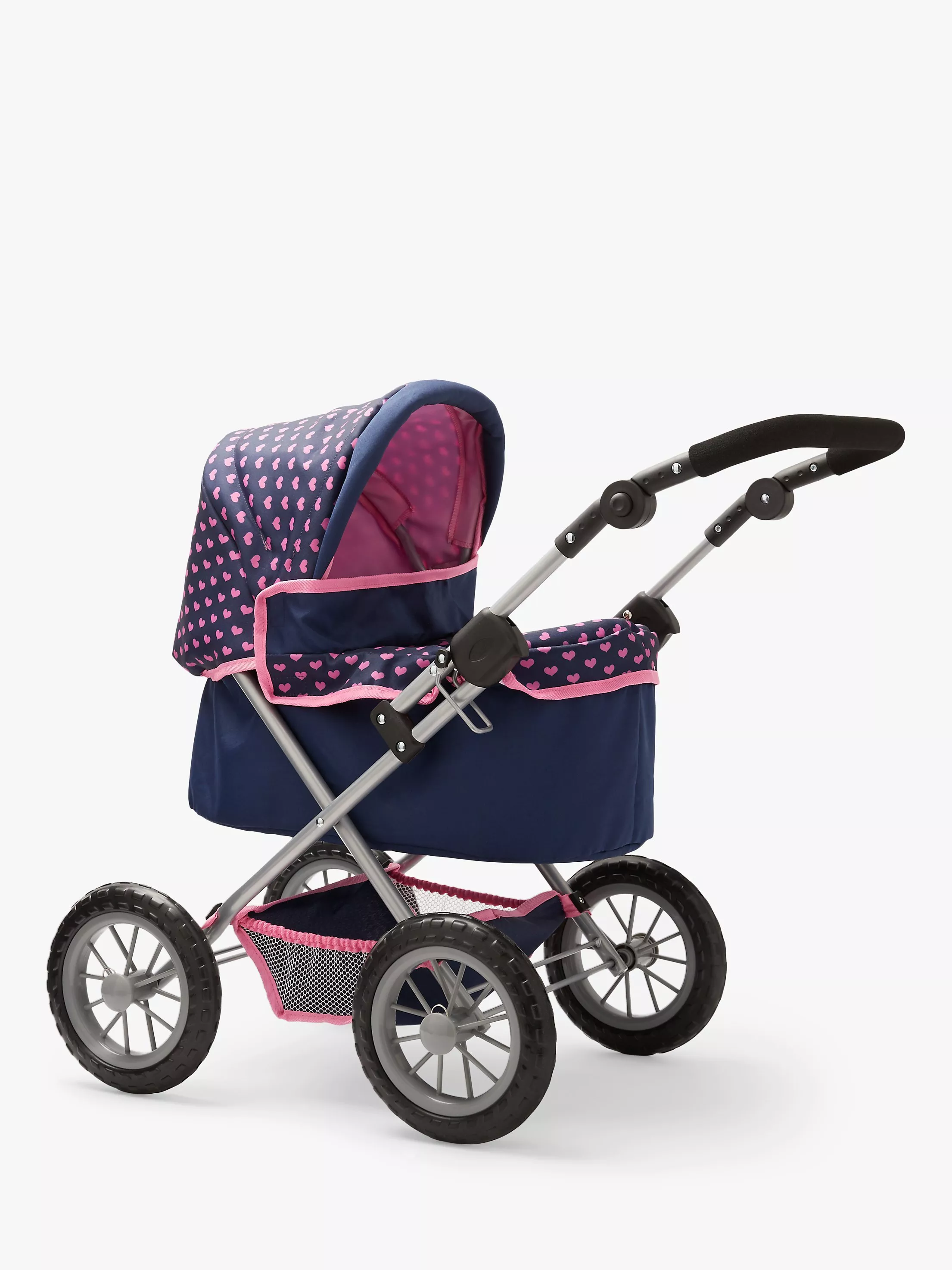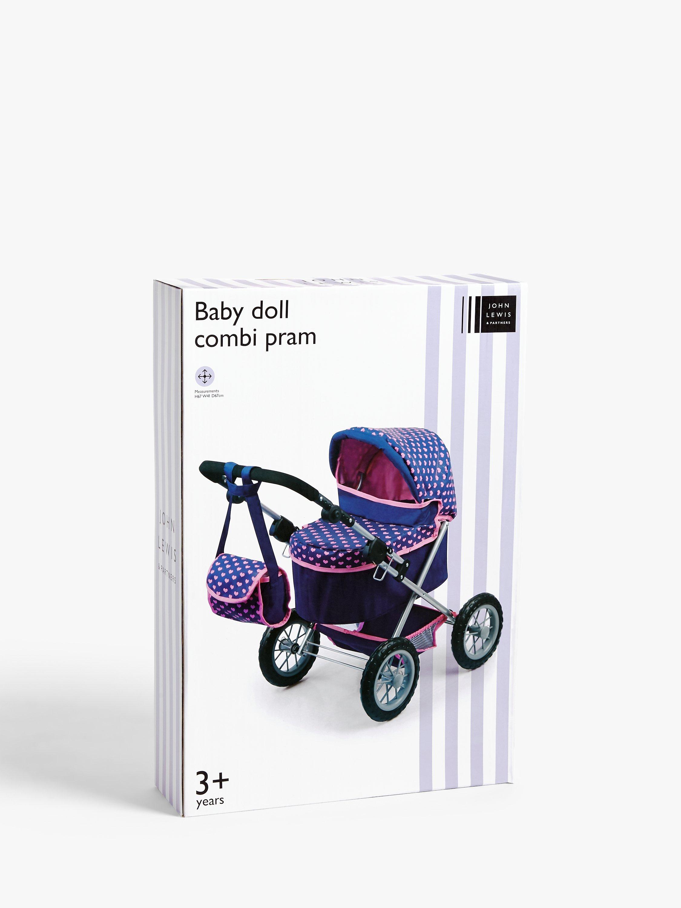 This small but realistic pram for baby dolls is a perfect addition to your John Lewis baby doll collection. With 4 sturdy wheels and a rain hood, it's perfect for taking your favourite doll out for a walk in the park.