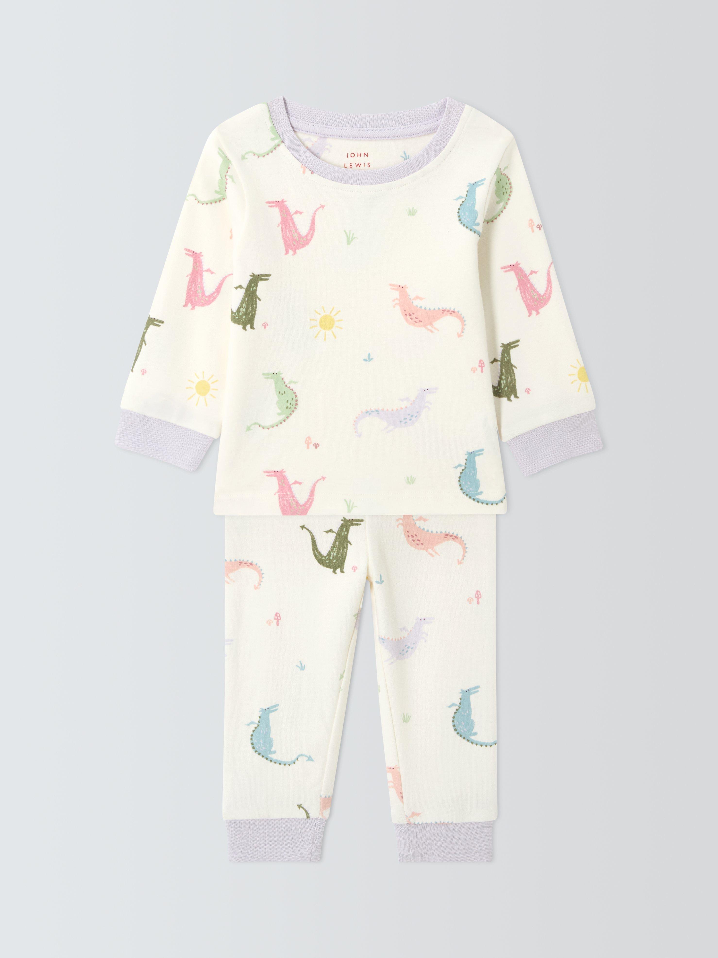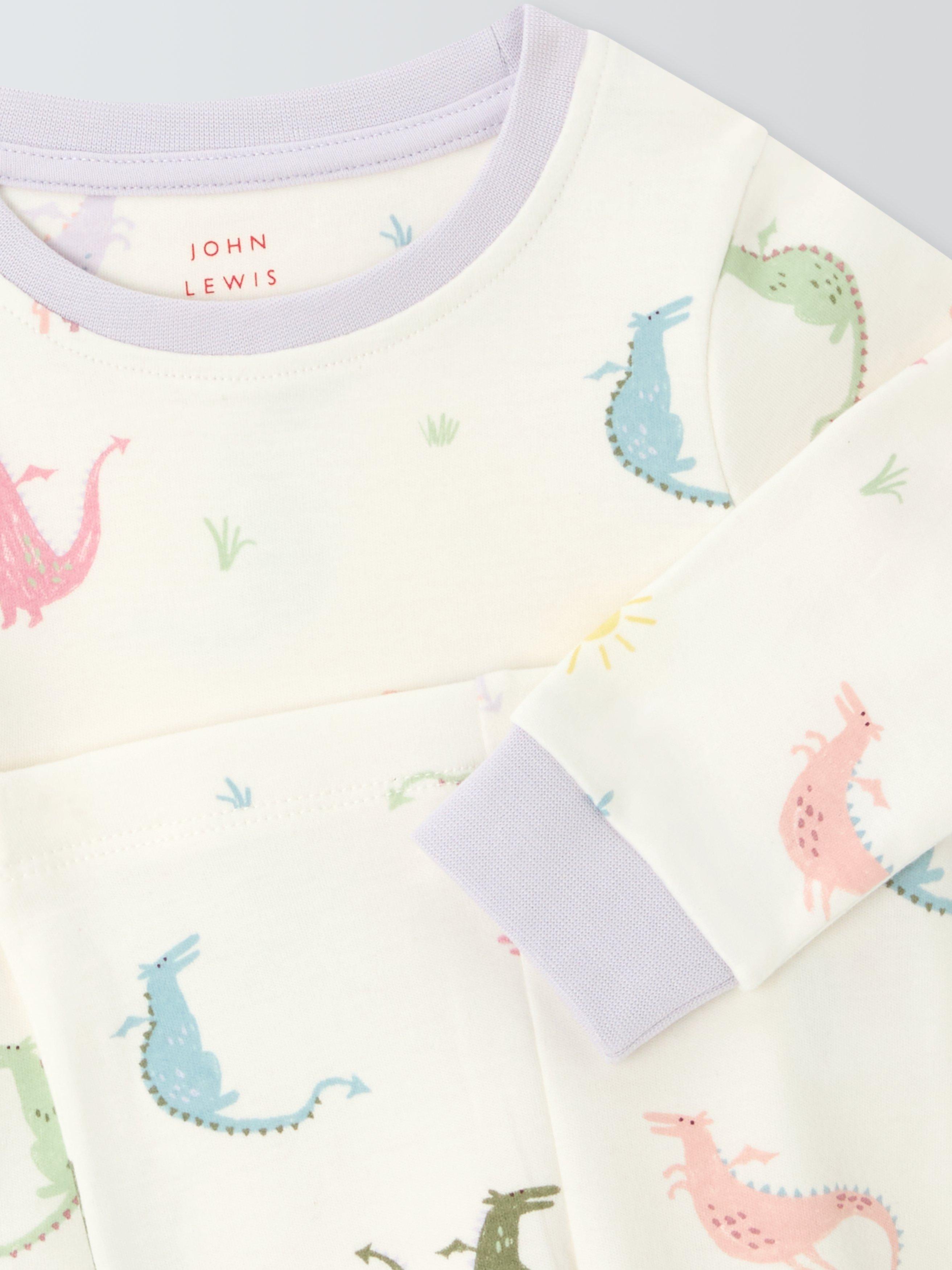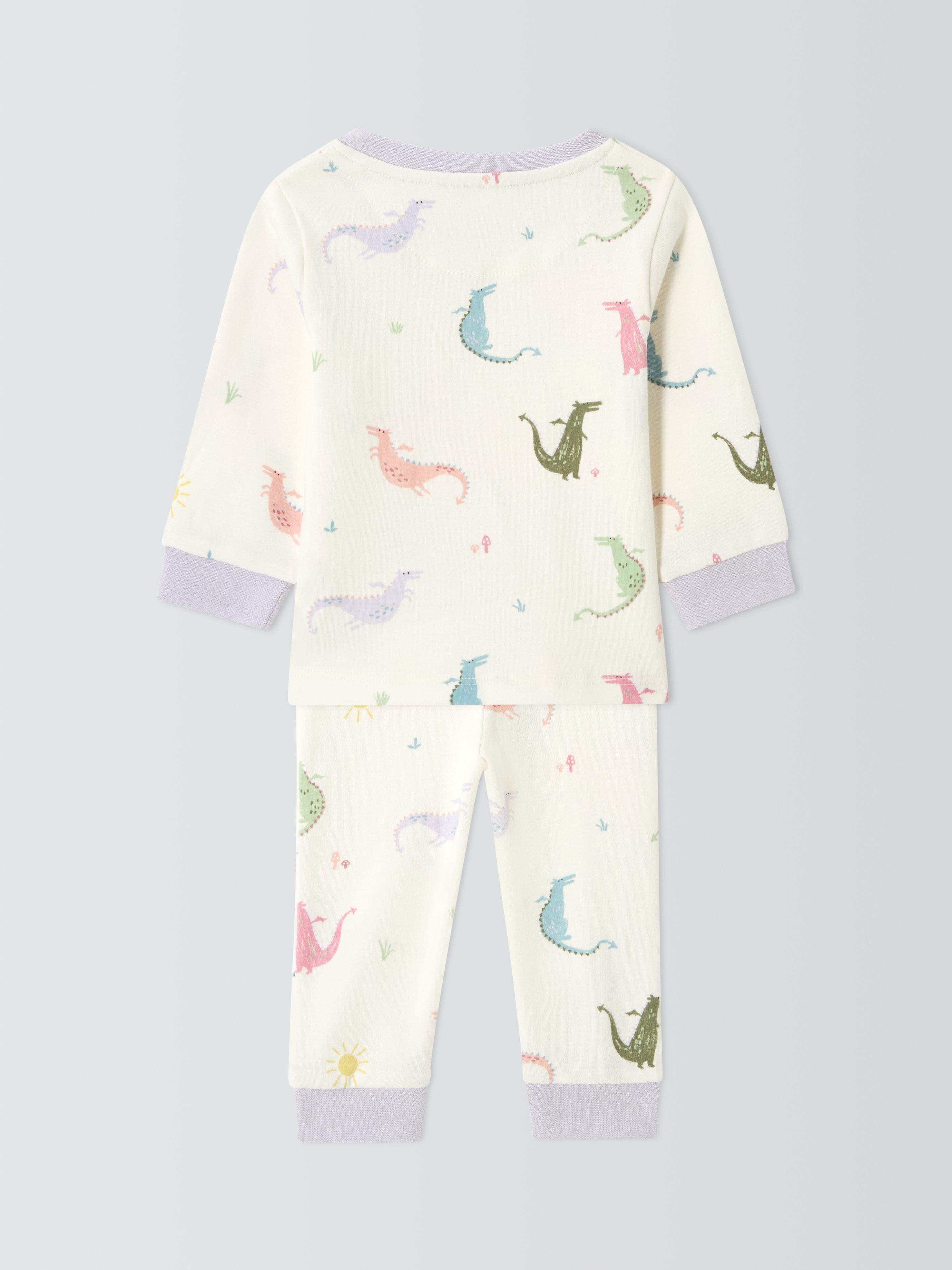 Cotton pyjamas featuring pastel-coloured dragons. Contrasting edging at the cuffs, hem and neckline add a finishing touch.