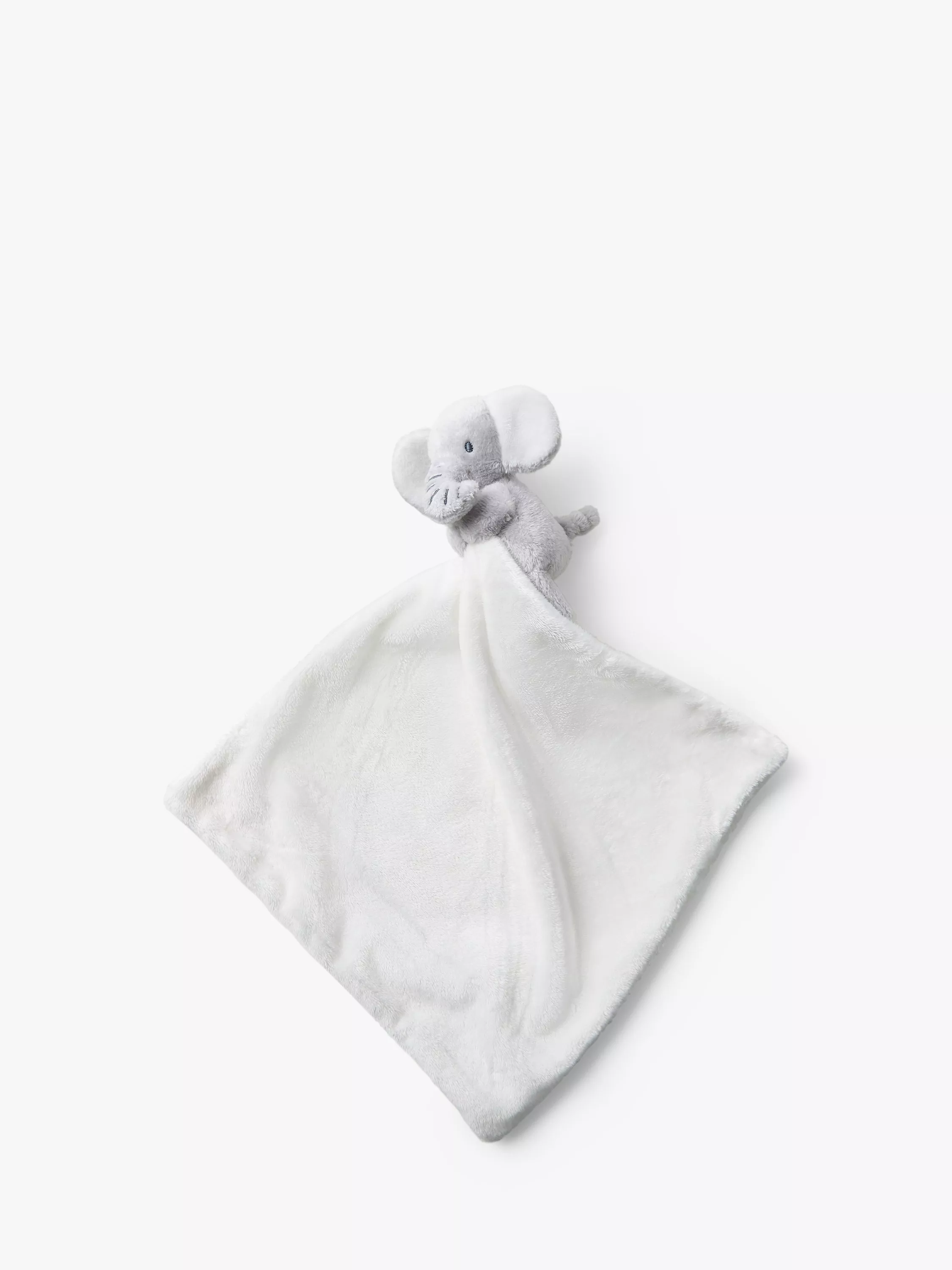 Elephant and blanket in one. This lovable Elephant clings tightly to his beloved blanket making a comforter to soothe your little one.