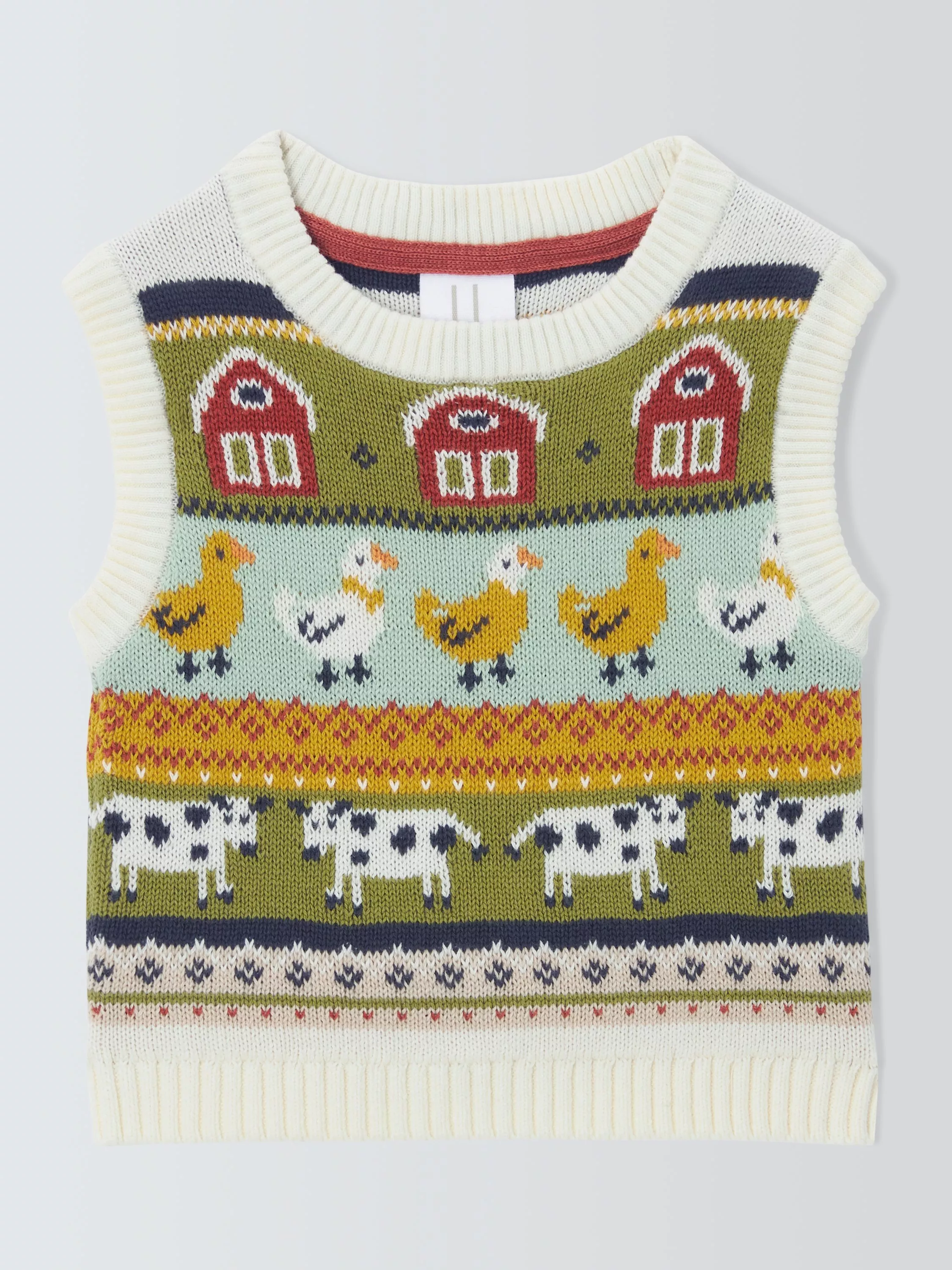 Made for layering, this 100% cotton knit vest has a colourful farmyward design. It's finished with ribbed trims.