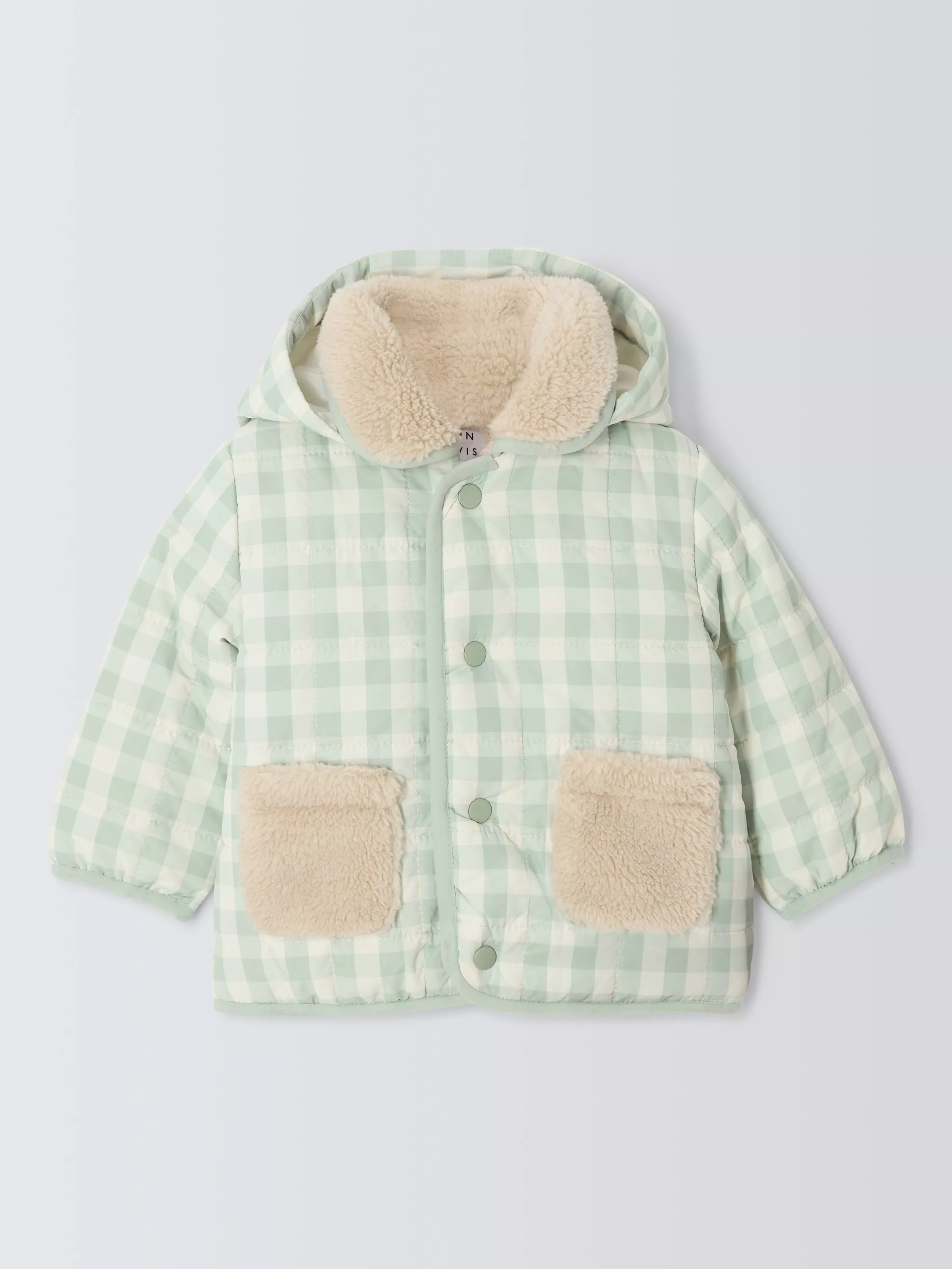 A hooded jacket with timeless gingham check. Lined with a Borg collar and matching pockets to add to its cosiness.