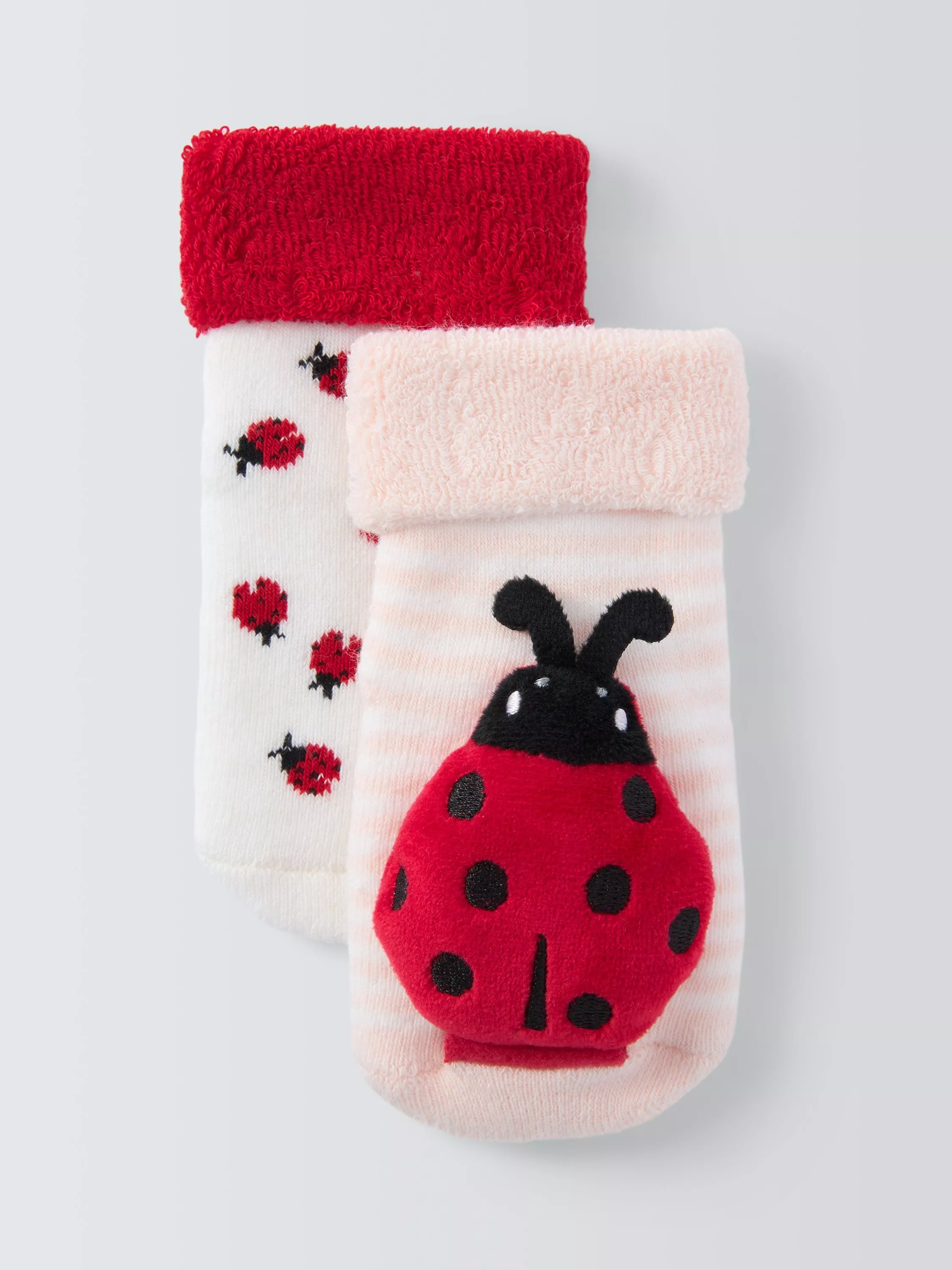 This pair of rattle socks are super cute and cotton rich for comfortable wear. They will also help baby find their feet.