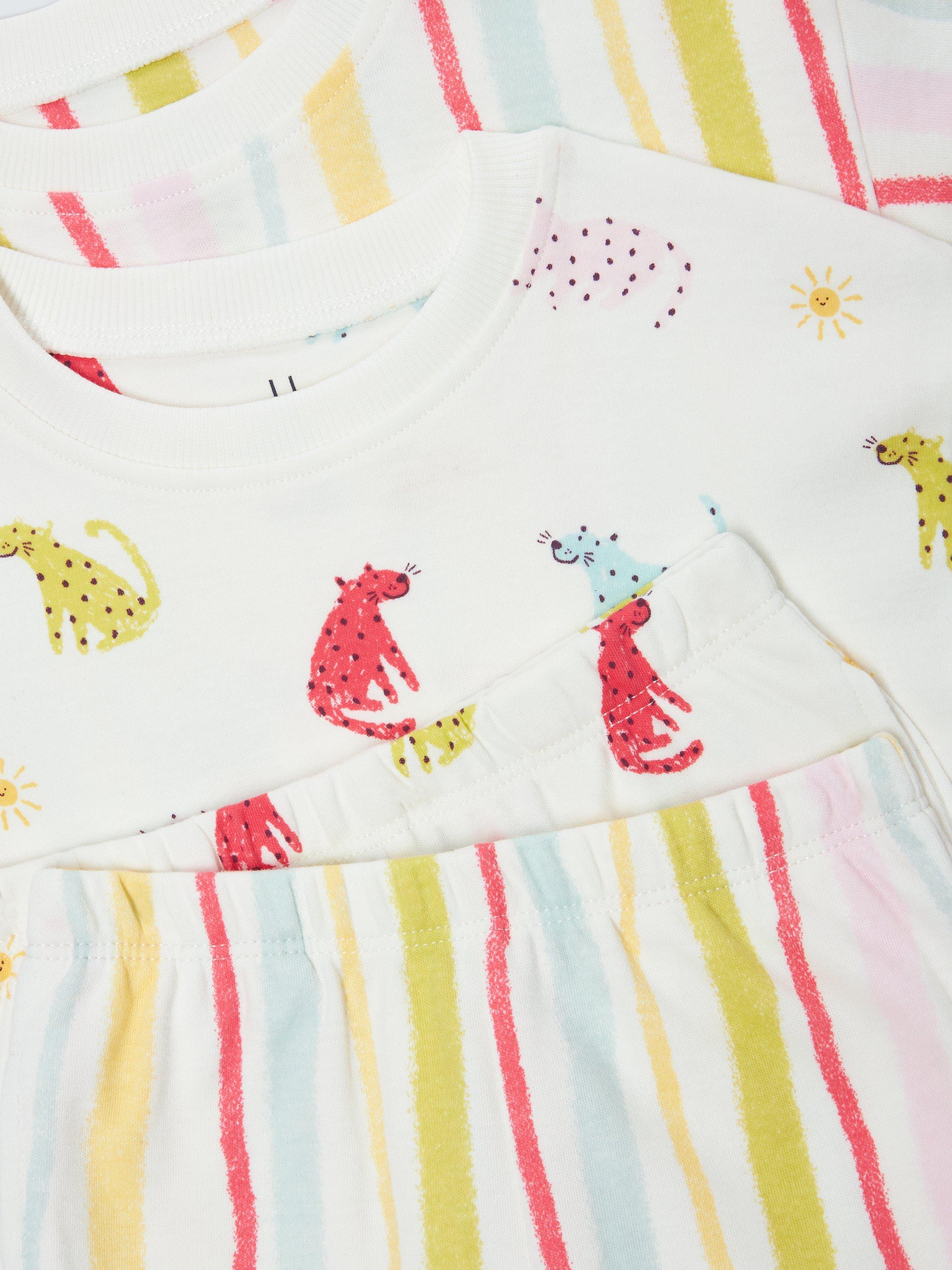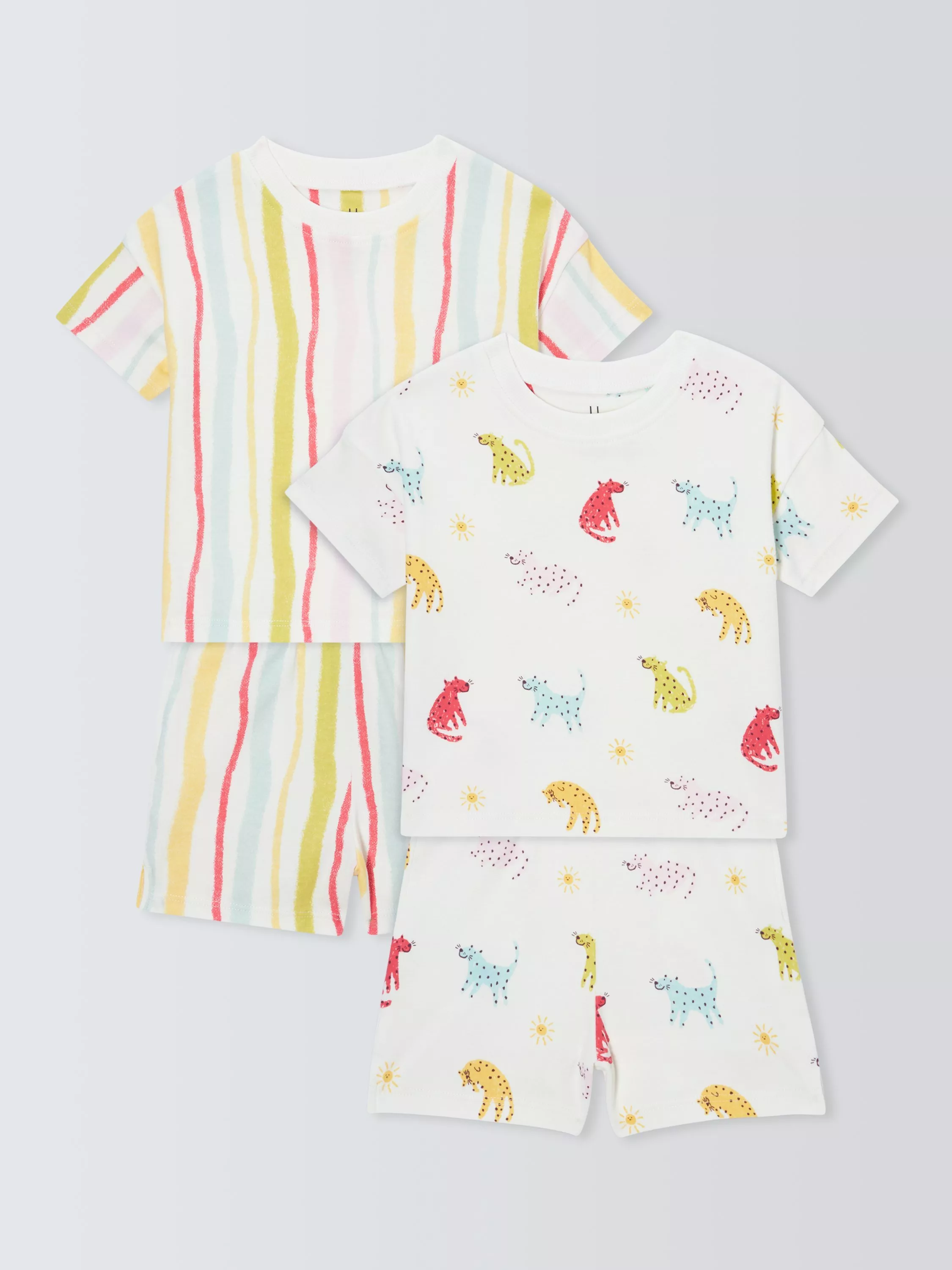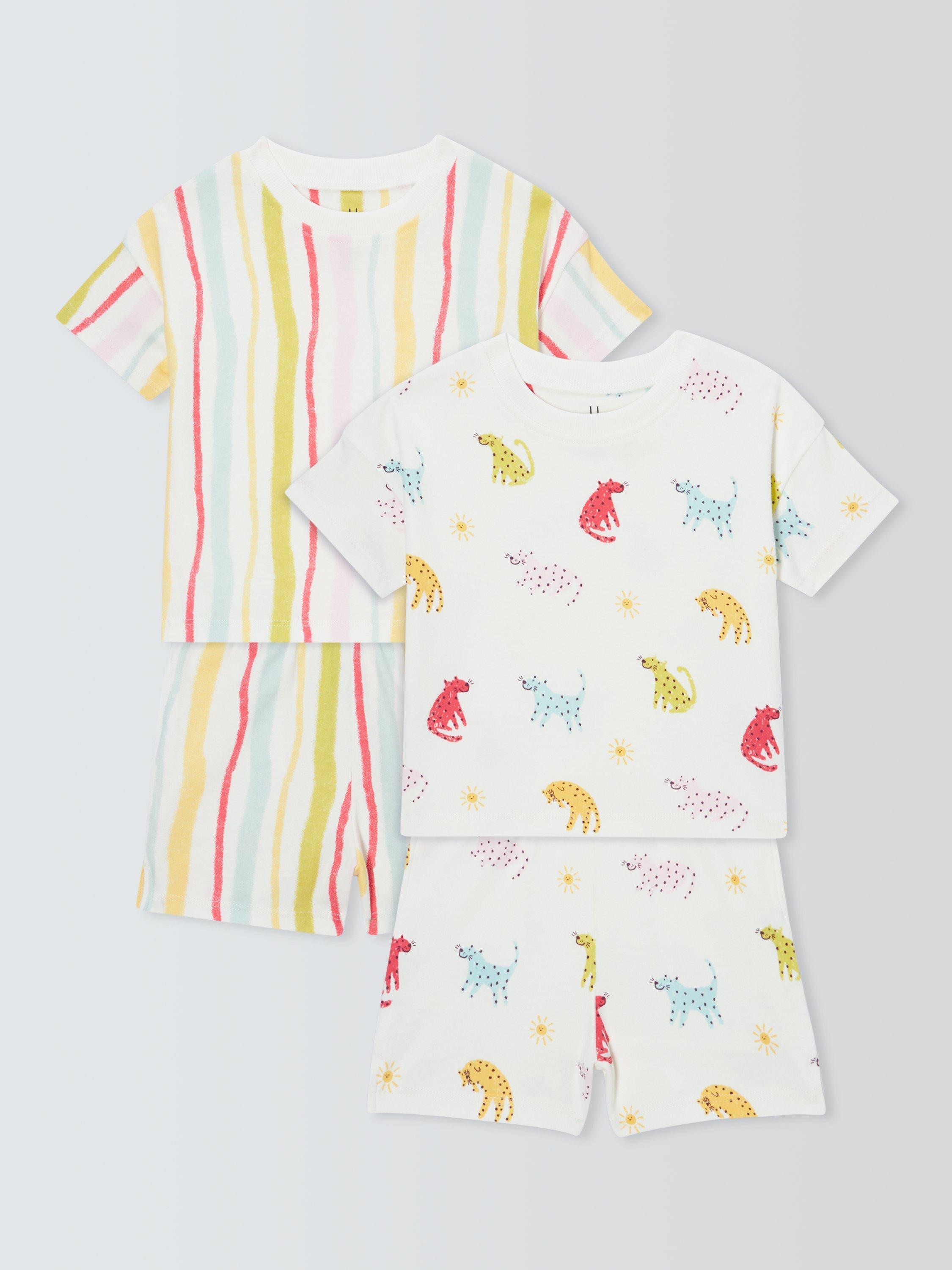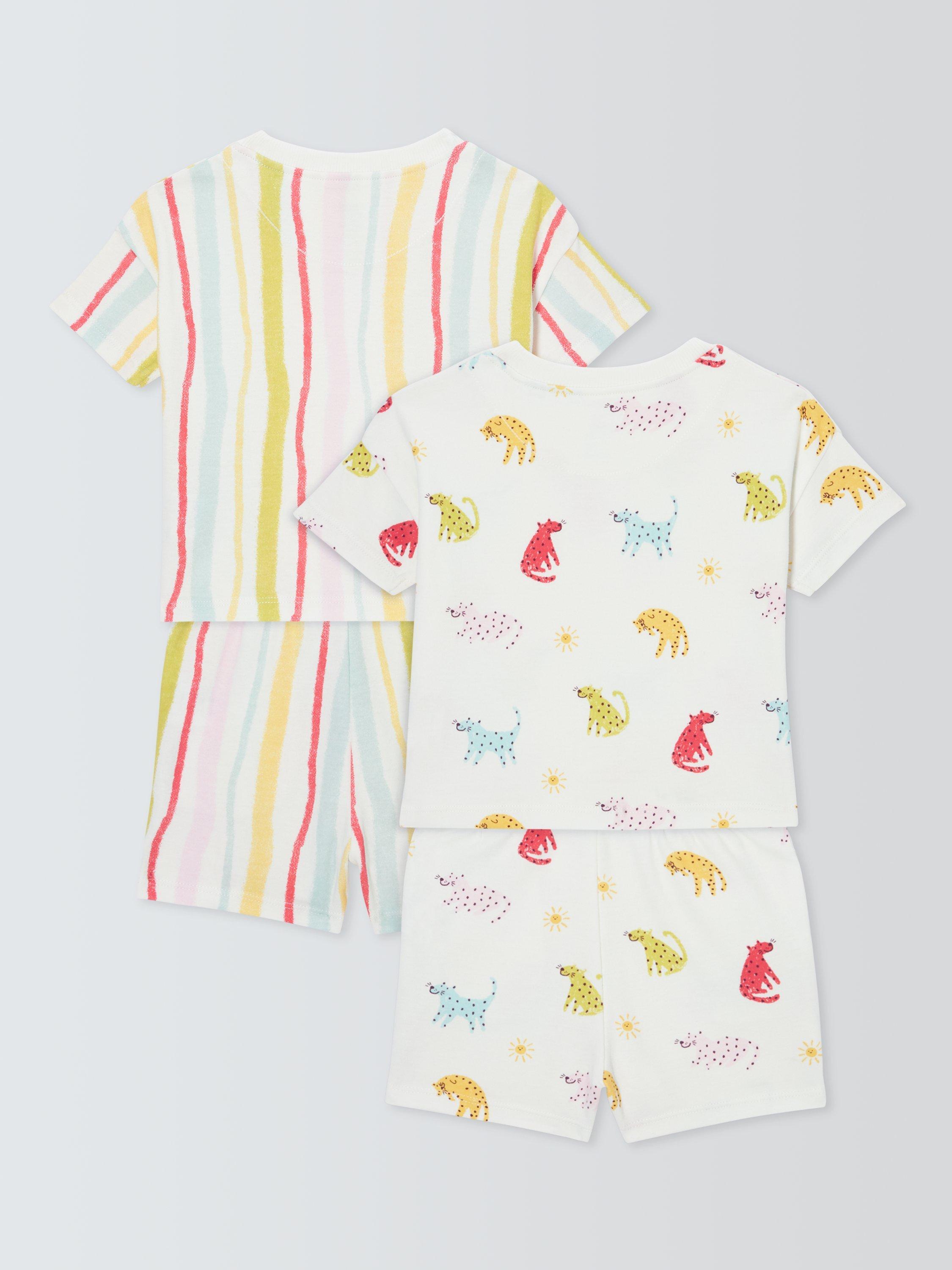 John LewisBaby Leopards Short Pyjamas, Pack of 2, White Multi