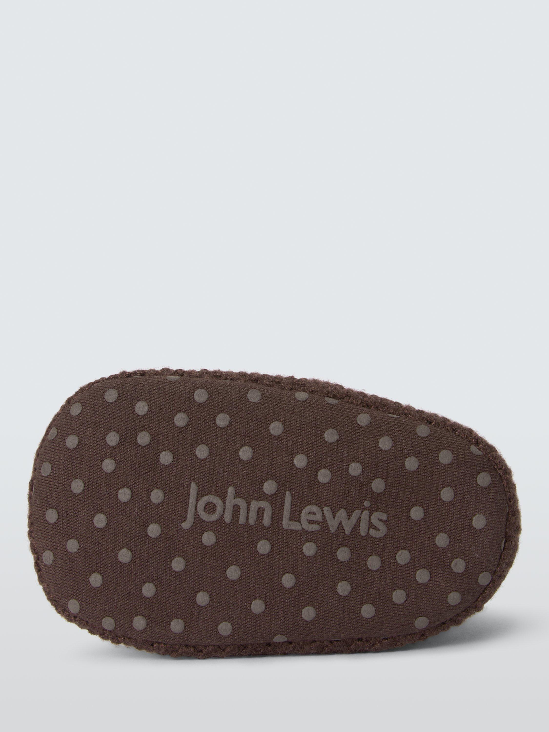 Soft and cosy knitted booties, with sock tops, a sweet “little one” slogan and button details.