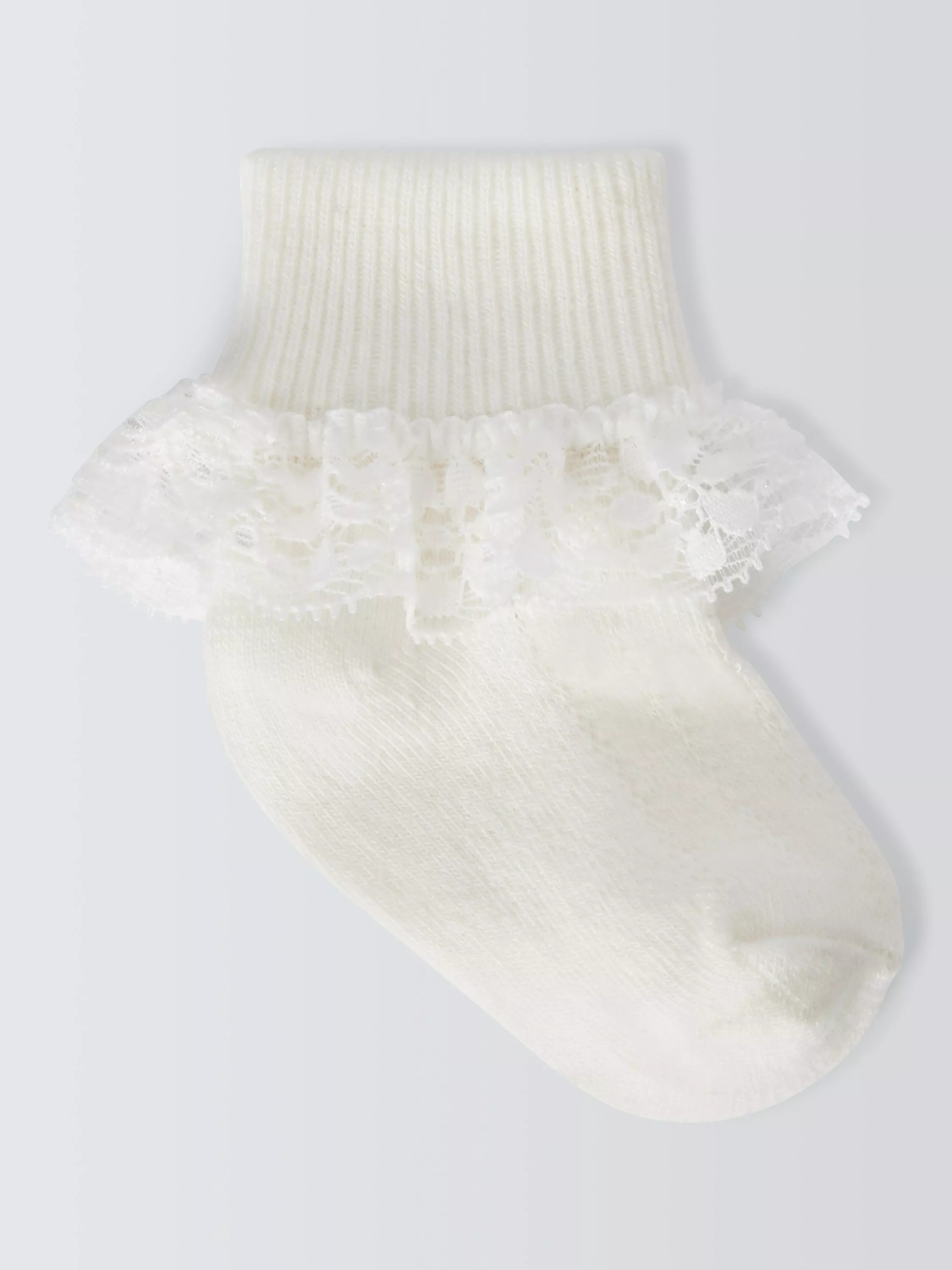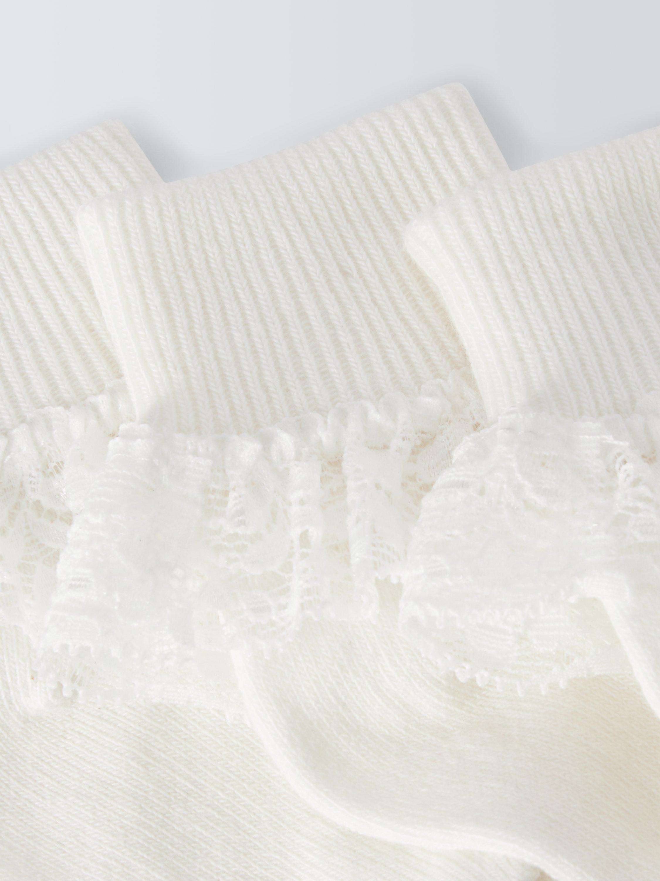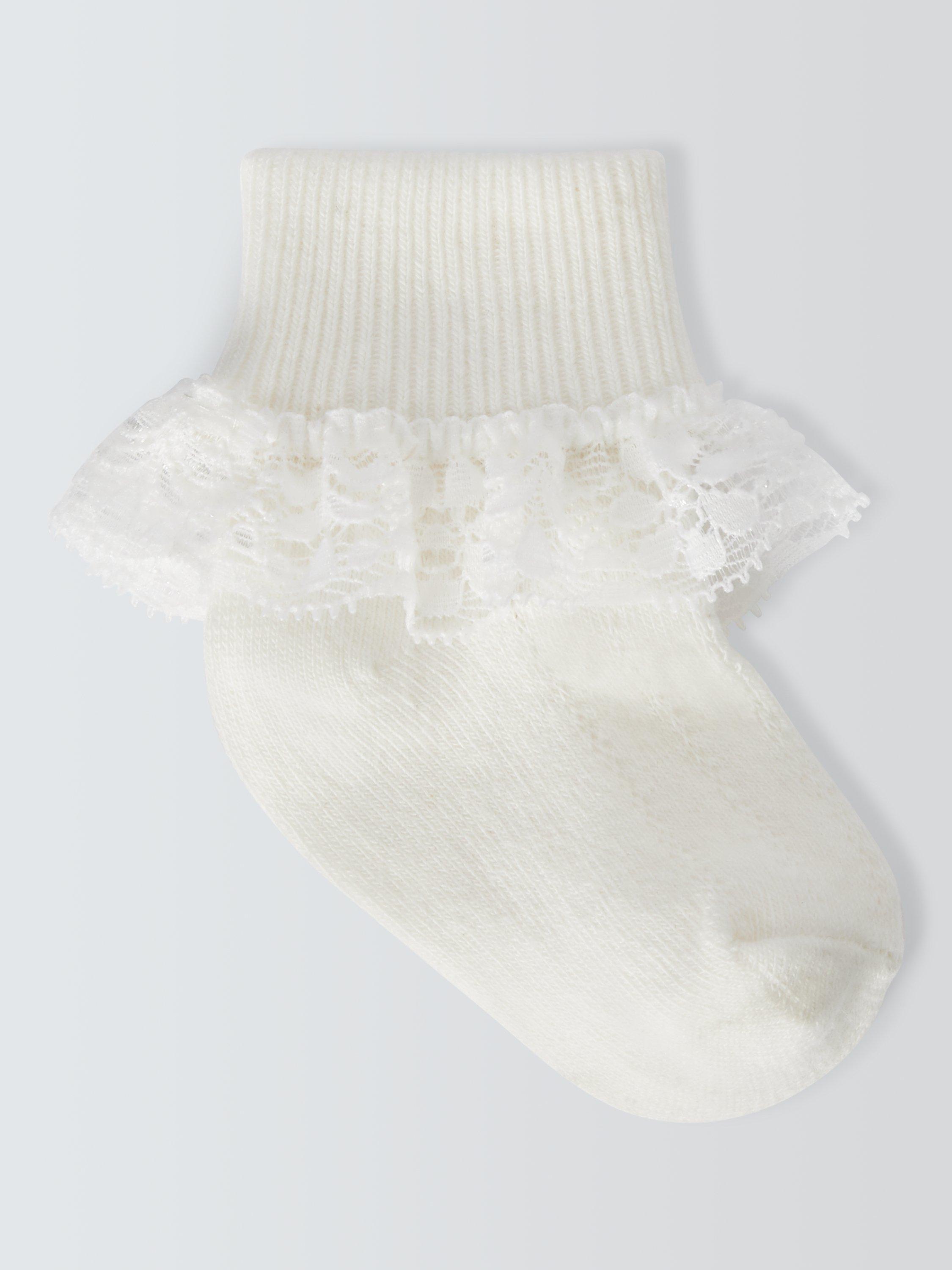 Keep baby's tootsies looking cute with this pack of three lace foldover socks from us. Made from a soft cotton blend with pretty scalloped lace edging, they're machine washable for easy laundering.