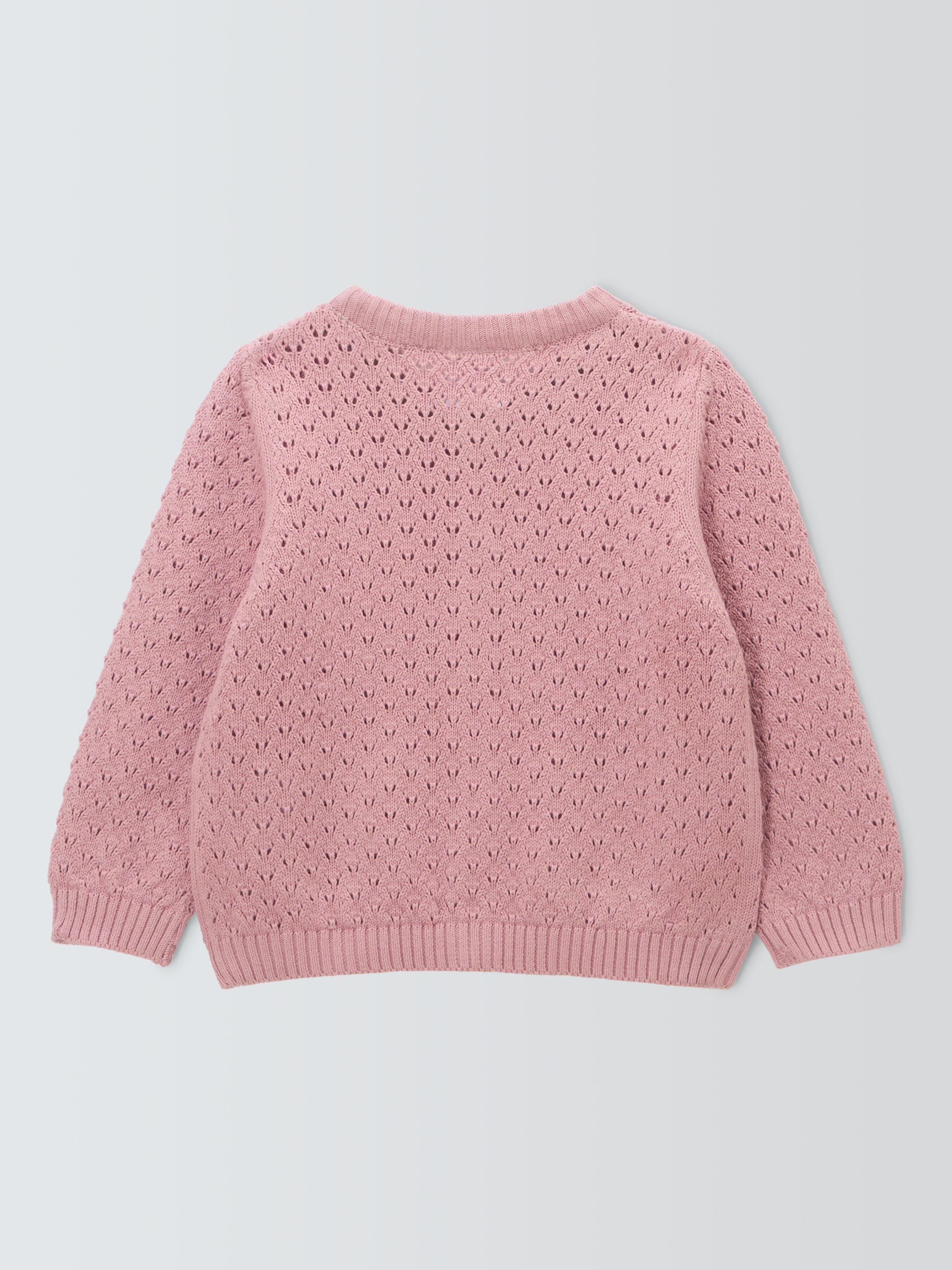 Knitted from pure cotton, this sweet cardigan has intricate pointelle detailing and a ribbed neckline, cuffs and hem to keep the cold out. It's an ideal layering piece for baby's first wardrobe.