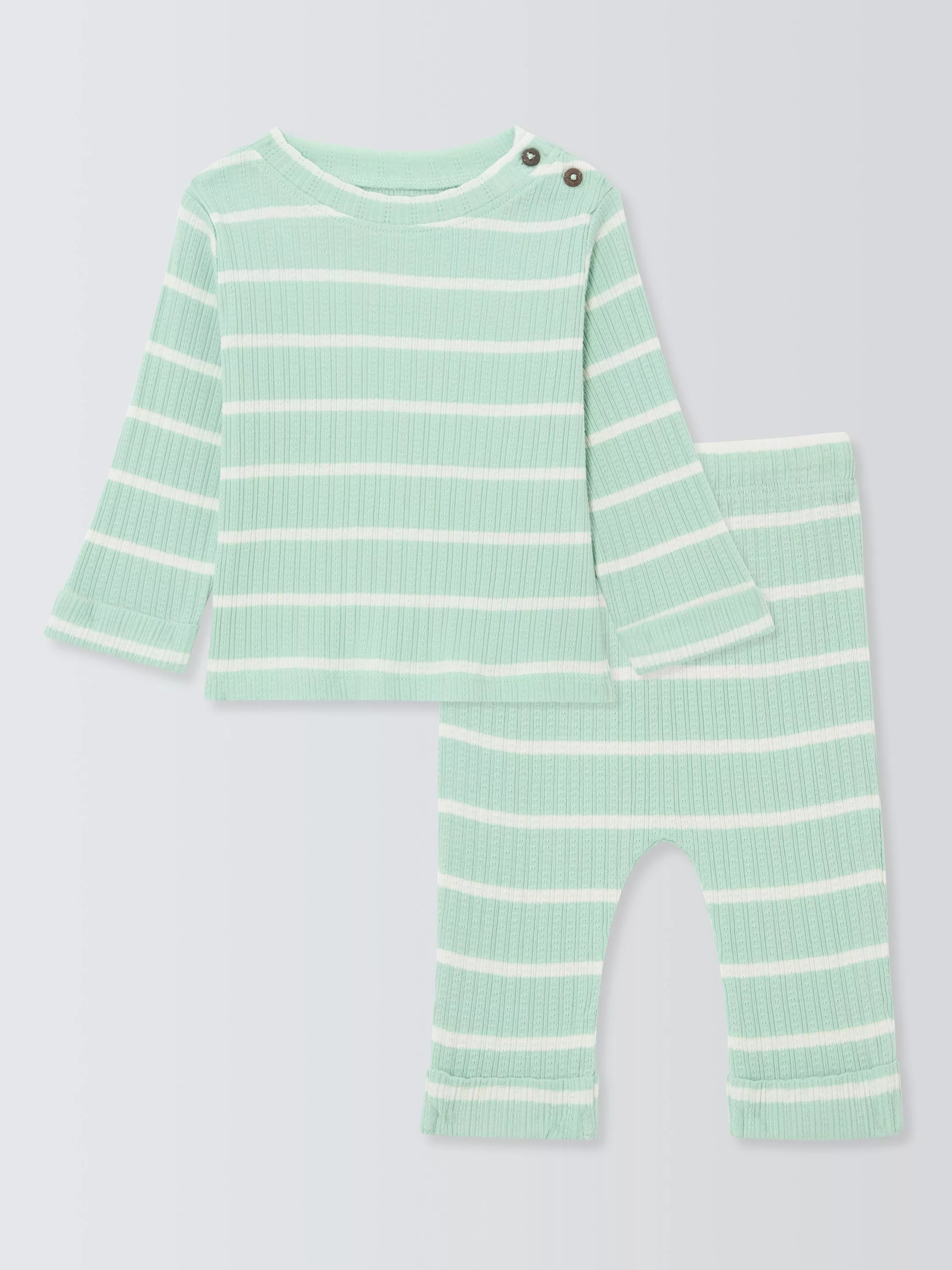 Pure cotton pyjamas with a simple stripe design and pretty pointelle needlework throughout. Buttons at the shoulder for easy dressing and an elasticated waistband with a drawstring for a snug fit.