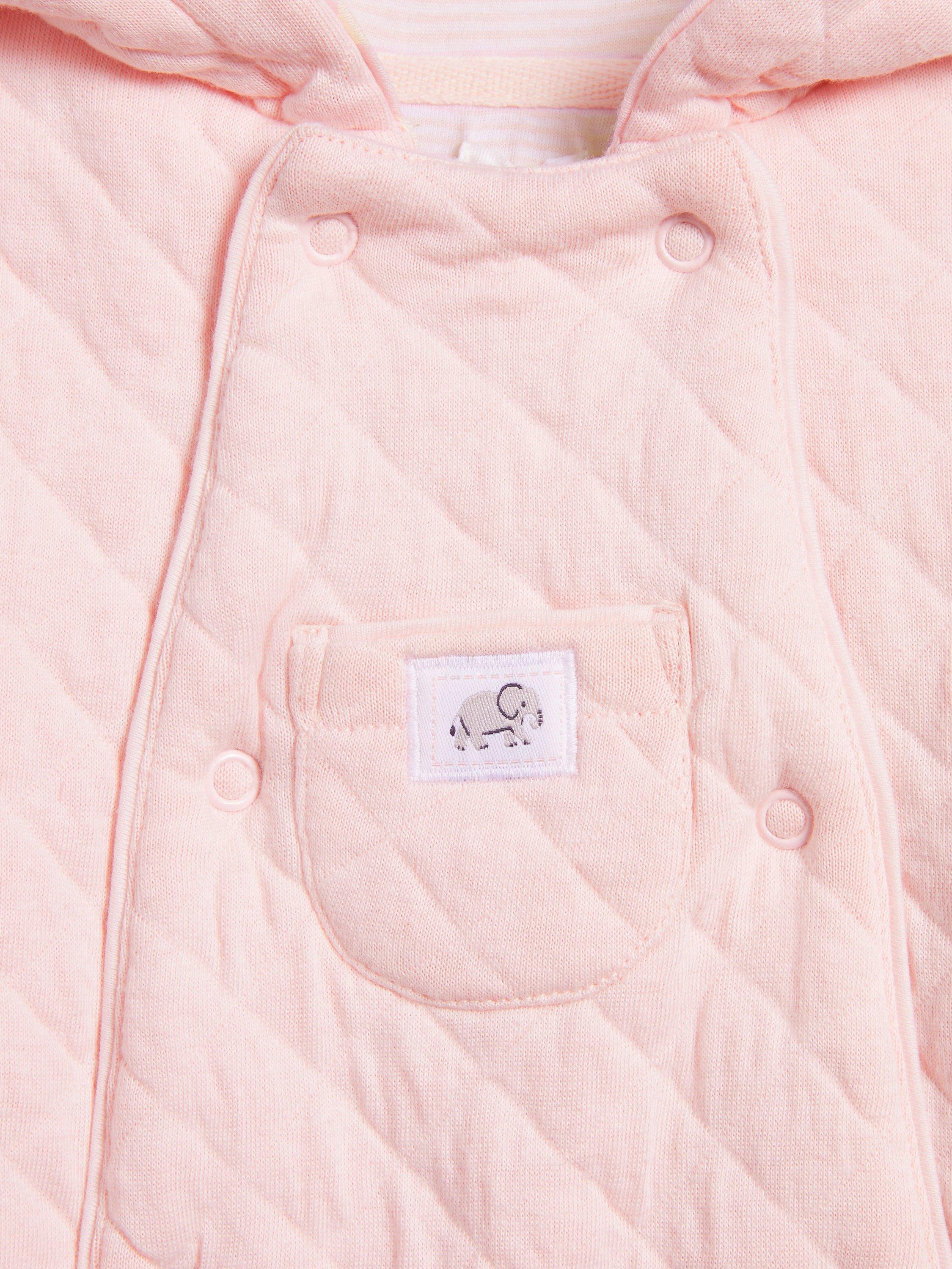 Wrap baby up in this adorable pramsuit from our collection. Wadded for superior warmth, this all-in-one is made from a cotton-rich blend for a soft-against-the-skin feel. With a cute stripe print lining and pocket at the chest, it's easy to get on and off thanks to the popper fastenings down the front.