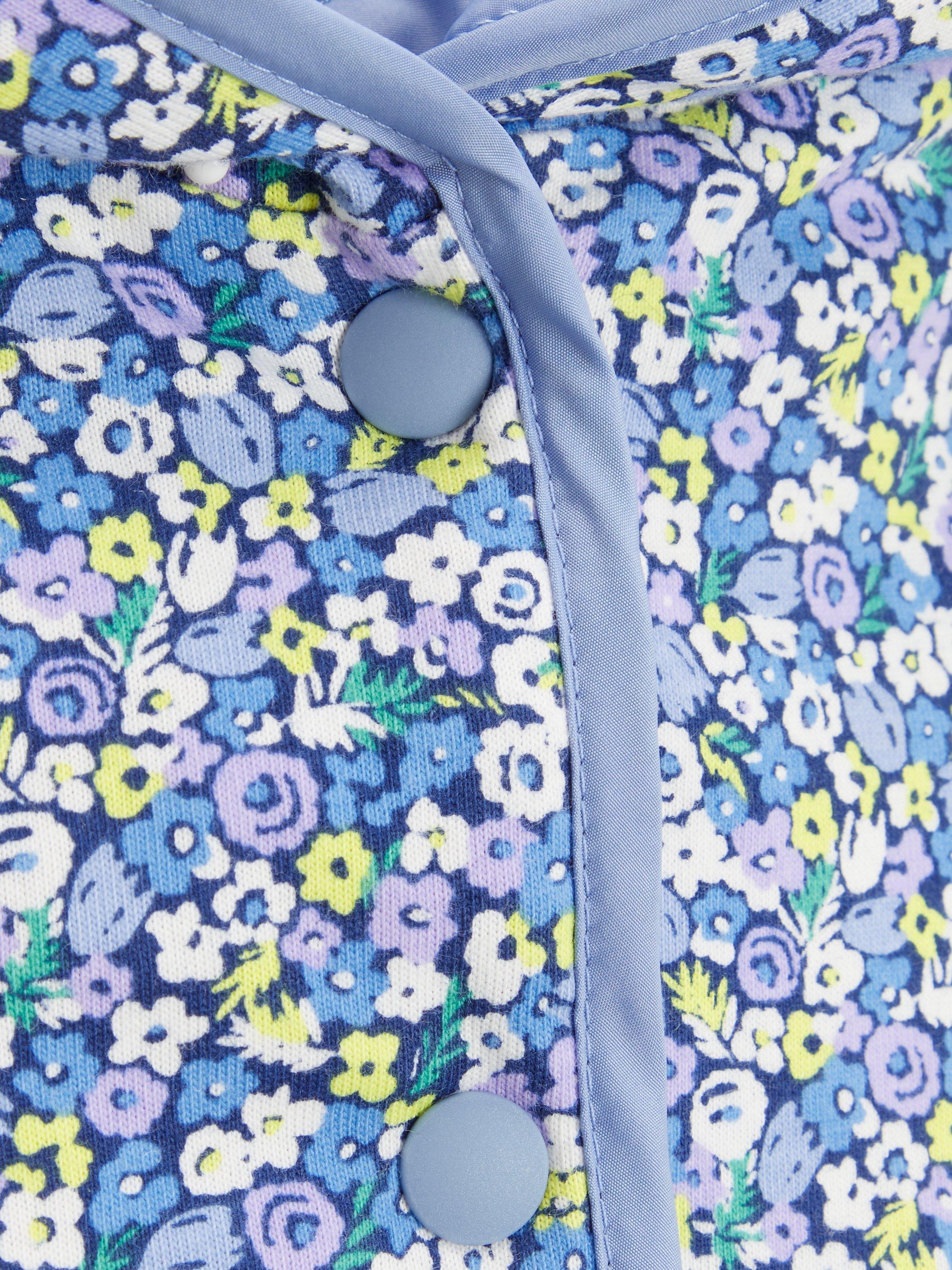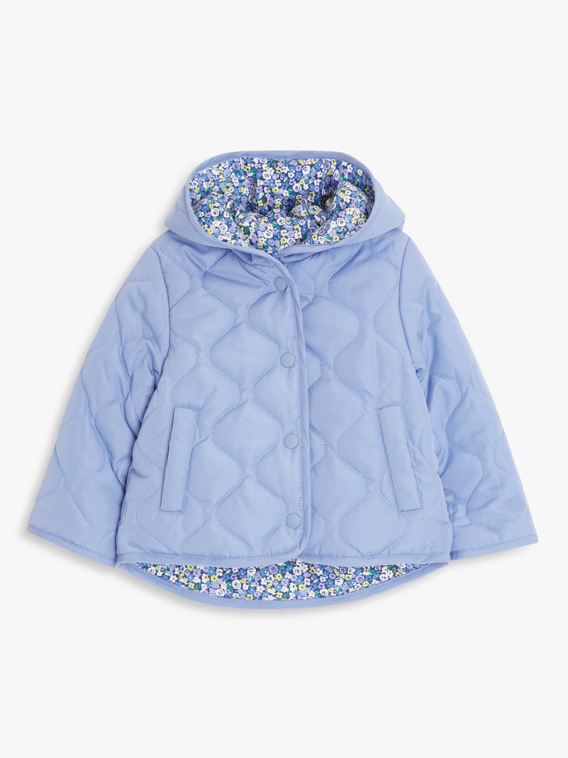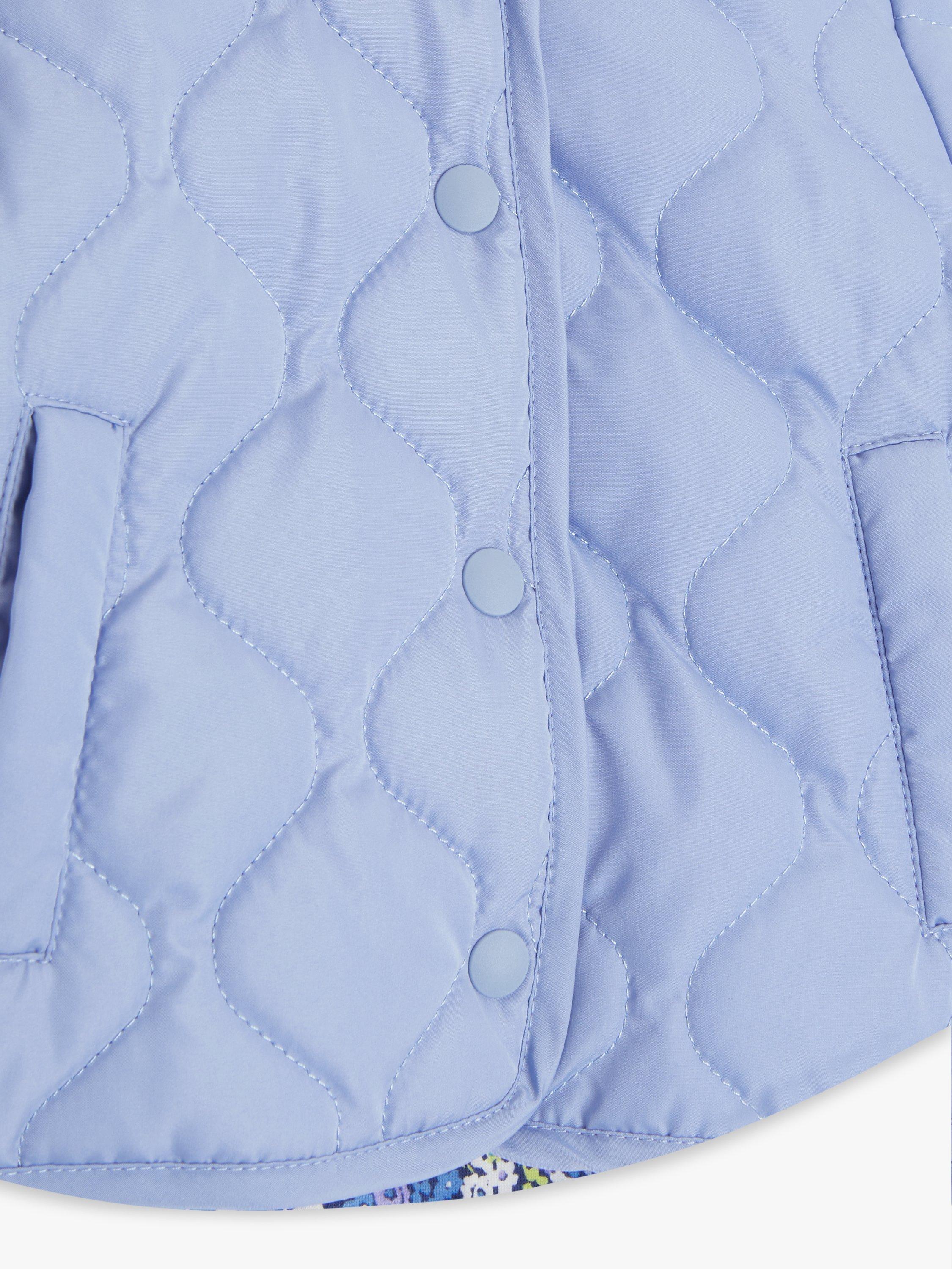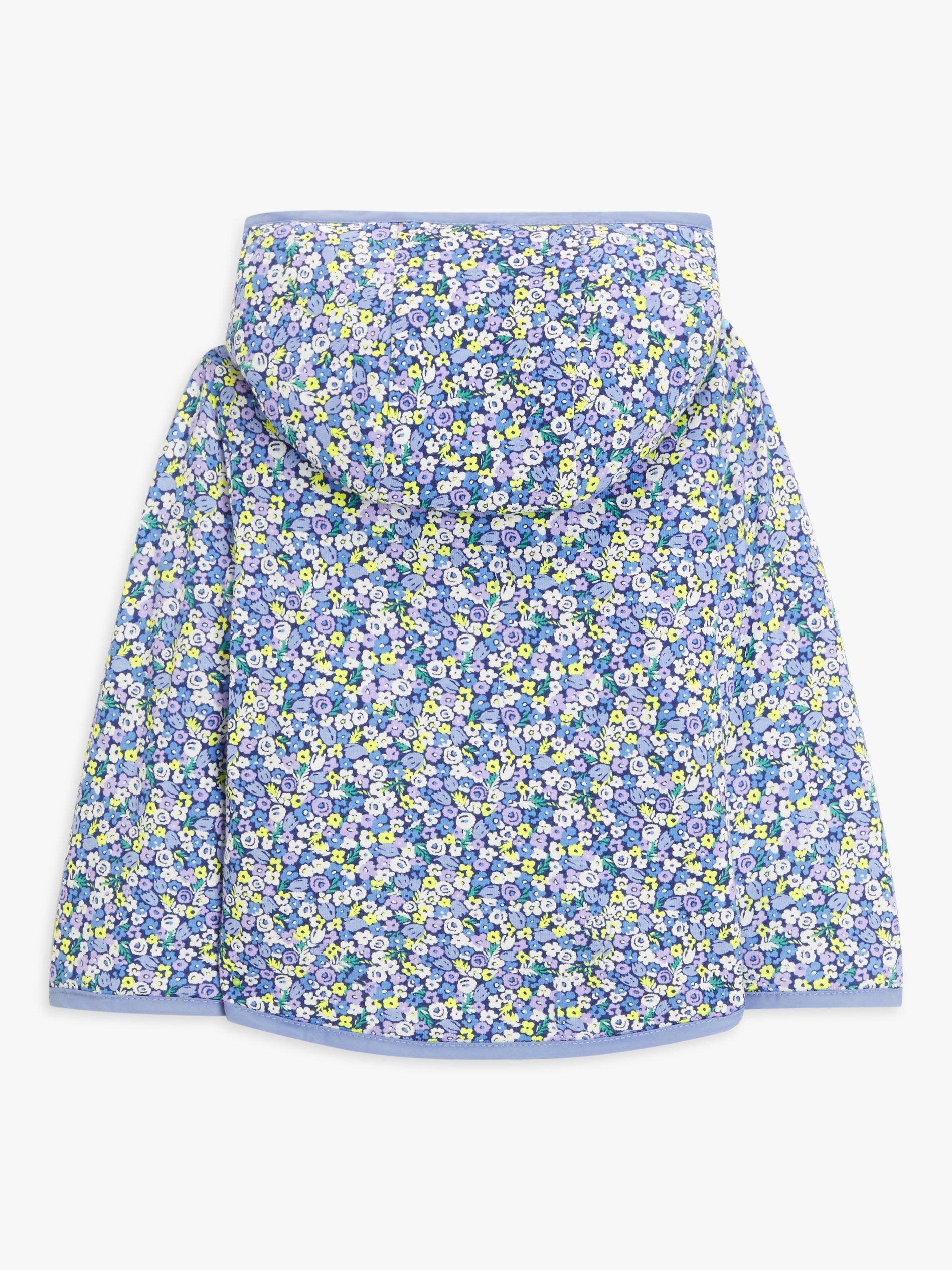 Keep your little one cosy and warm with this reversible quilted jacket from our collection. The practical piece doubles your little one's style with a floral print on one side and a solid dyed colour on the reverse. It is completed with a hood and two side pockets for keeping found treasures close to hand.