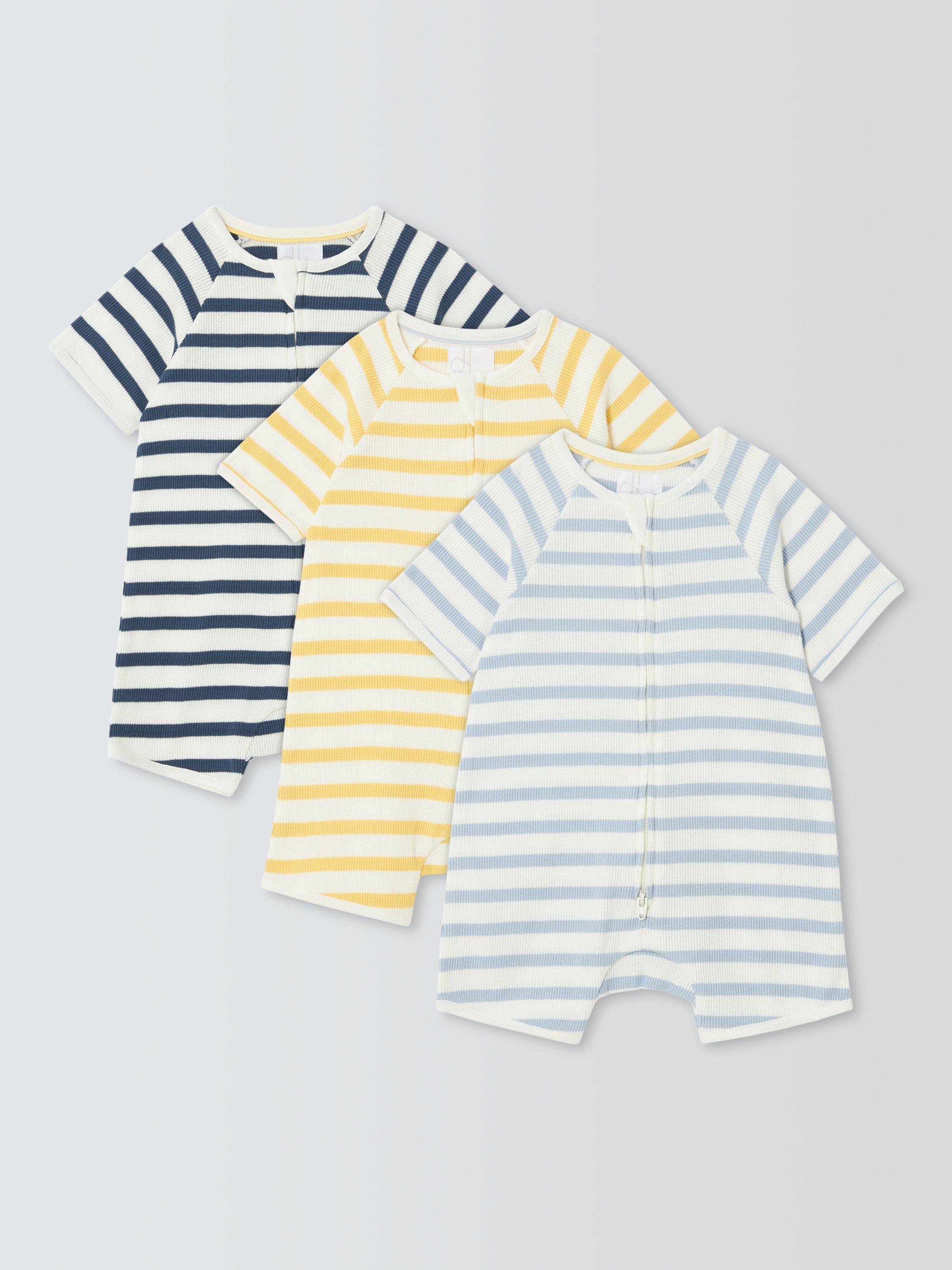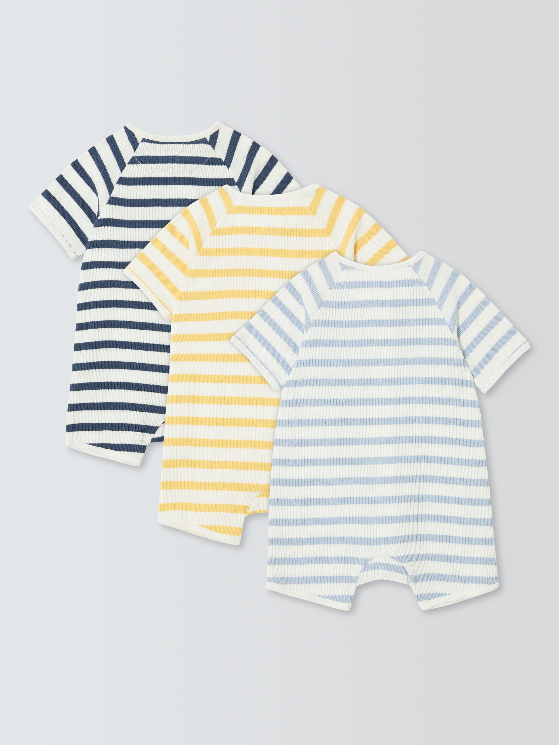 John LewisBaby Ribbed Stripe Rompers, Pack of 3, Multi