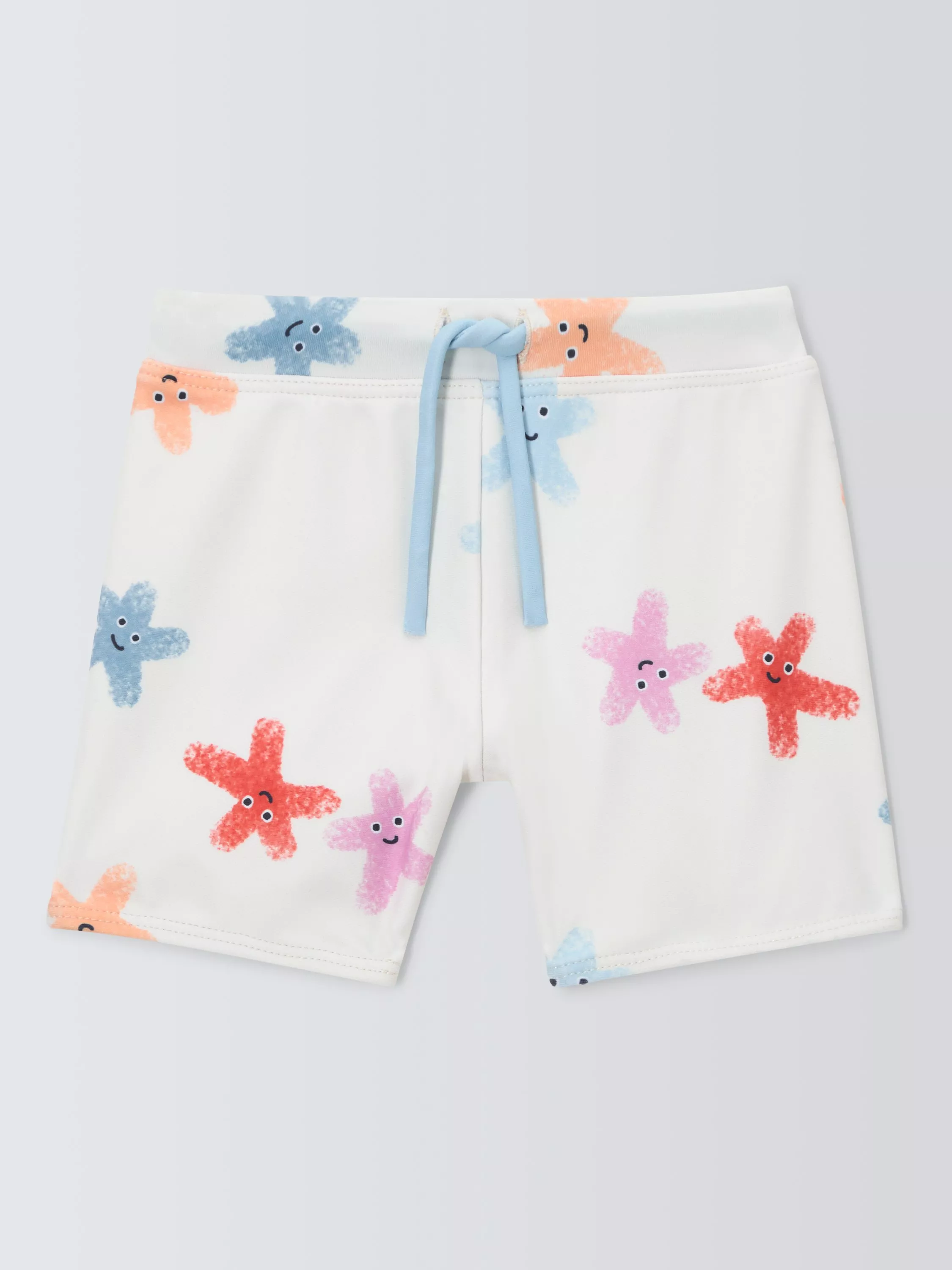 Baby swimming trunks with a starfish all over print and drawcord at the waistband. Lined in 100% recycled polyester mesh.