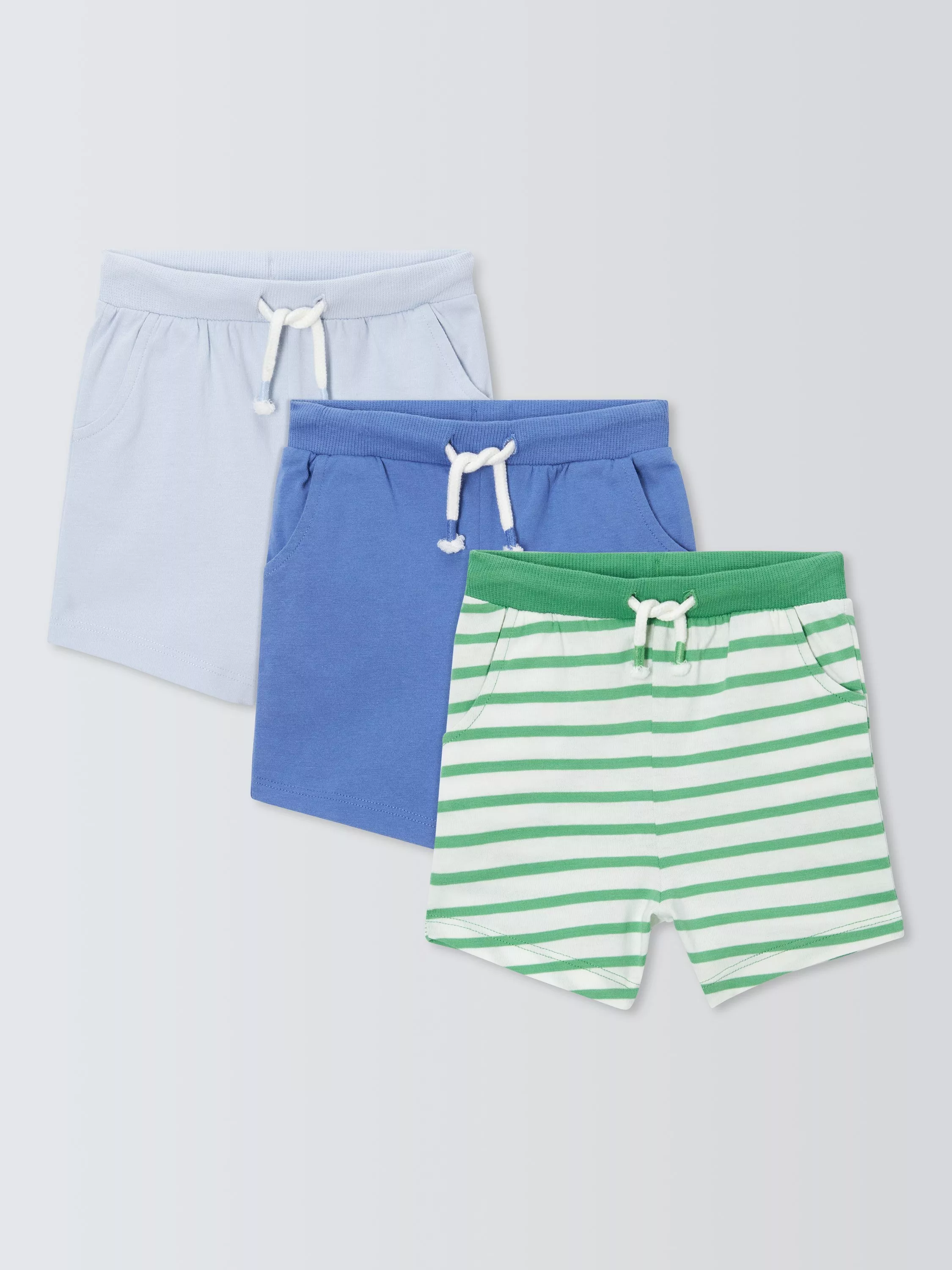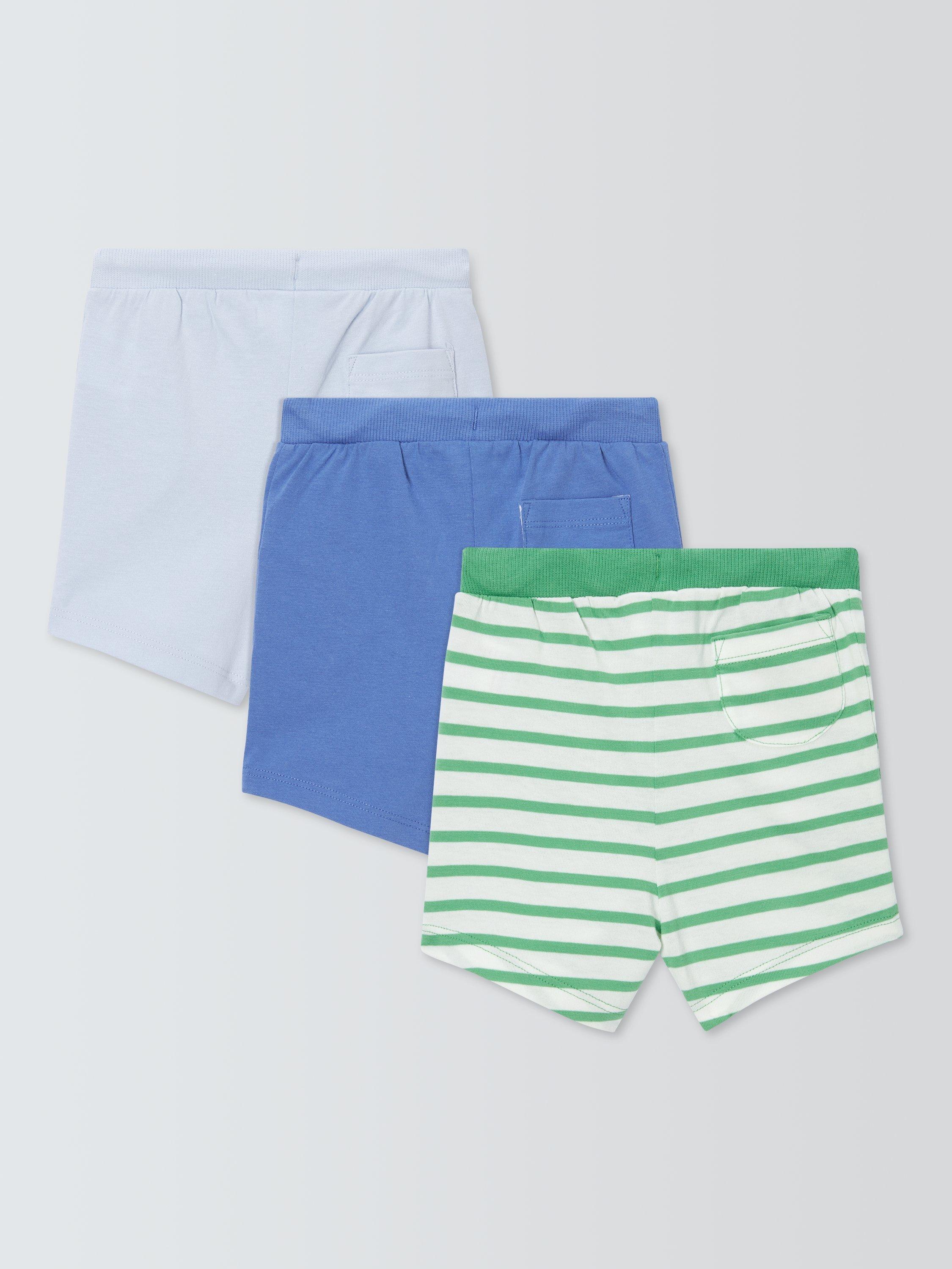 John LewisBaby Stripe & Plain Mix Shorts, Pack of 3, Multi