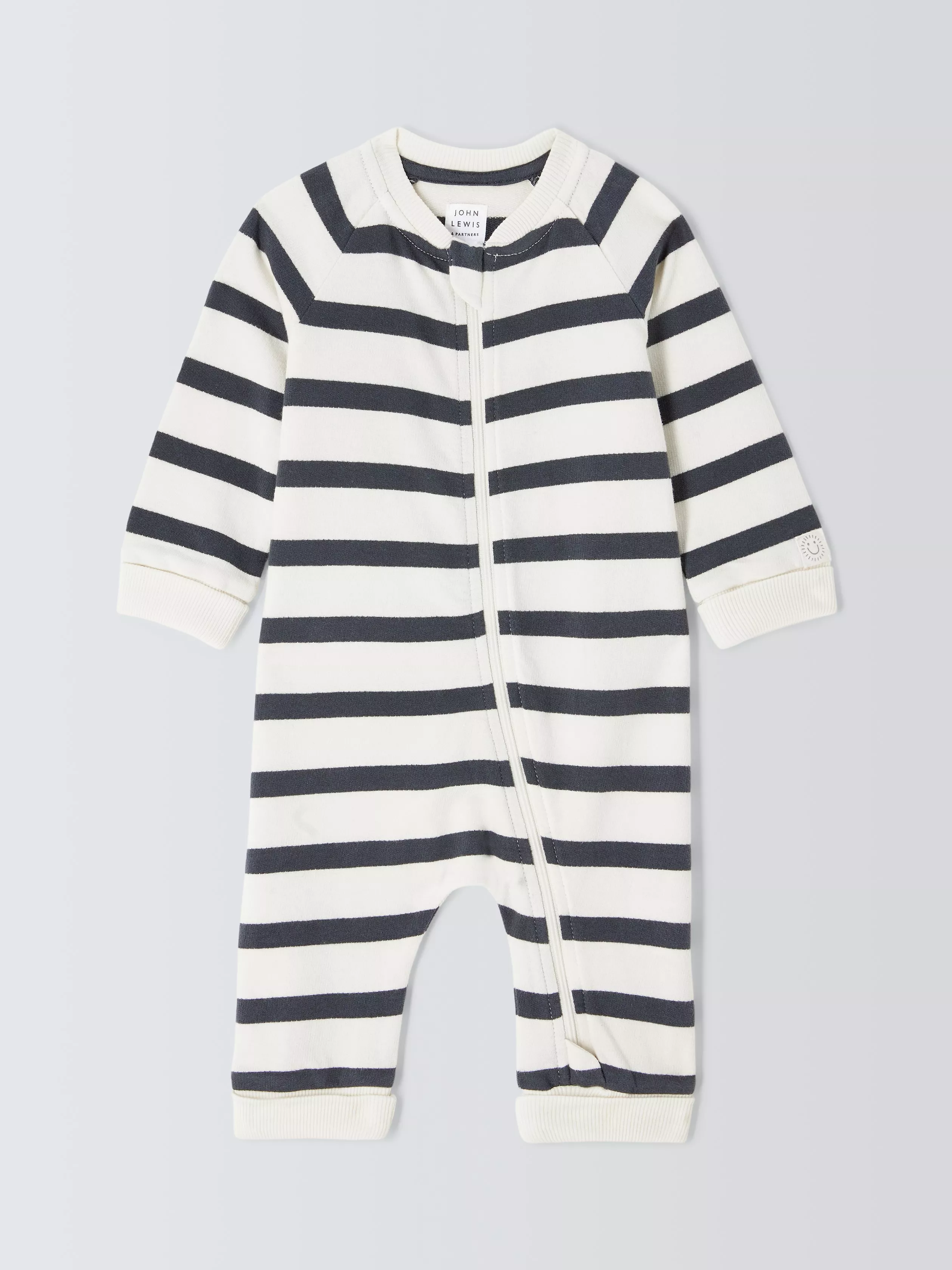 With classic stripes, this romper is made from 100% cotton so it's always gentle on delicate skin and comfy to wear. The ribbed cuffs help keep the cold out while the two-way zip allows for easy changes.