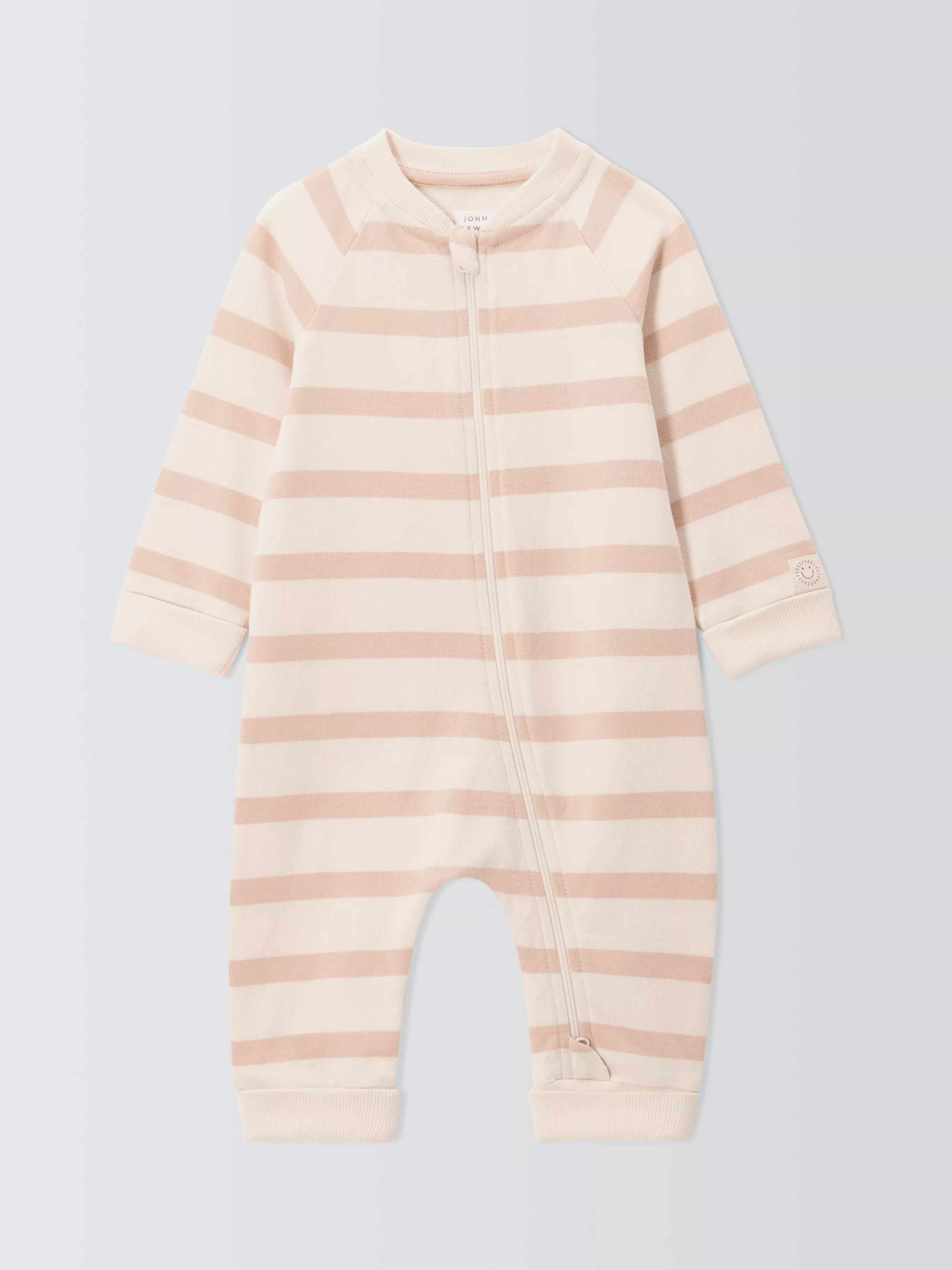 With classic stripes, this romper is made from 100% cotton so it's always gentle on delicate skin and comfy to wear. The ribbed cuffs help keep the cold out while the two-way zip allows for easy changes.