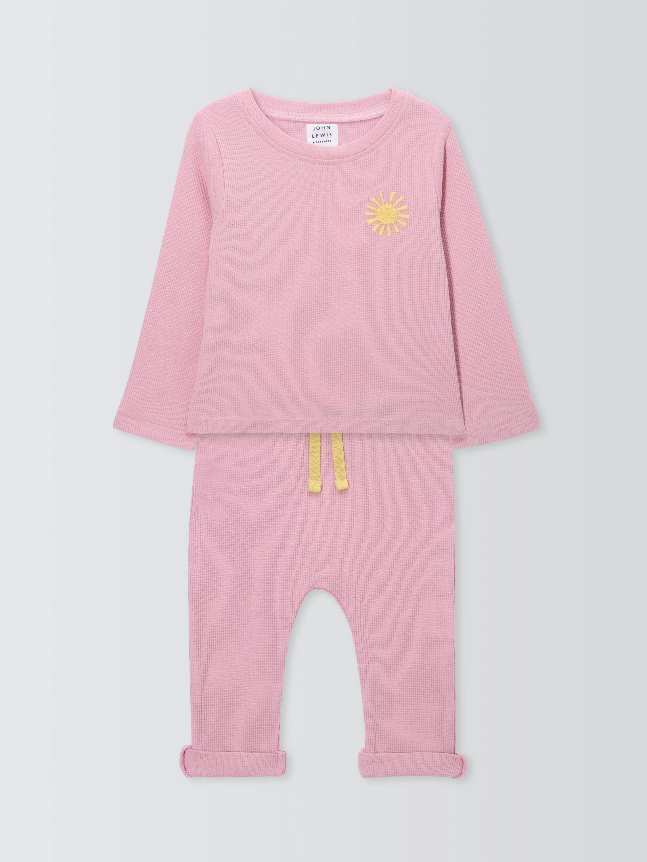 Made from pure cotton these waffle pyjamas feature an embroidered sunshine at the chest, drawstring waist and turned-up ankles.