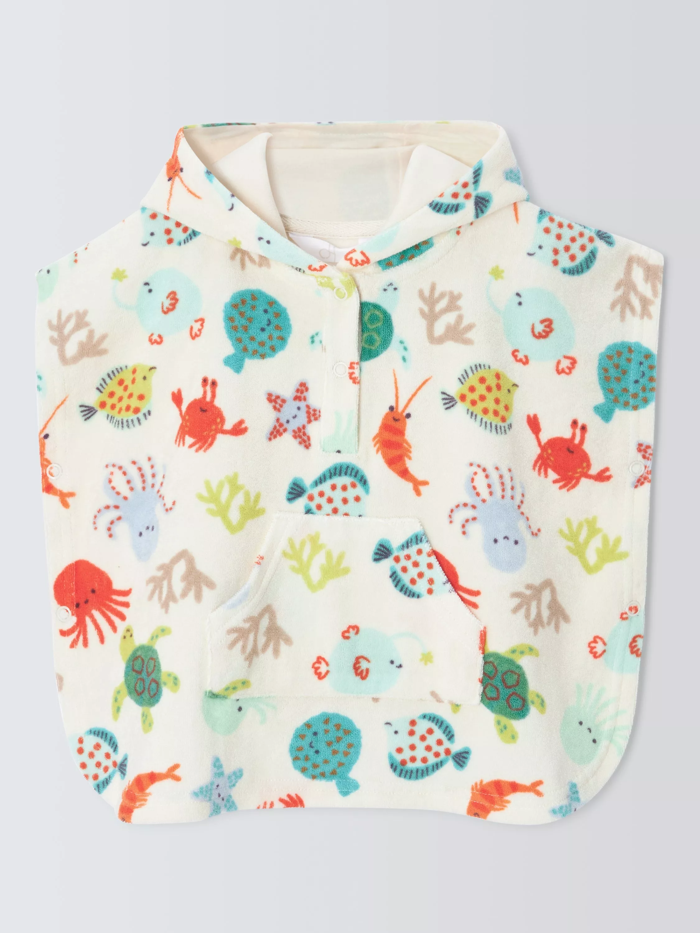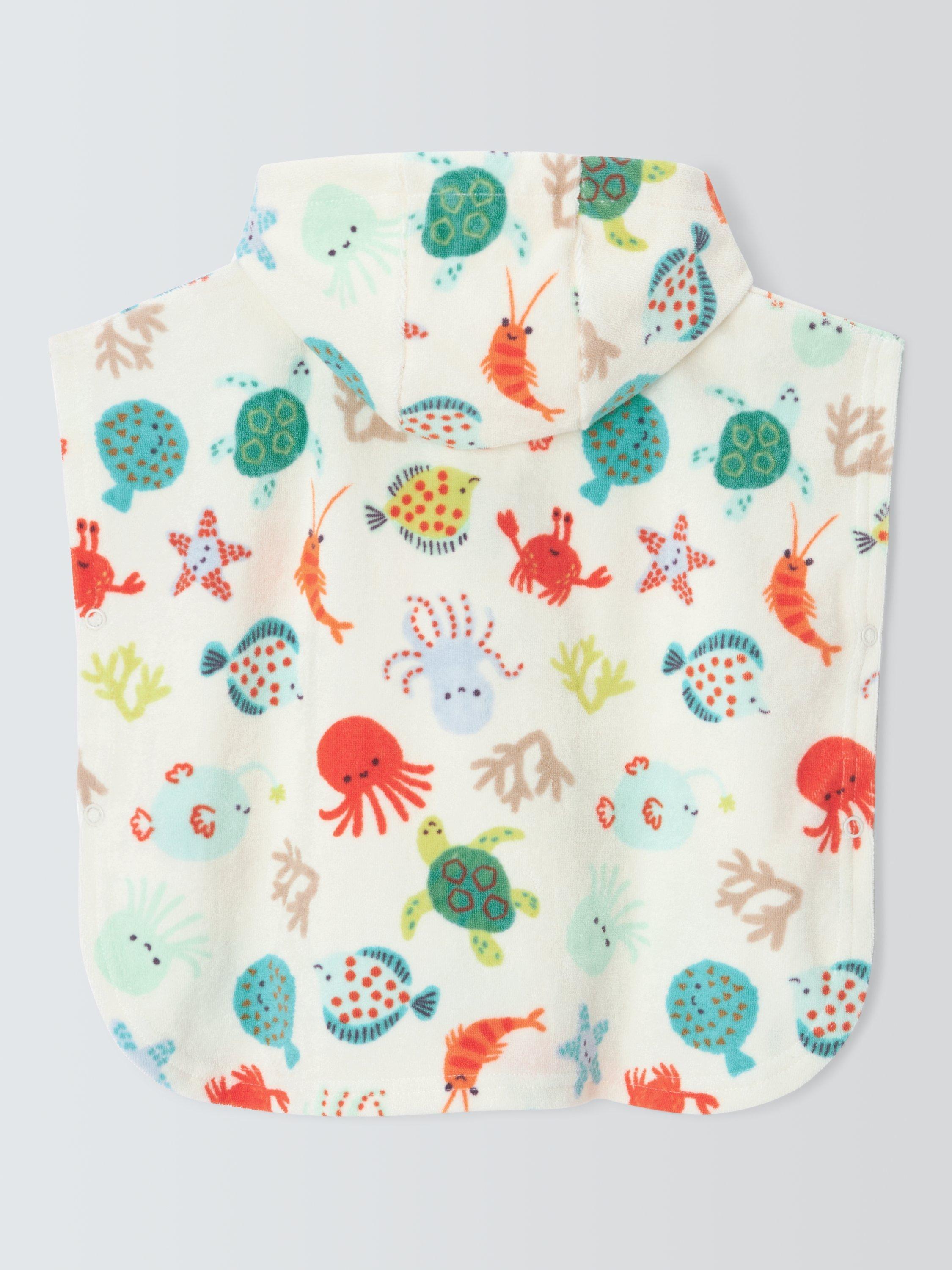 John LewisBaby Under the Sea Hooded Towel Poncho, White Multi