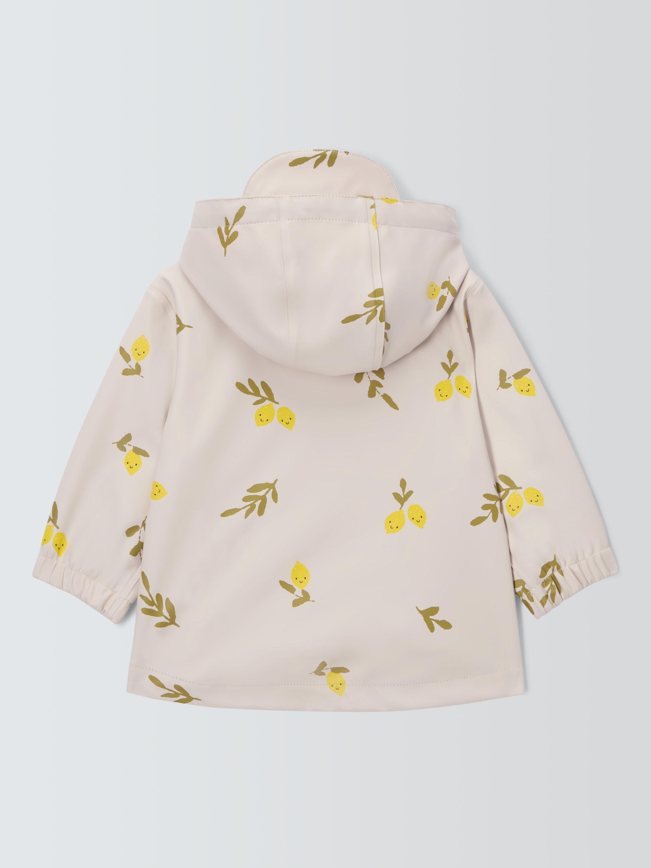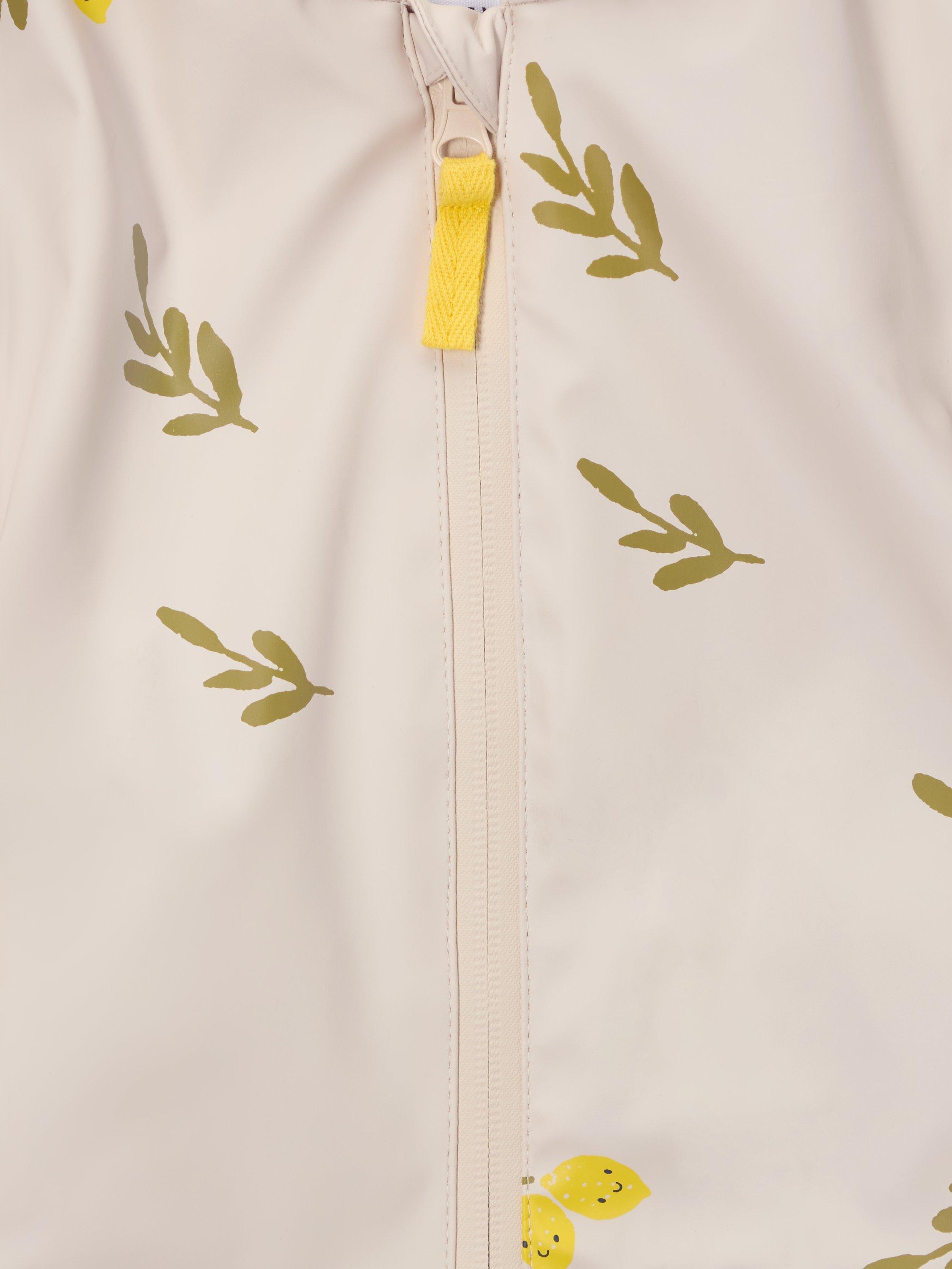 Don't let a little rain stop your family day out. This water-resistant rain mac has a zip fastening for quick dressing and two pockets for little hands. The interior is lined with a striped jersey fabric while the outer has a lemons print. Taped seams and elasticated cuffs will help stop those raindrops from getting in.