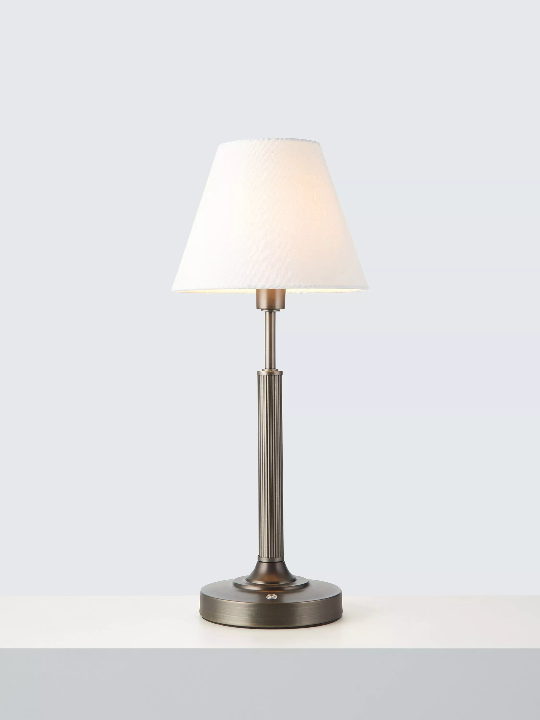 Bigger and brighter, the Baily Large Rechargeable table lamp makes an elegant statement wherever it goes. With its distinctive heritage-inspired ribbed stem and fabric shade, this cordless LED lamp blends vintage charm with modern convenience.